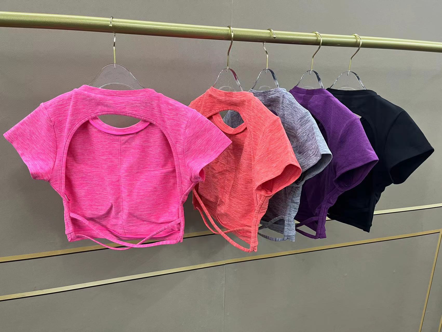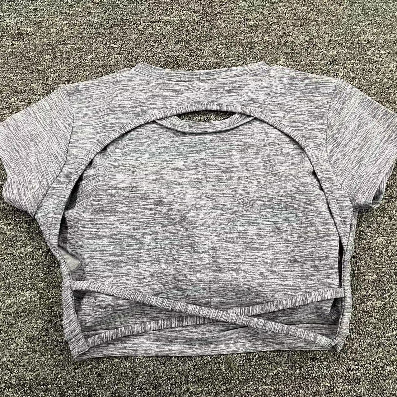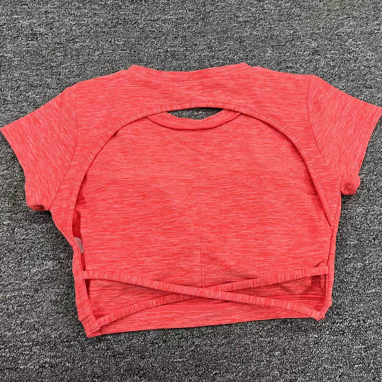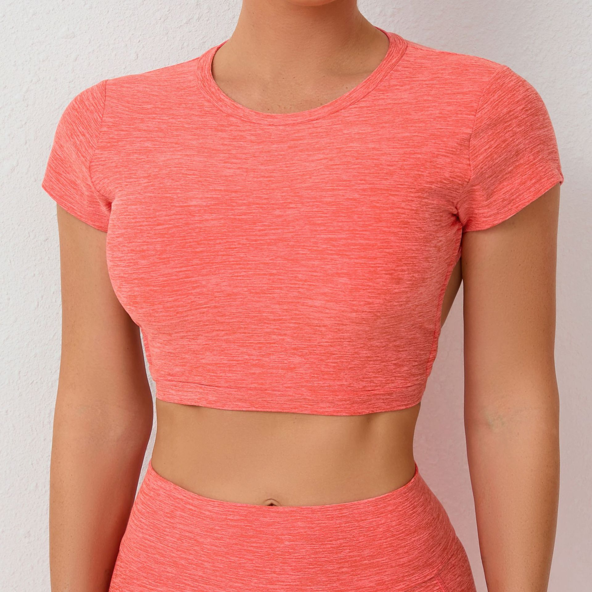 Camiseta deportiva de manga corta con espalda descubierta, con almohadillas de pecho desmontables y espalda cruzada, ideal para usar al aire libre, fitness, yoga y manga corta para mujer.