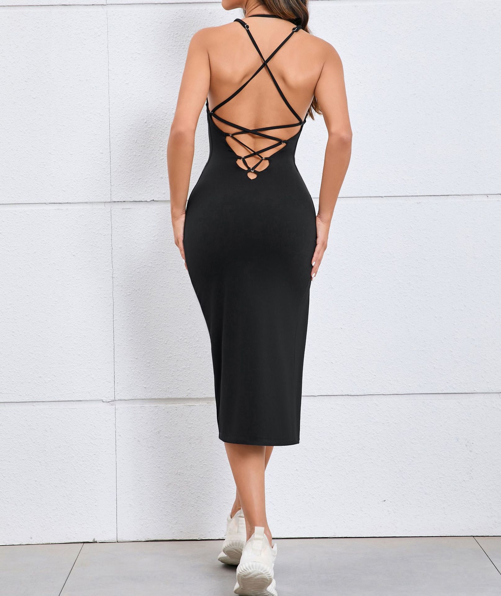 Vestido tubo sexy con espalda cruzada y almohadillas para el pecho, prenda exterior pura y sexy, vestido corto ajustado y adelgazante.