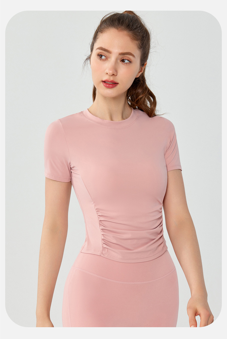 Camiseta clásica de yoga con cuello redondo para verano, para correr, entrenar, deportes, manga corta, ajustada, adelgazante, para pilates y entrenamiento.