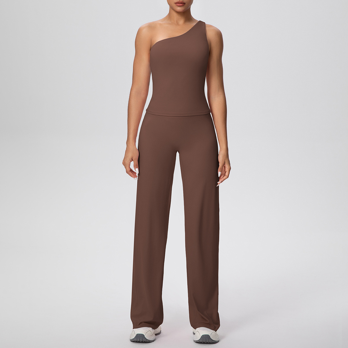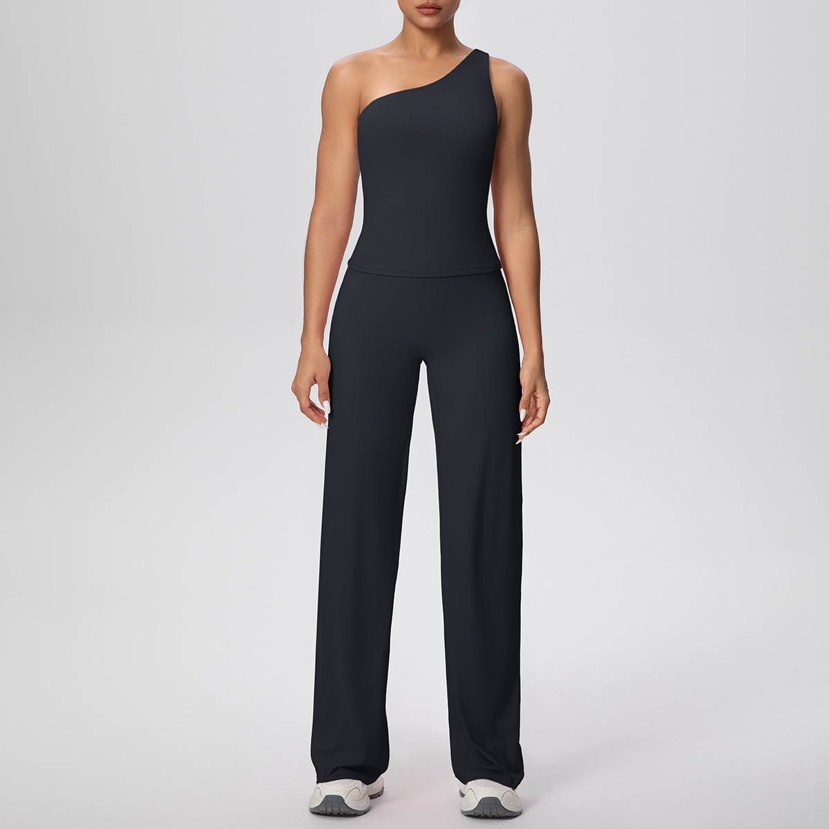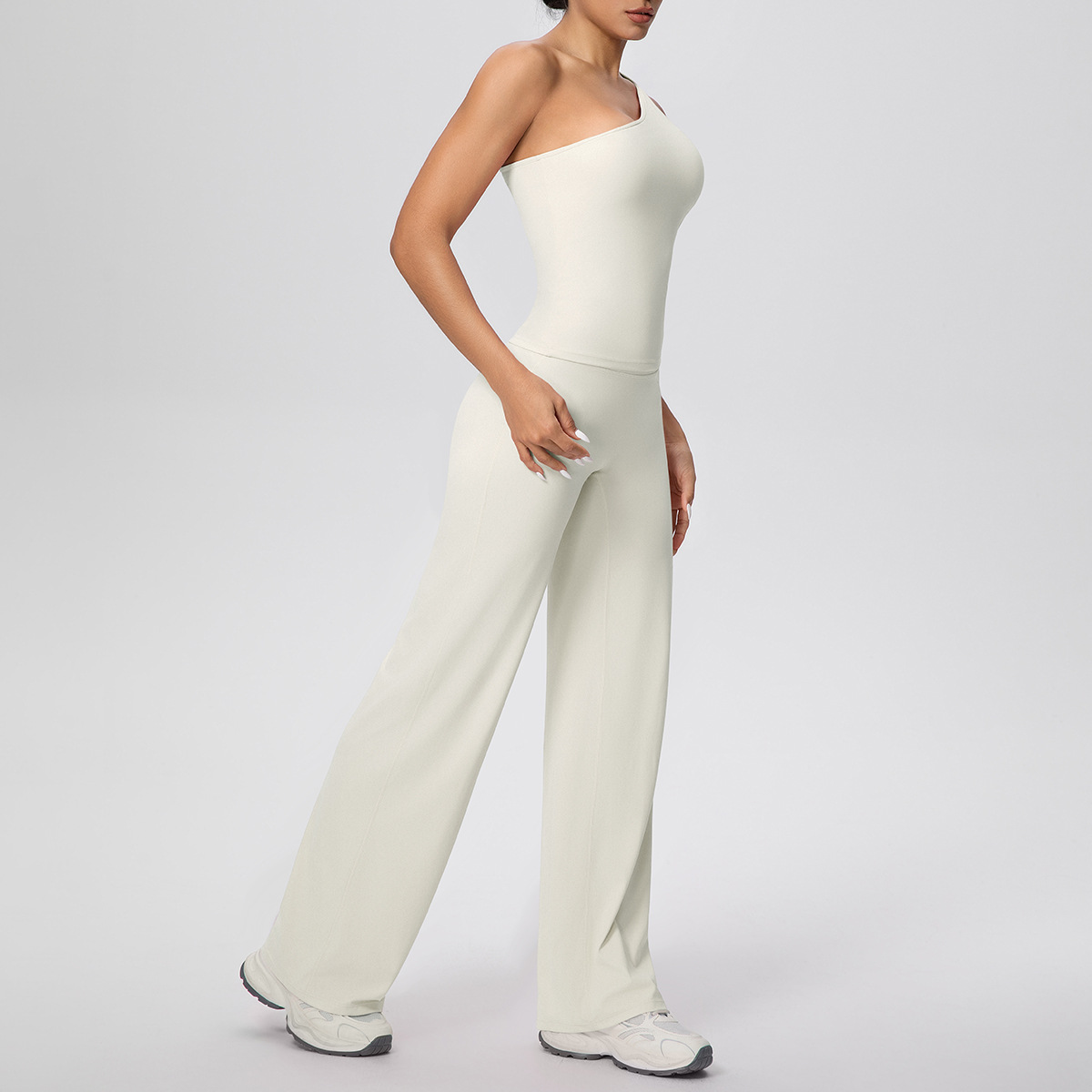 Cloud Sense - Chaleco de yoga con hombros oblicuos y cintura alta, pantalones de yoga para correr, pantalones holgados y rectos, conjuntos de dos piezas para fitness y yoga