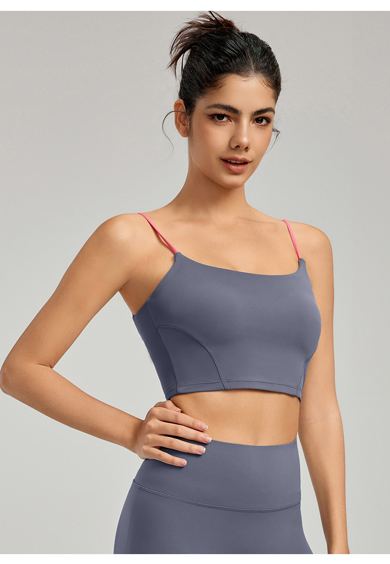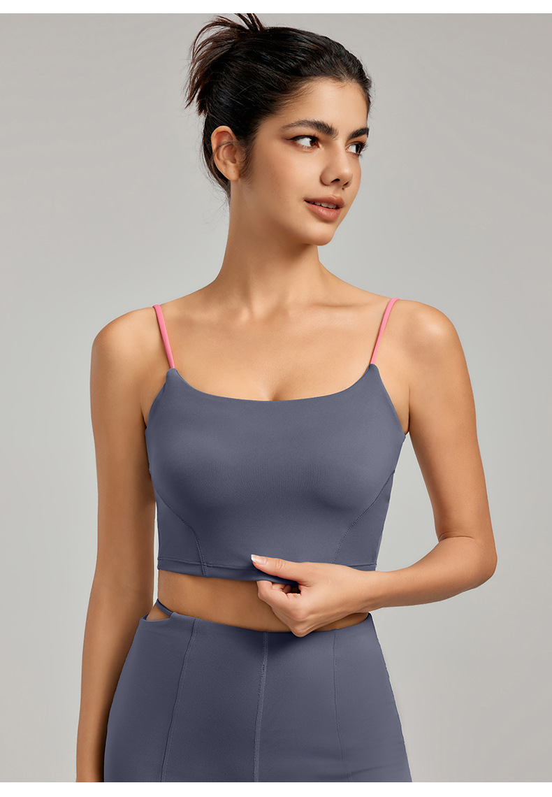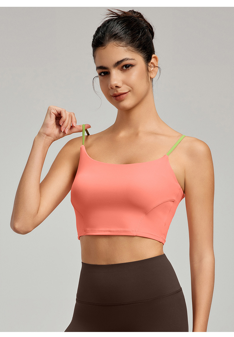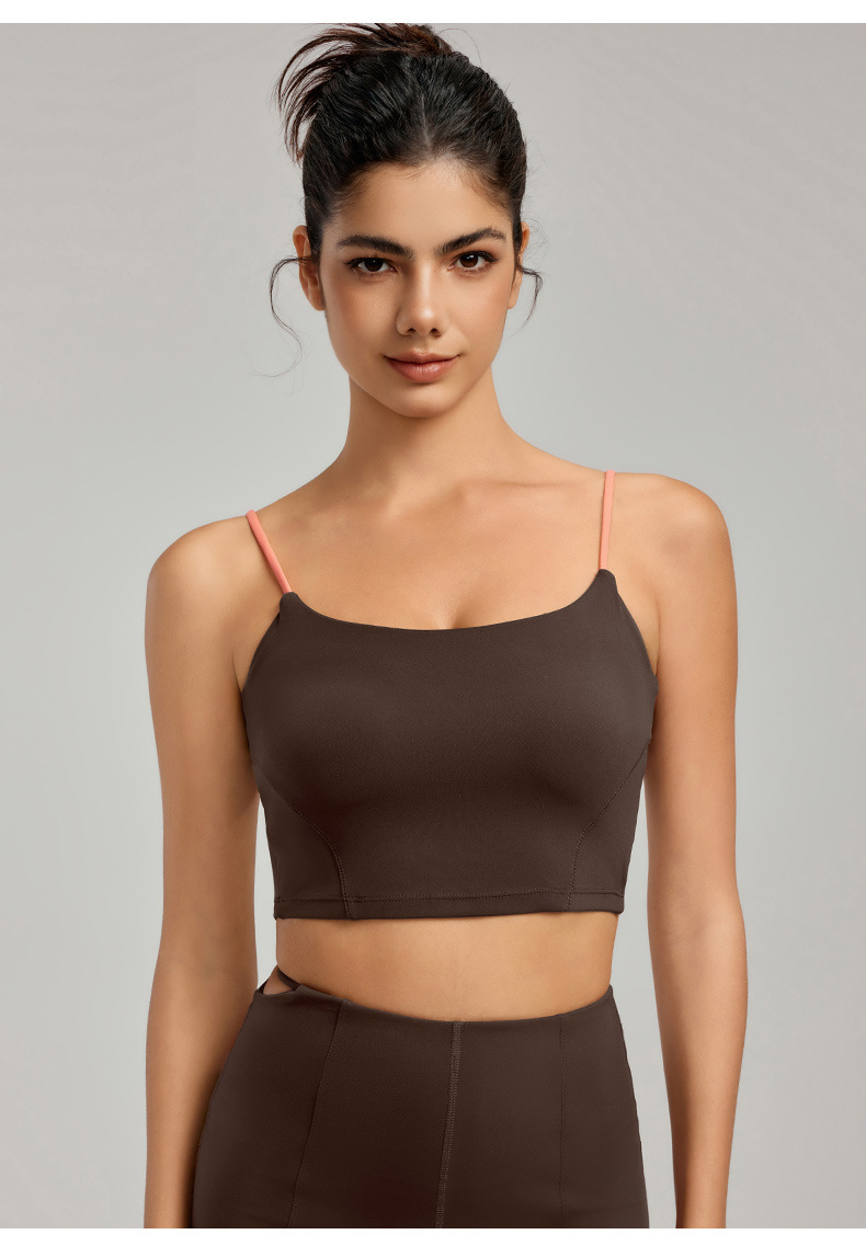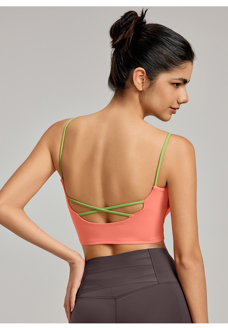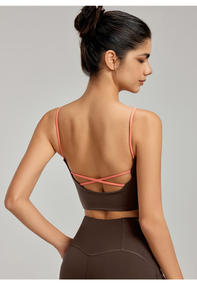 Chaleco de yoga con espalda descubierta y almohadilla para el pecho, tirantes finos y escote pronunciado para entrenamiento y fitness