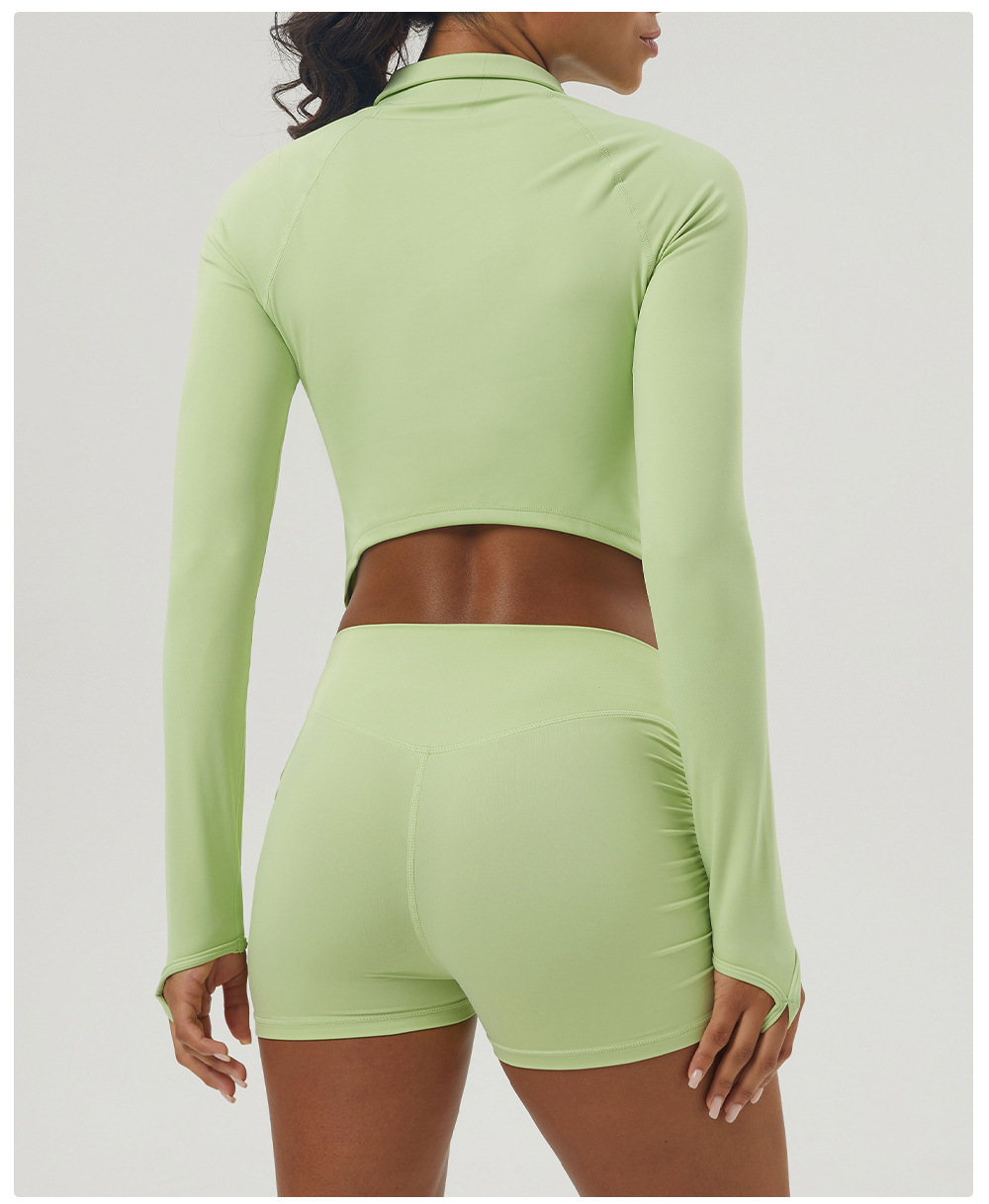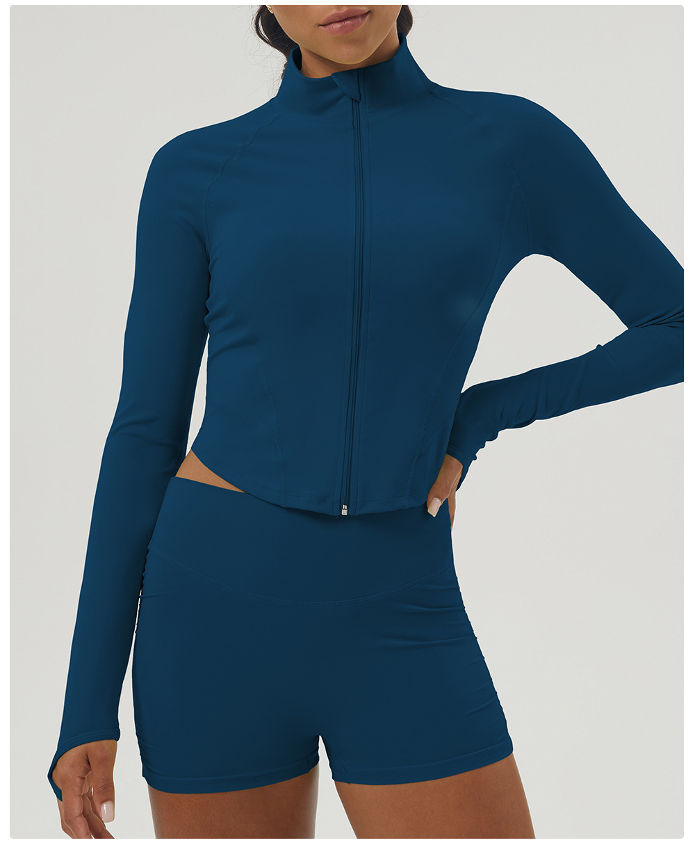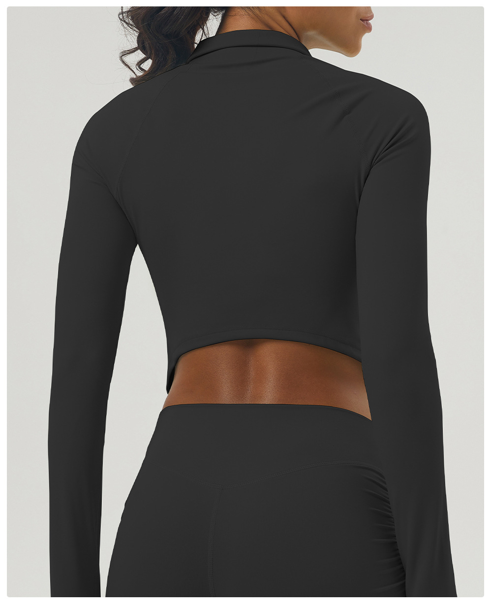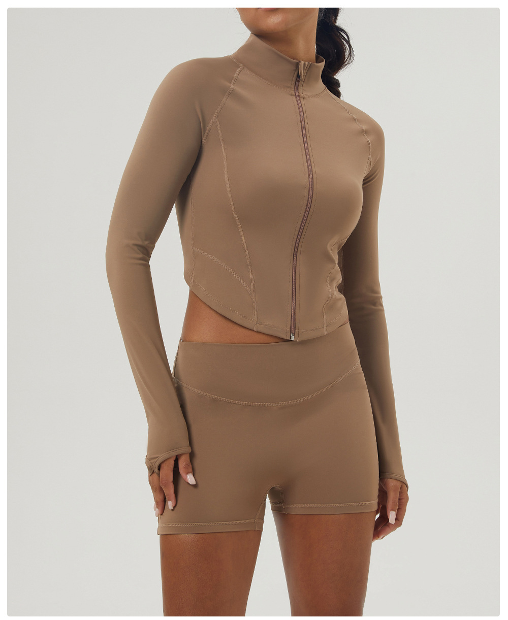 Haut de yoga automne-hiver à manches longues pour femme, col montant, coupe ajustée, veste de sport zippée pour la course à pied.