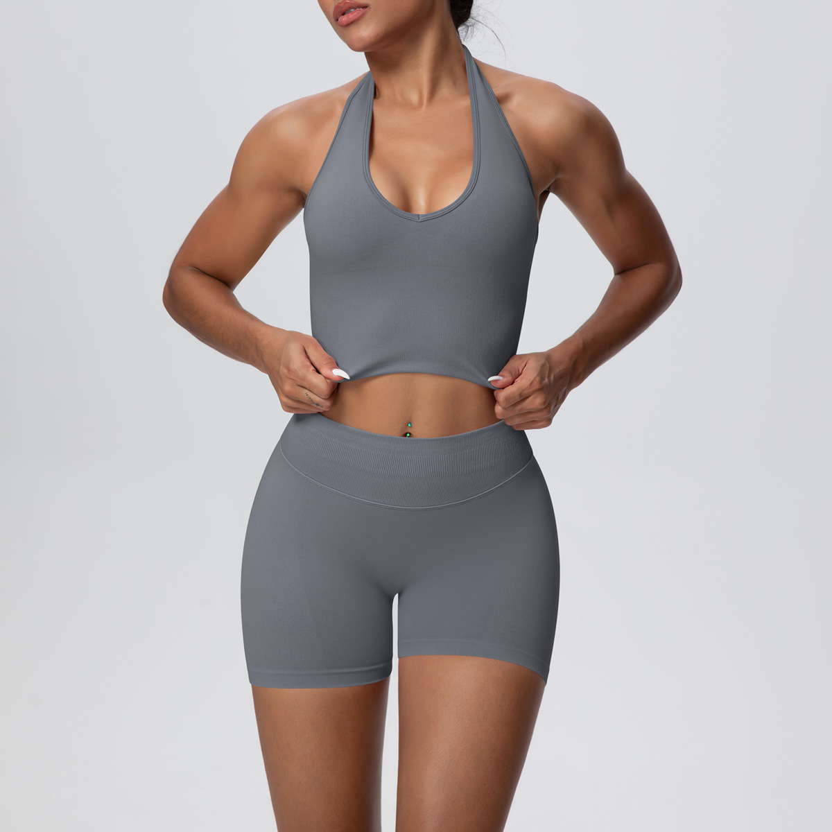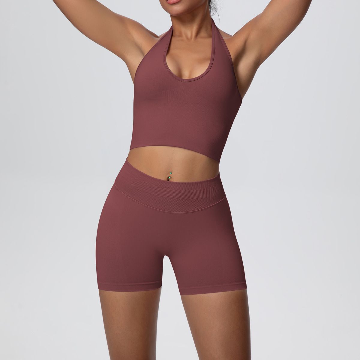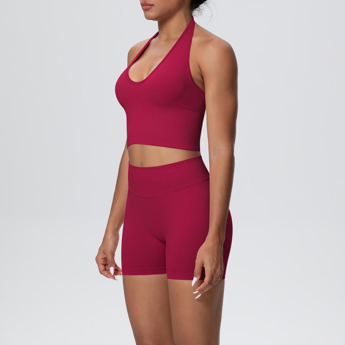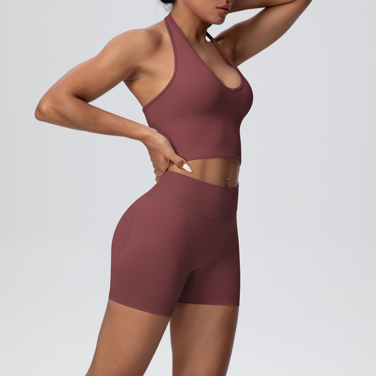 Soutien-gorge de yoga respirant dos nu, débardeur, short taille haute gainant sans coutures, tenue de sport et de yoga