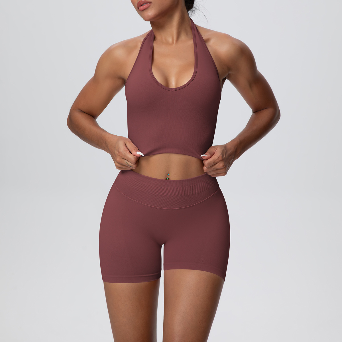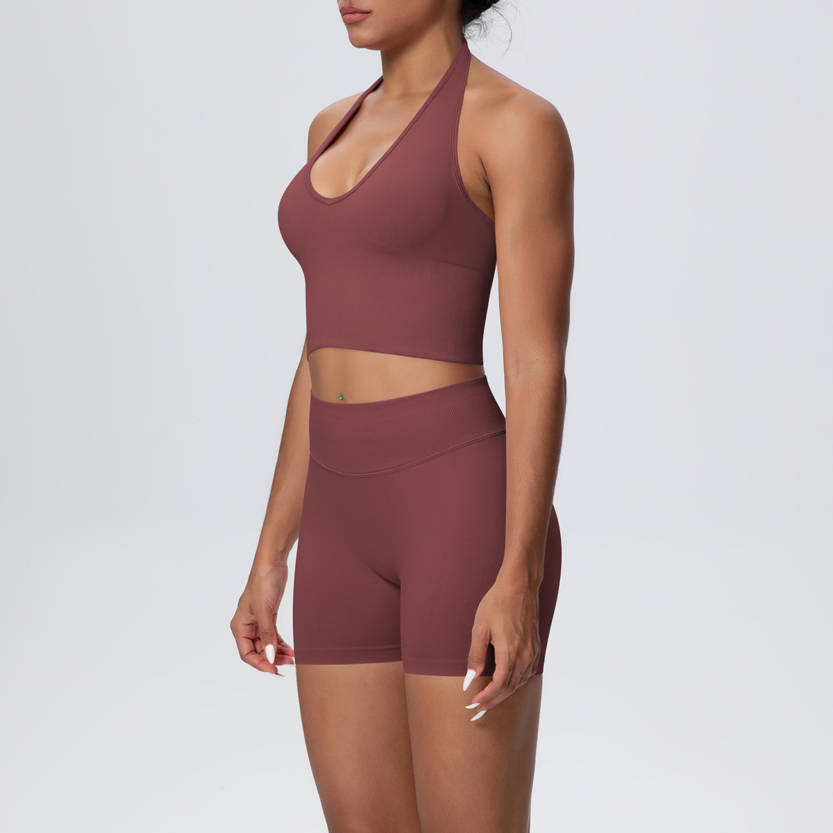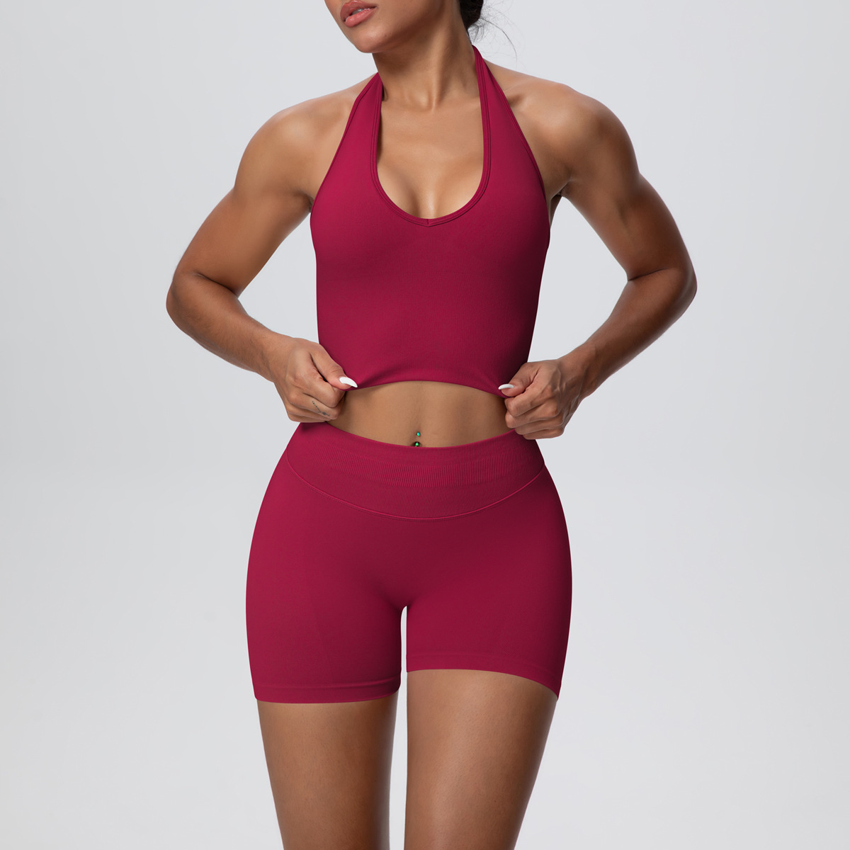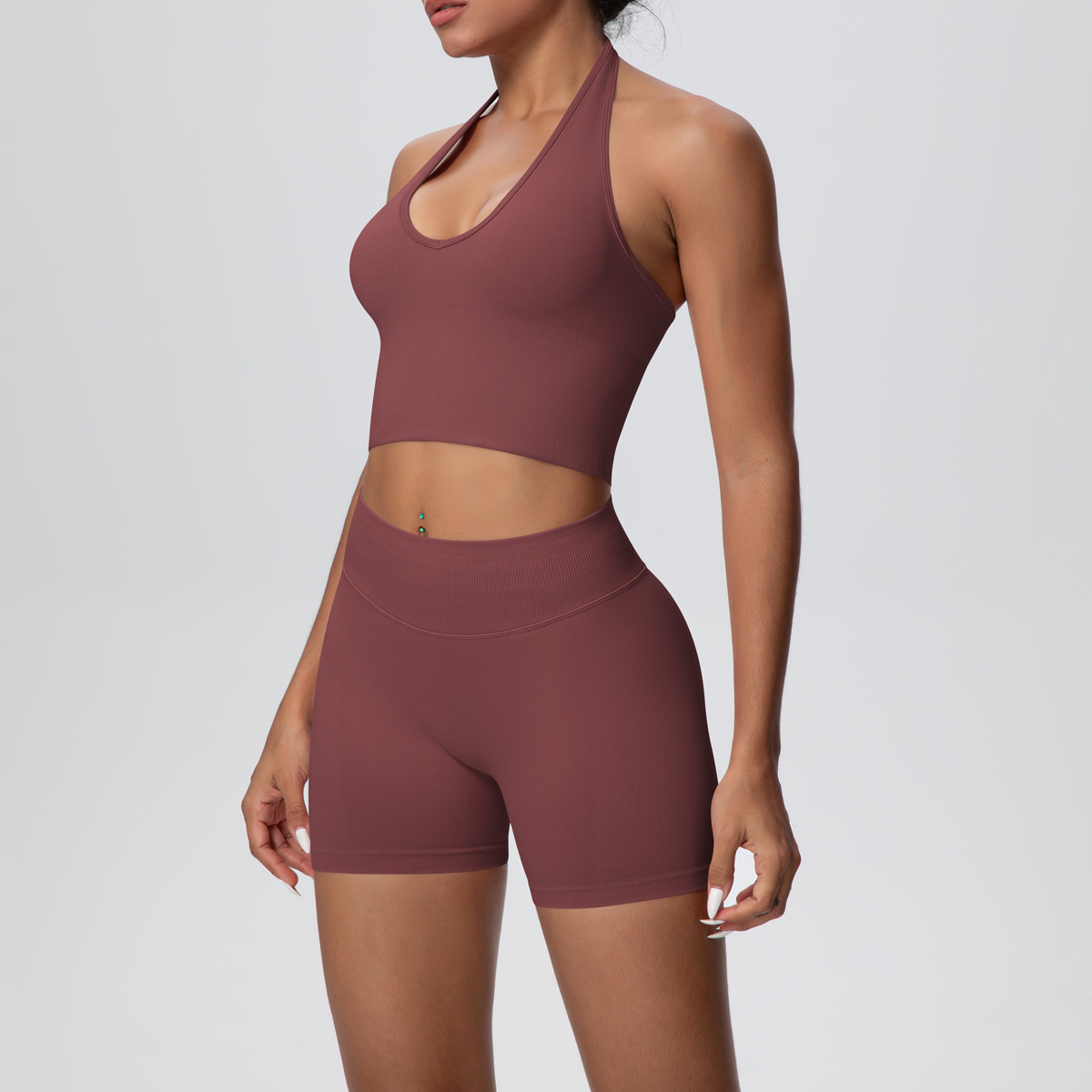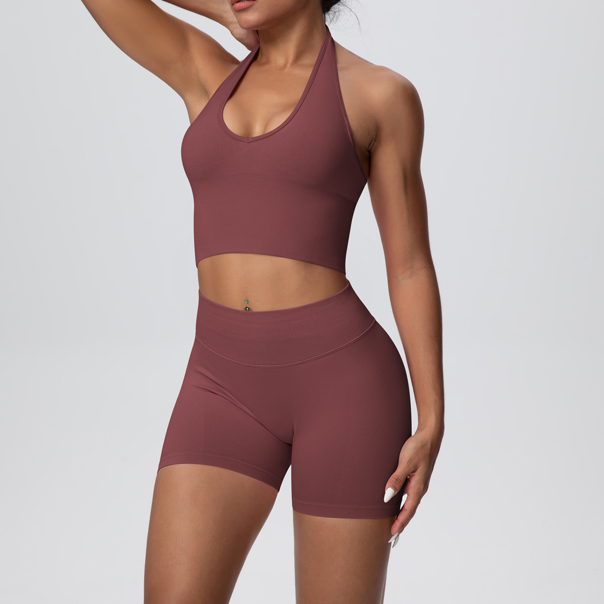 Soutien-gorge de yoga respirant dos nu, débardeur, short taille haute gainant sans coutures, tenue de sport et de yoga