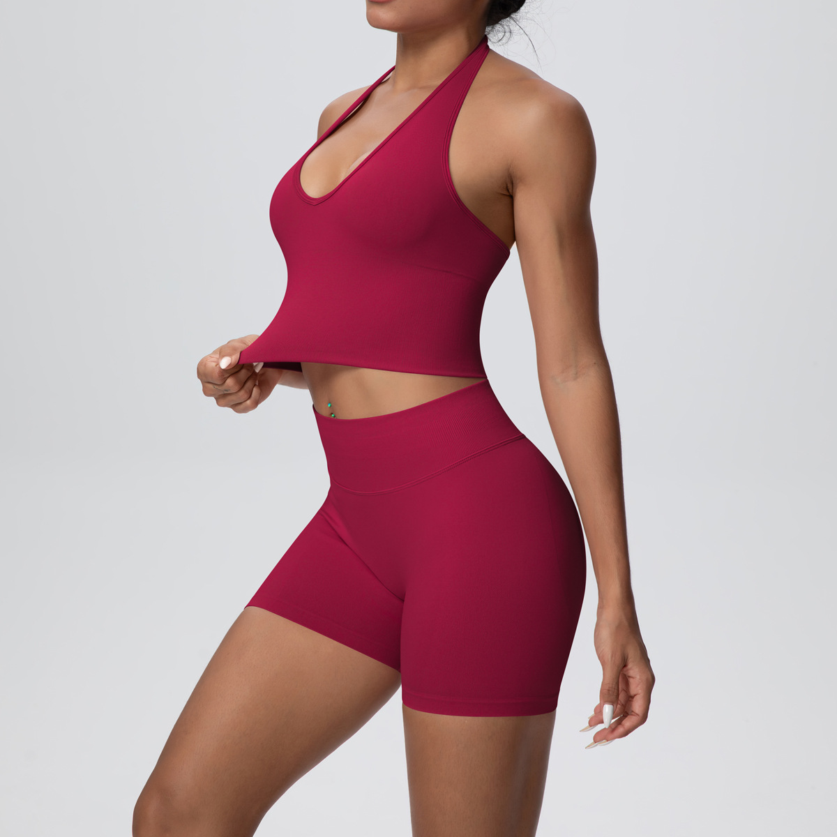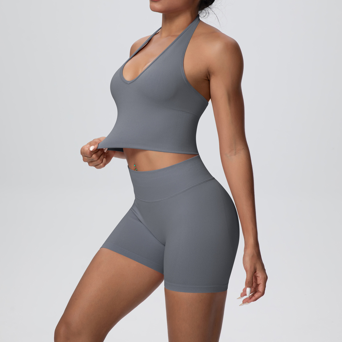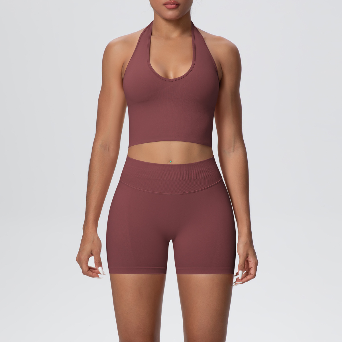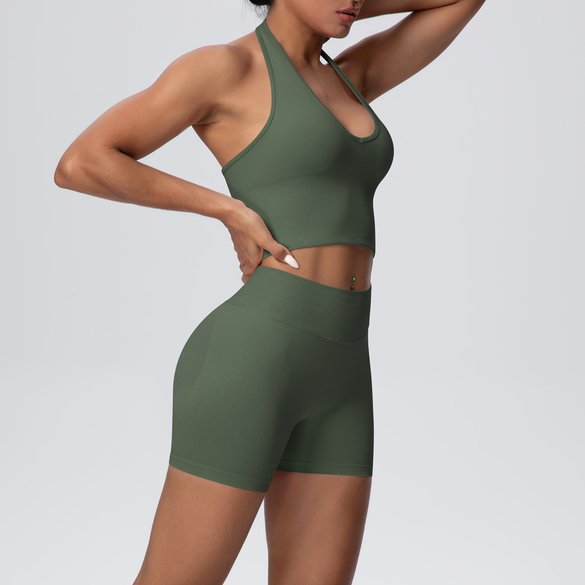 Soutien-gorge de yoga respirant dos nu, débardeur, short taille haute gainant sans coutures, tenue de sport et de yoga