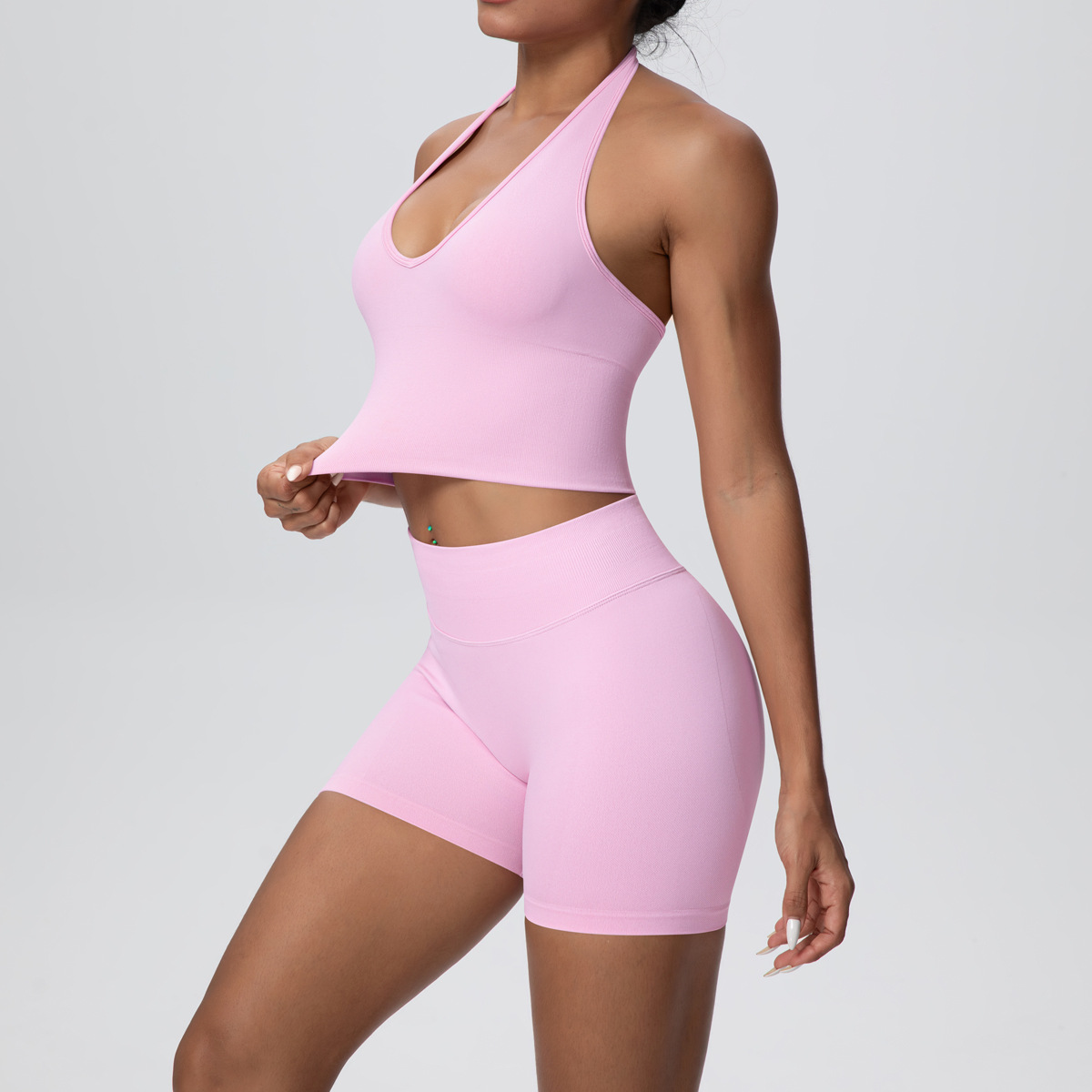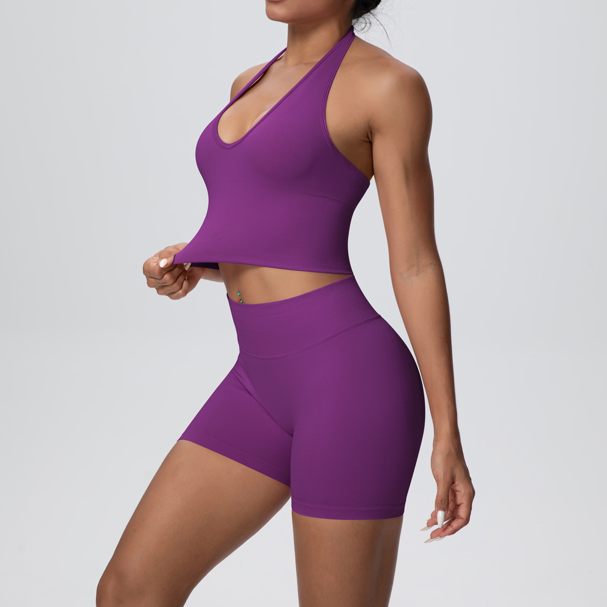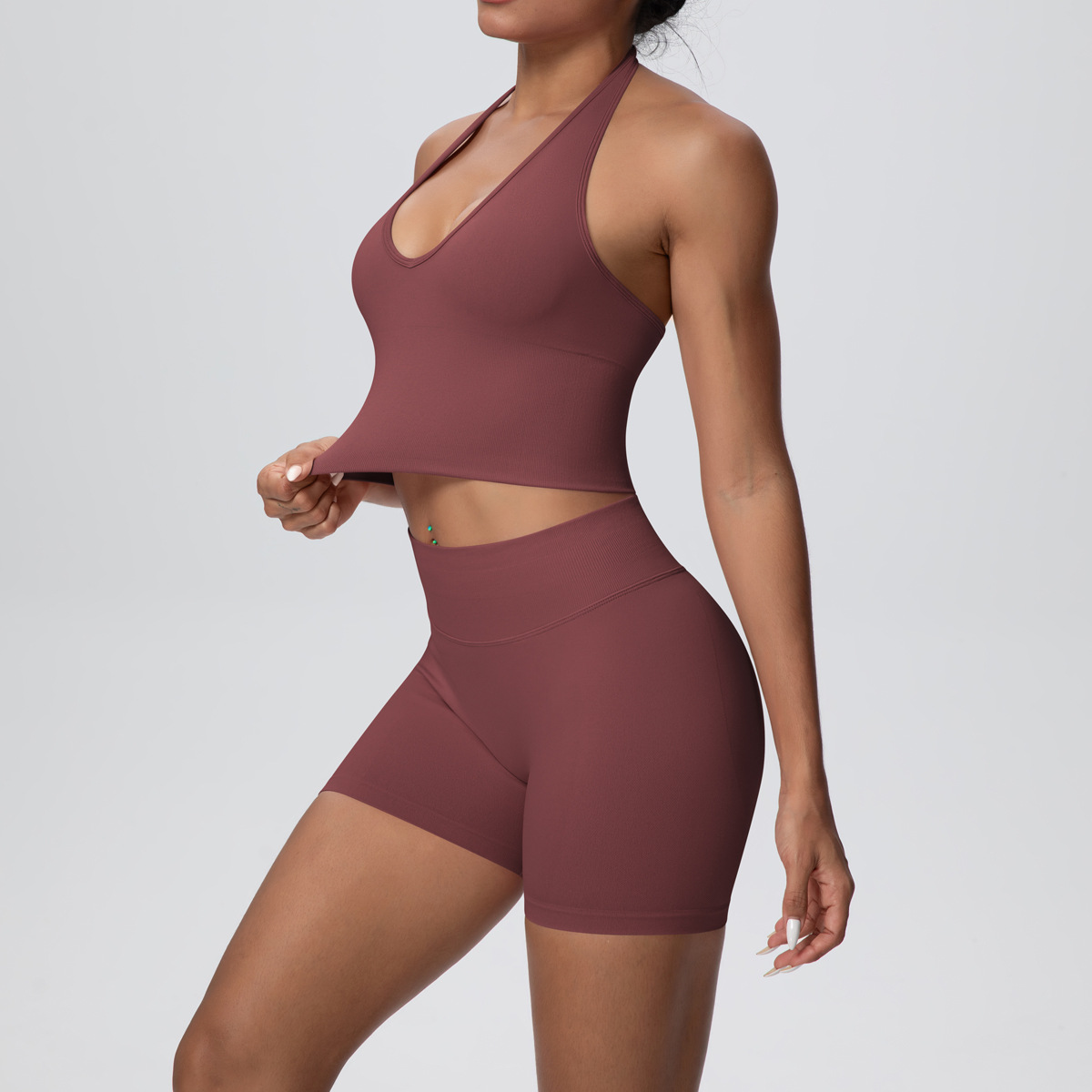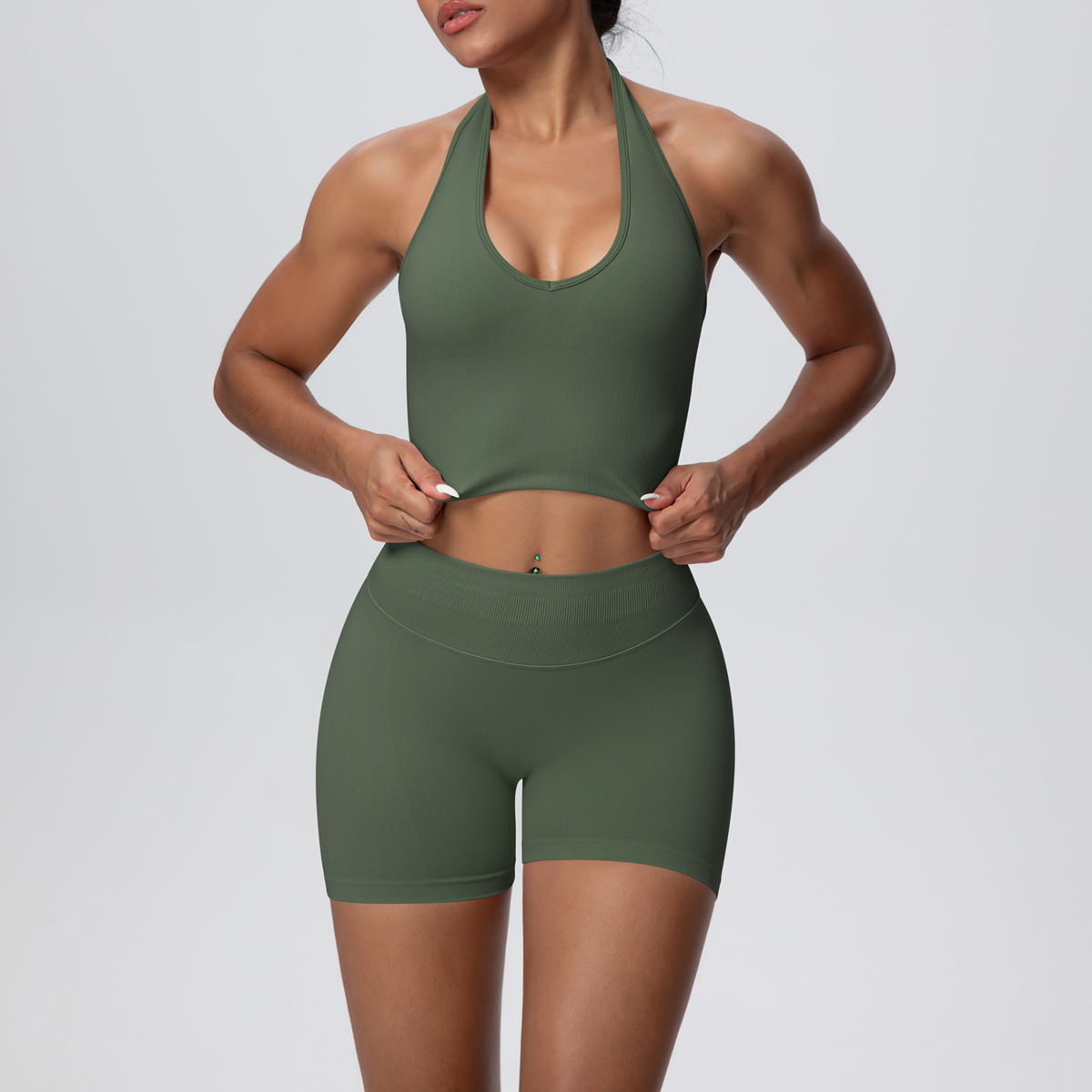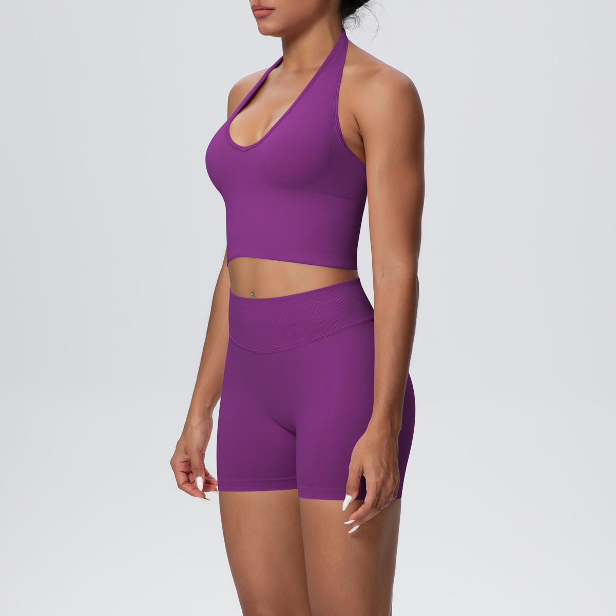 Soutien-gorge de yoga respirant dos nu, débardeur, short taille haute gainant sans coutures, tenue de sport et de yoga