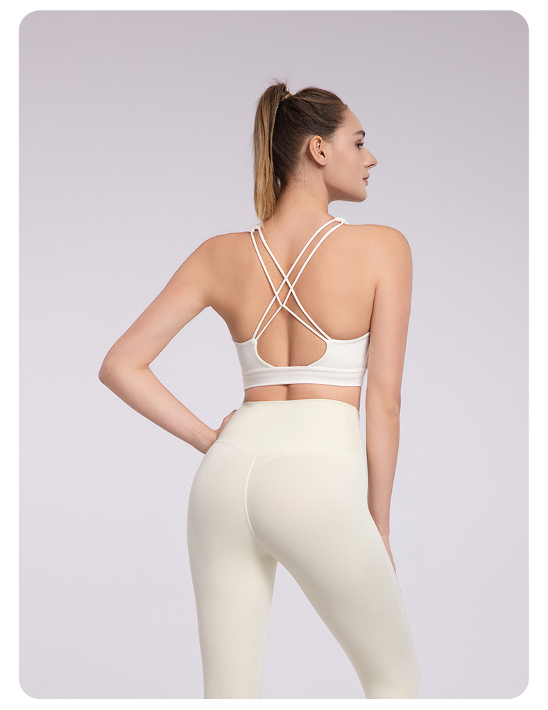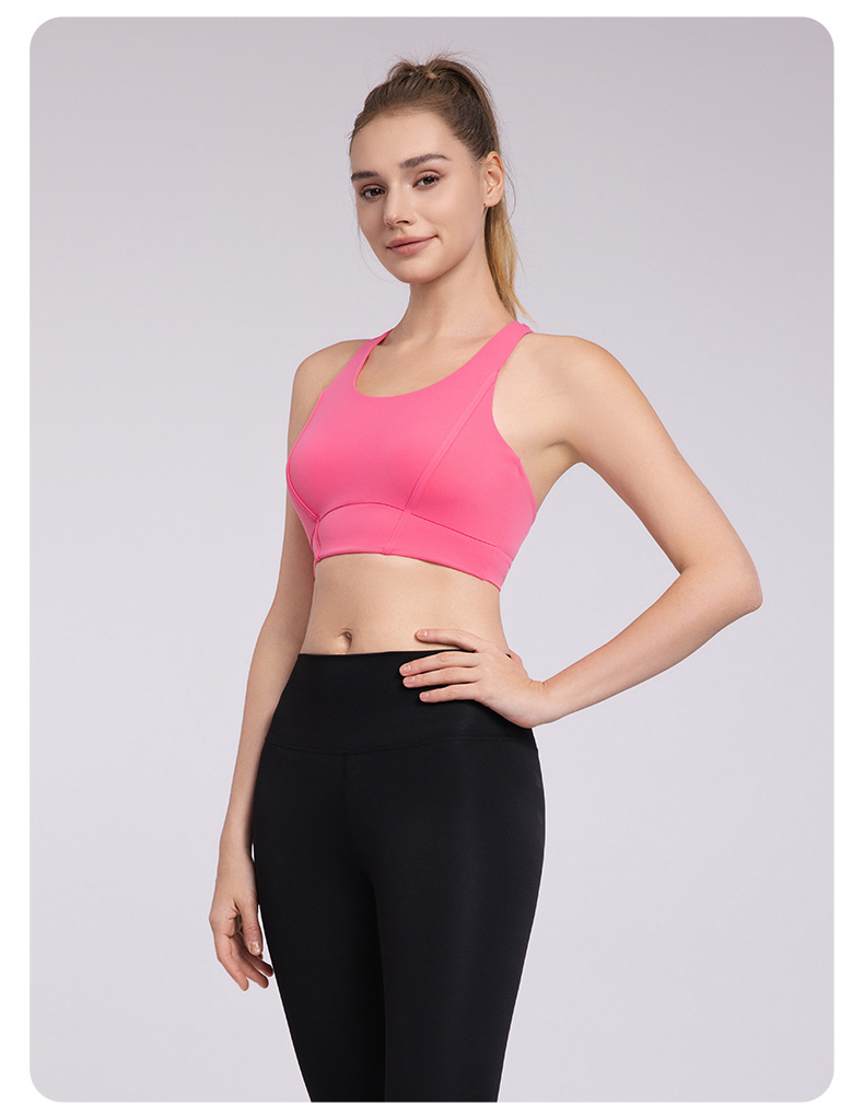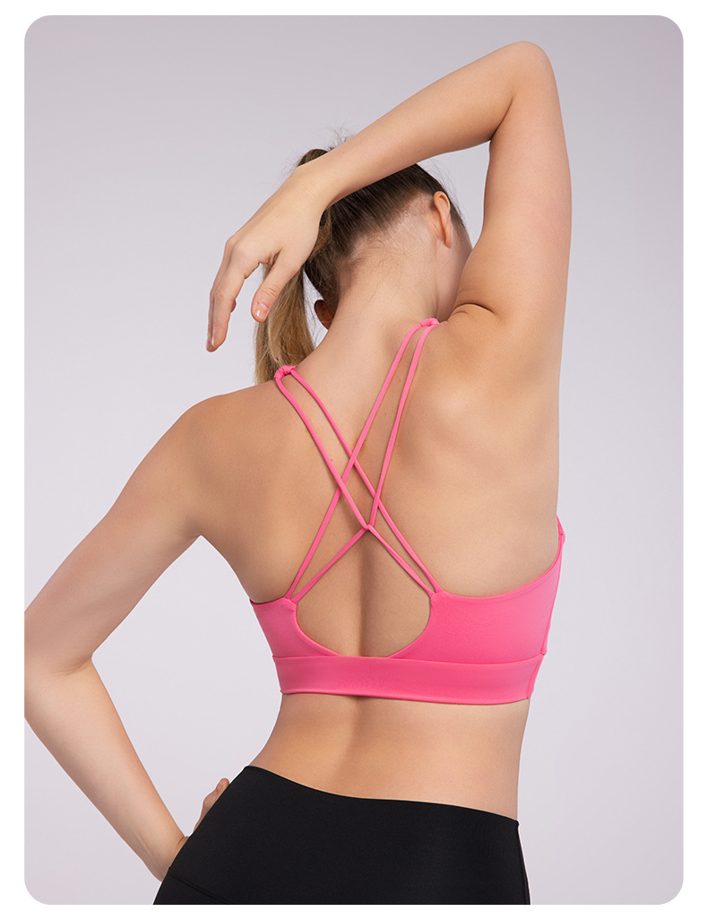 Débardeur de yoga dos croisé pour femme, soutien-gorge de sport à maintien optimal avec coussinets de poitrine, brassière polyvalente et résistante.