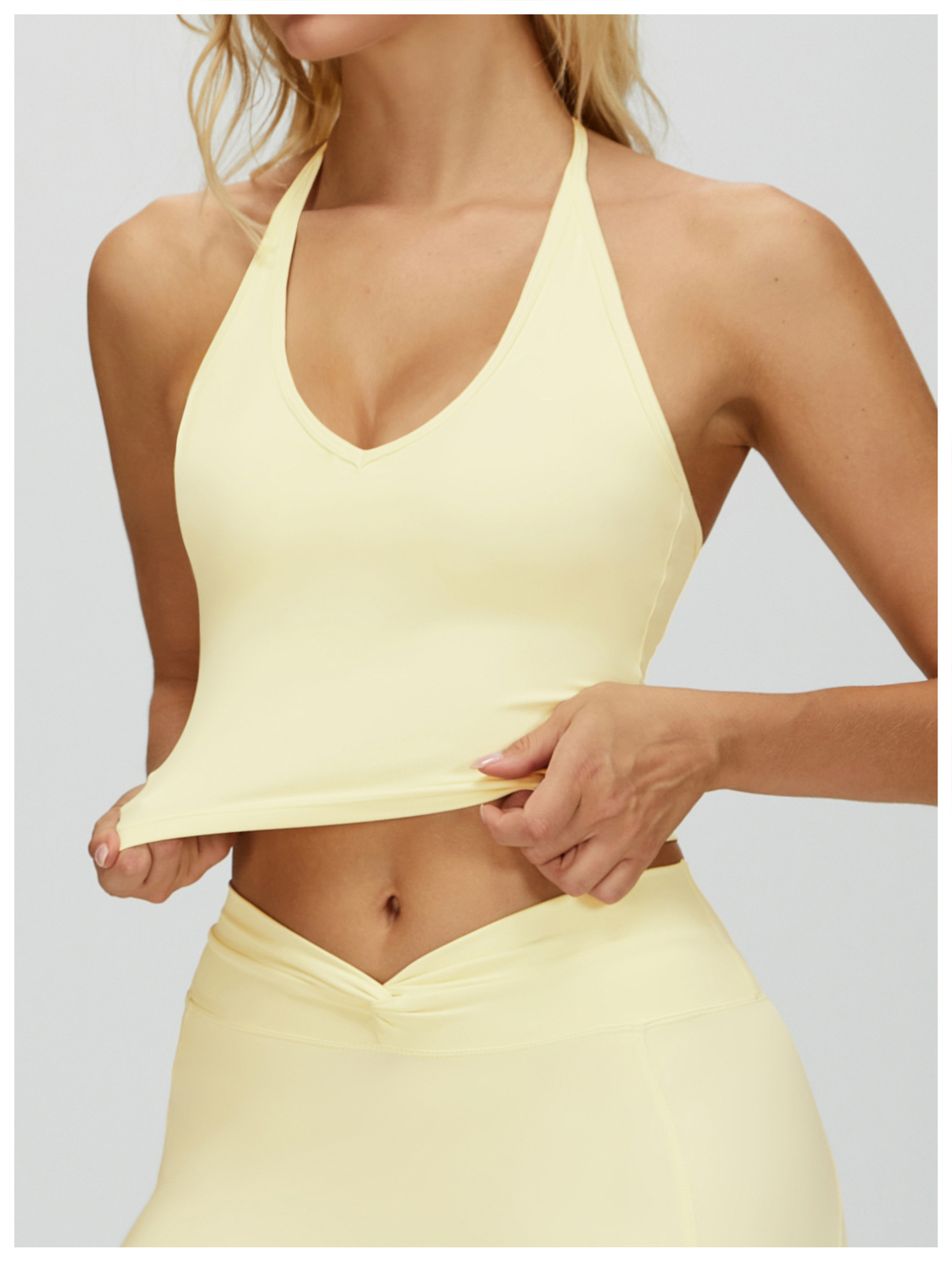 Débardeur de yoga dos nu effet chair, coupe dos nu, sous-vêtement de sport moulant, vêtement de yoga décontracté pour femme, idéal pour le fitness et la course à pied.
