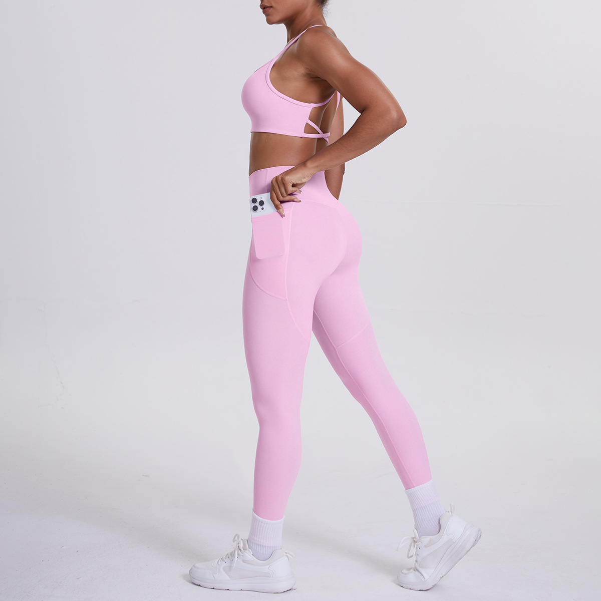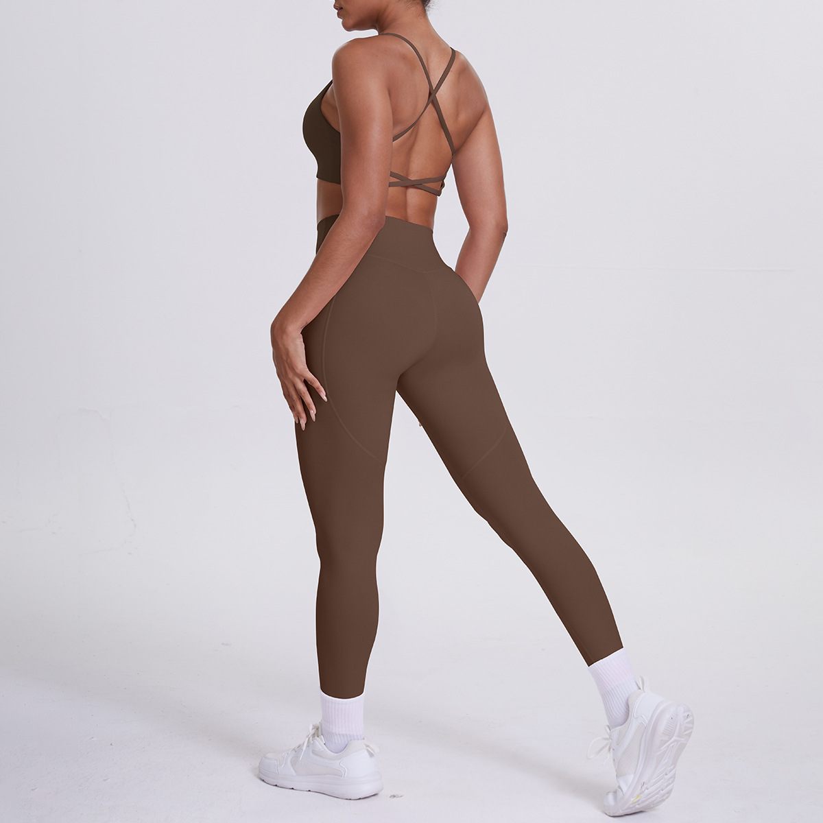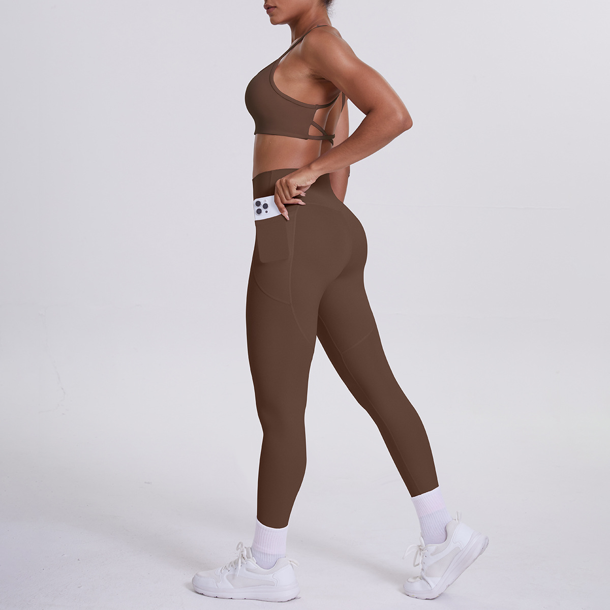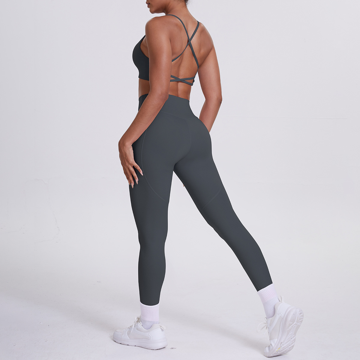 Pantalon de sport effet seconde peau, poches, dos nu galbant, idéal pour la course, le fitness et le yoga.