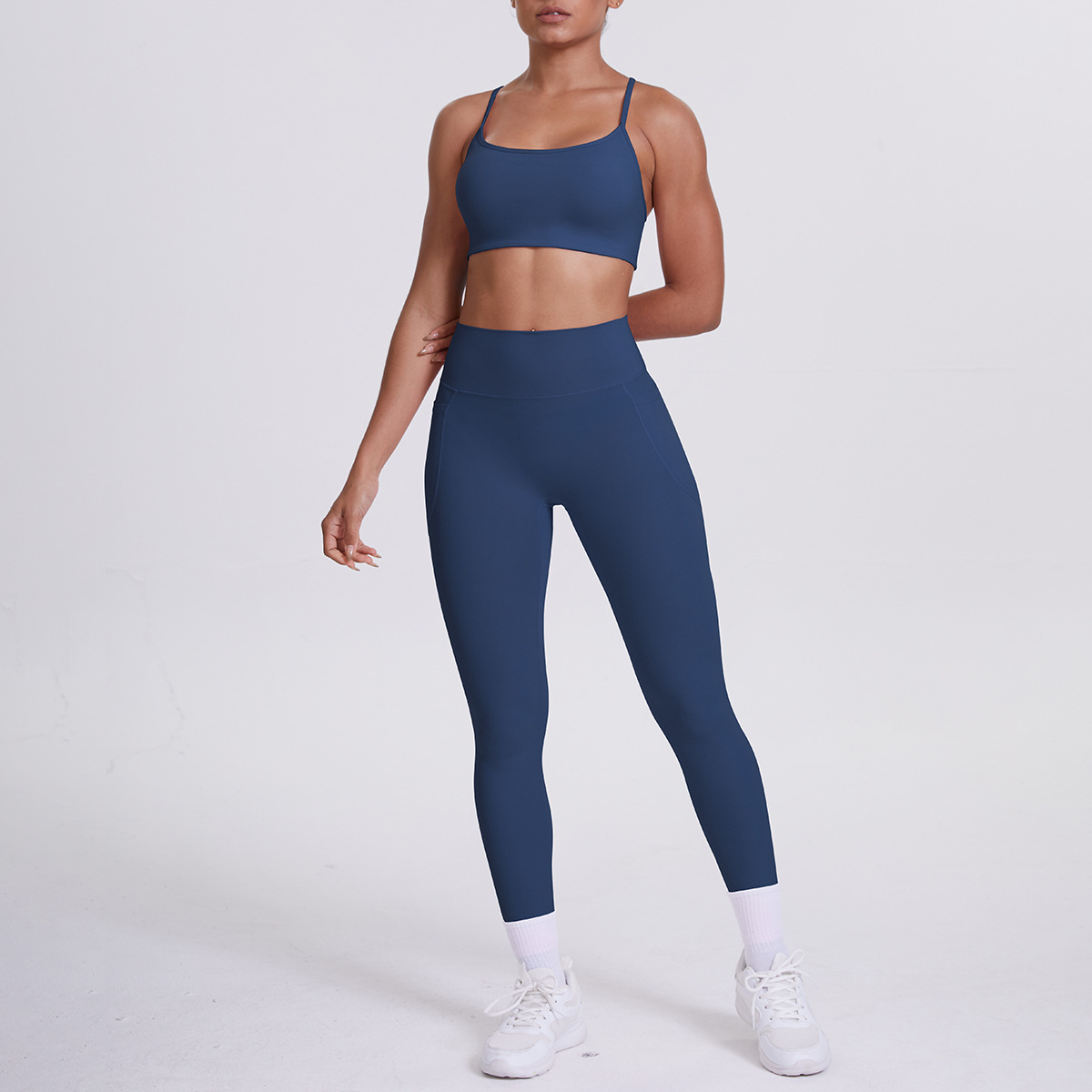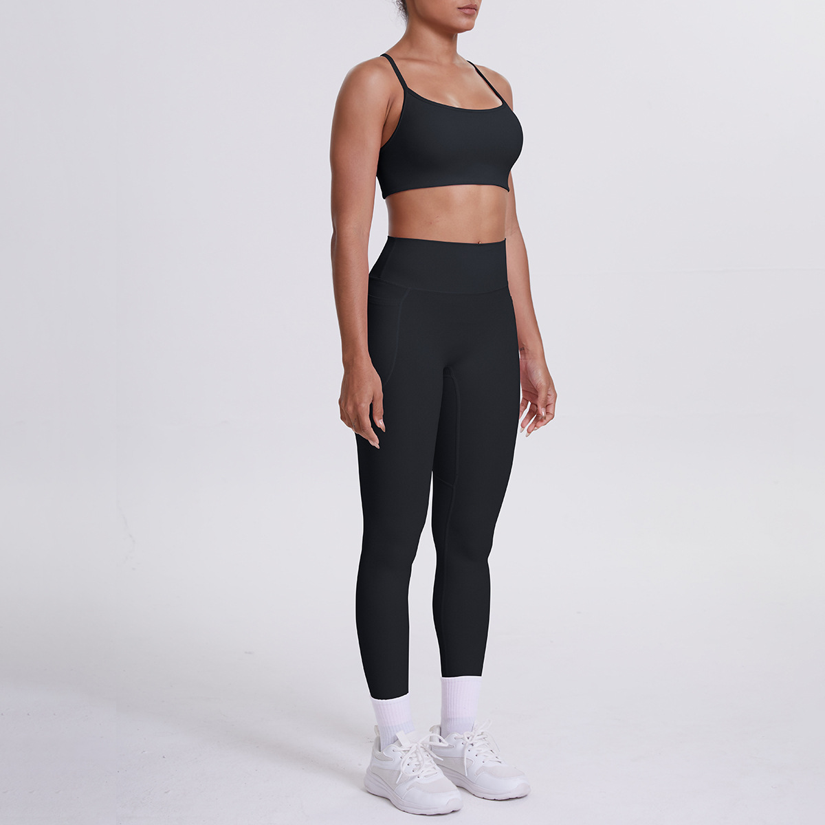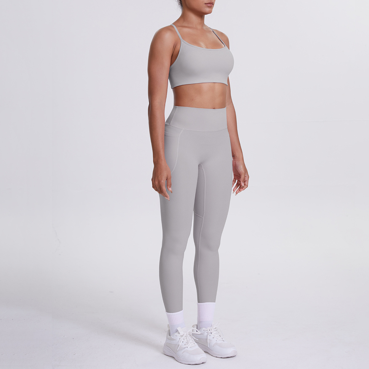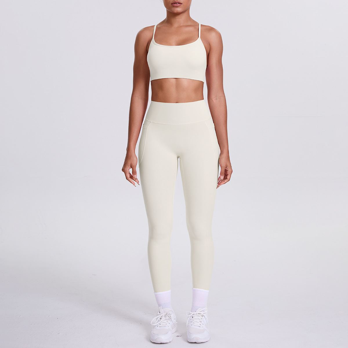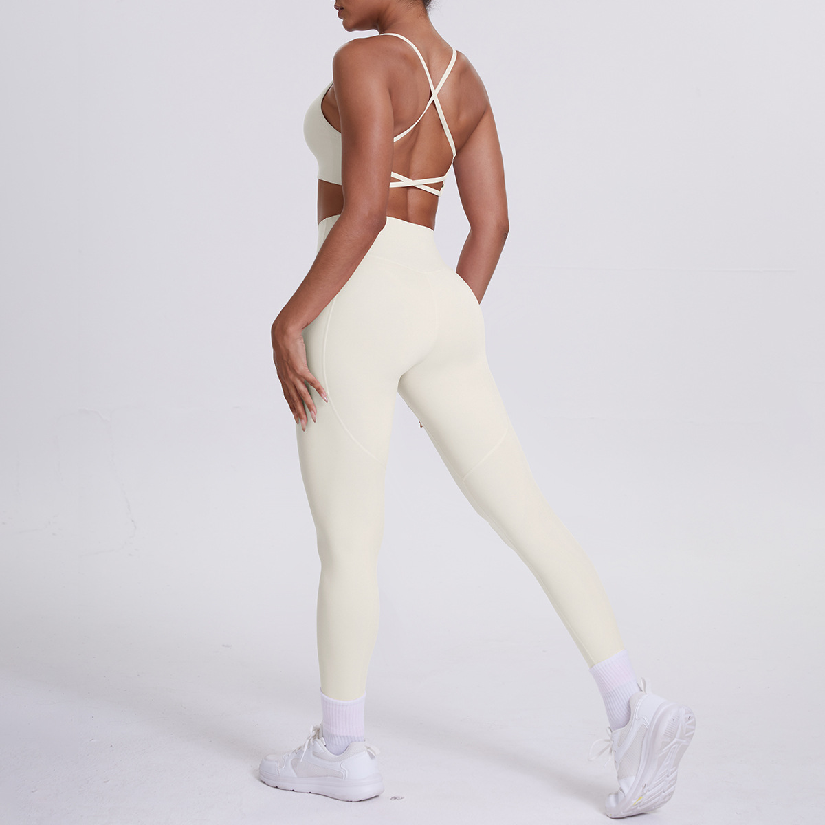 Pantalon de sport effet seconde peau, poches, dos nu galbant, idéal pour la course, le fitness et le yoga.