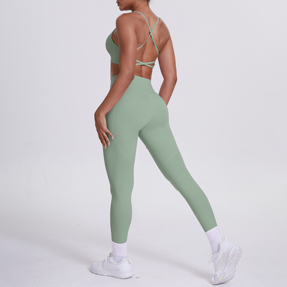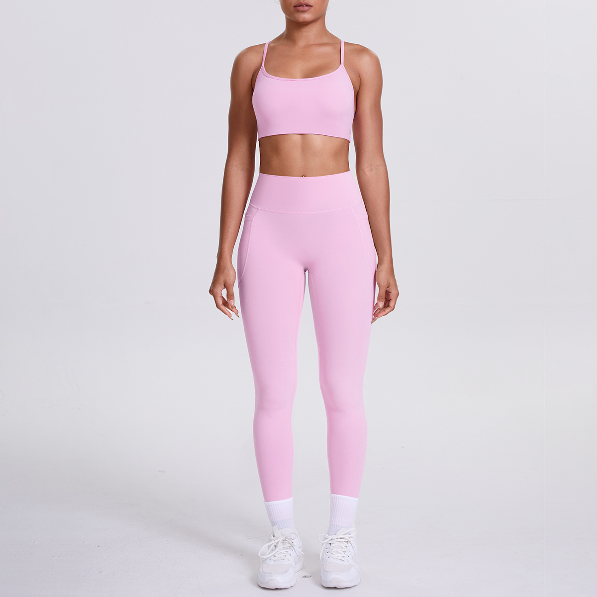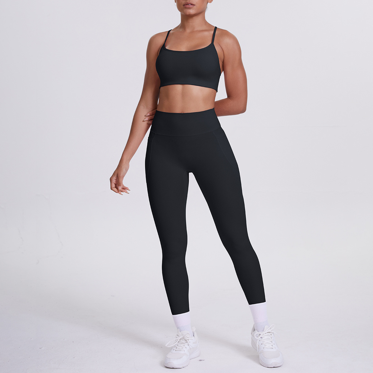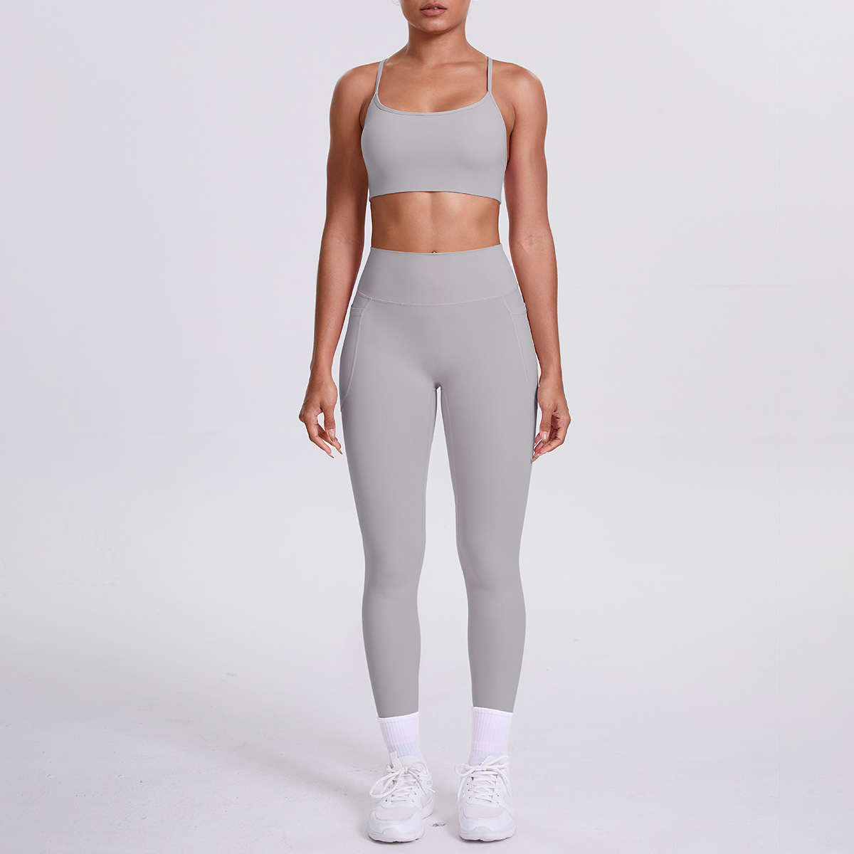Pantalon de sport effet seconde peau, poches, dos nu galbant, idéal pour la course, le fitness et le yoga.