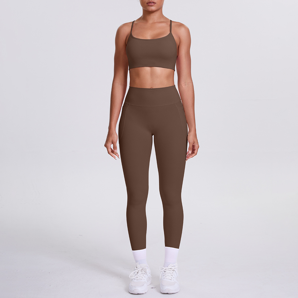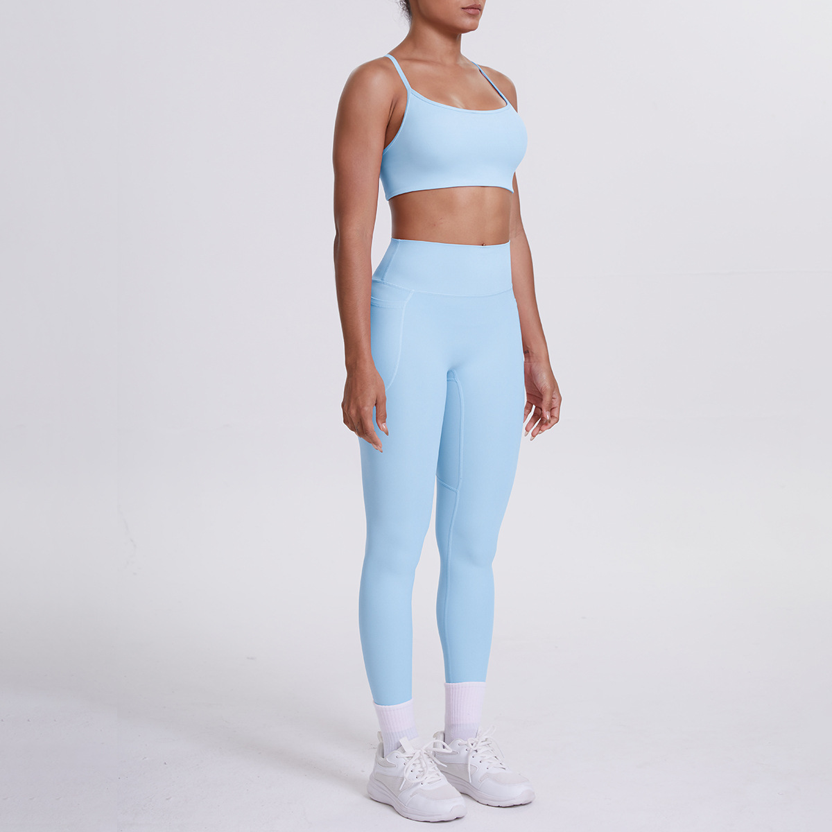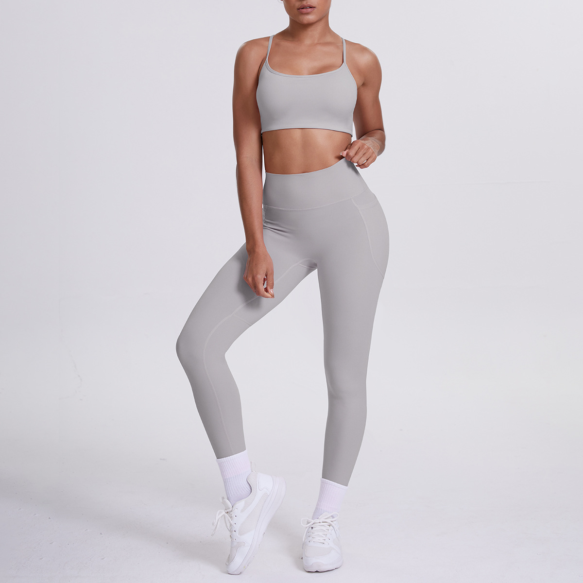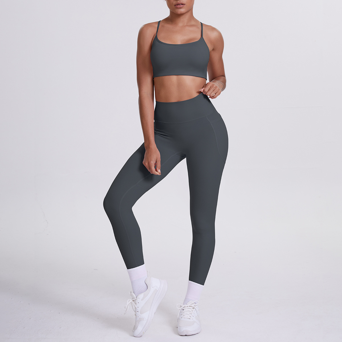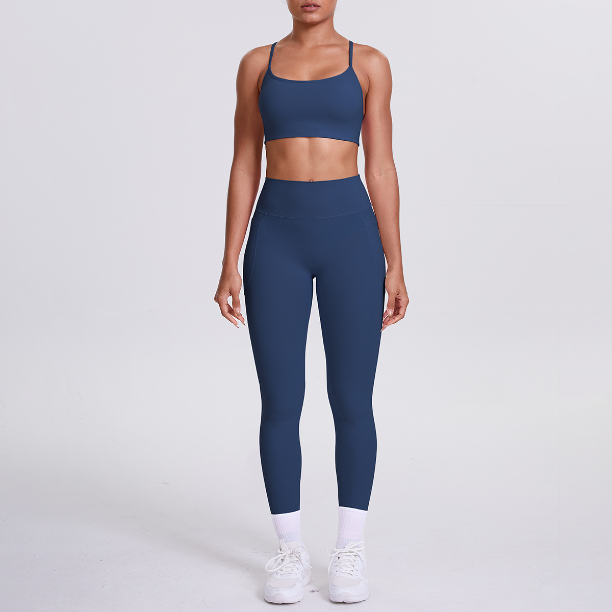 Pantalon de sport effet seconde peau, poches, dos nu galbant, idéal pour la course, le fitness et le yoga.
