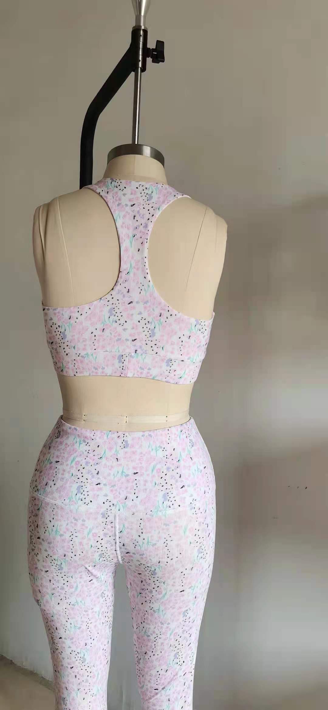Combinaison de yoga et de fitness d'été à imprimé floral, élastique et respirante, pour femme