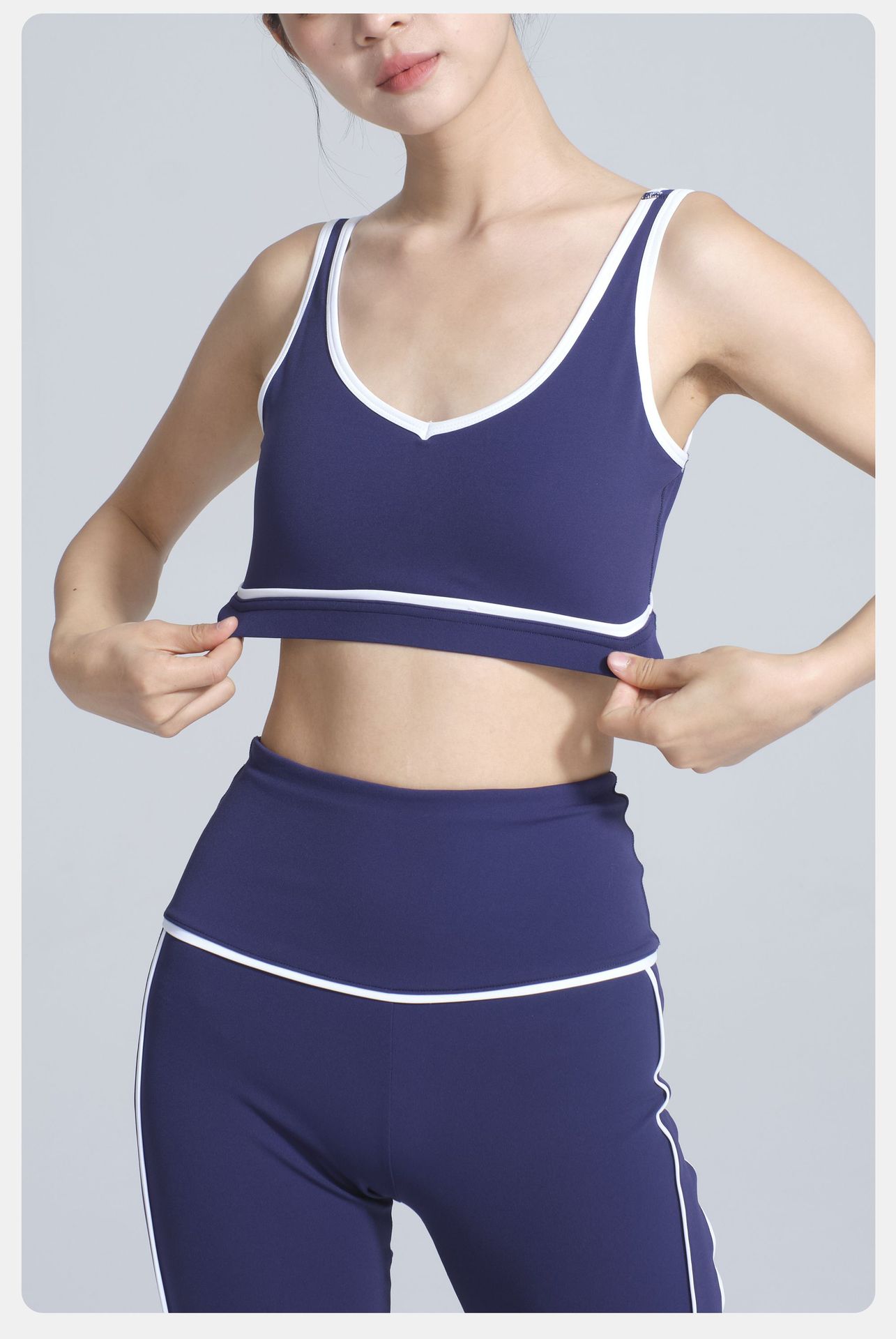 Vêtements de yoga White Edge, sous-vêtements de sport, bretelles spaghetti, collants antichoc, pantalon de yoga, tenue de sport pour femmes