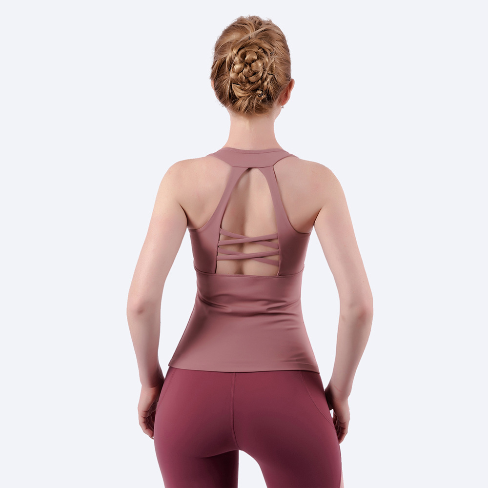 Vêtements de yoga pour femmes, effet nude, dos nu, sans manches, vêtements de sport, gilet de course push-up antichoc.