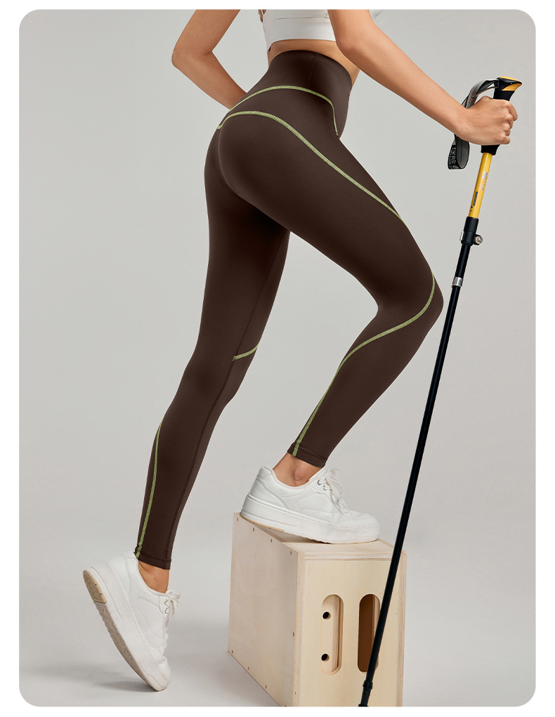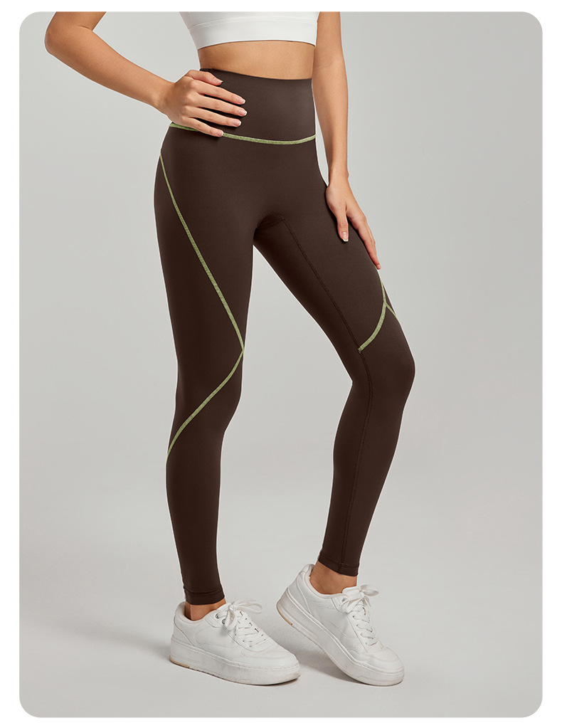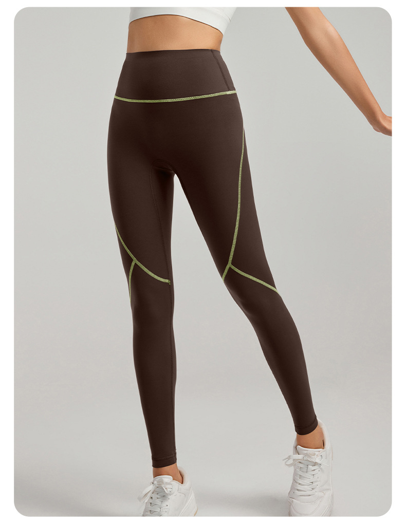 Antibacterial Inner Sports Trousers Contrasting Color Thread Nude Feel Fitness Tights Outer Wear High Waist Hip Lift Yoga Trousers
