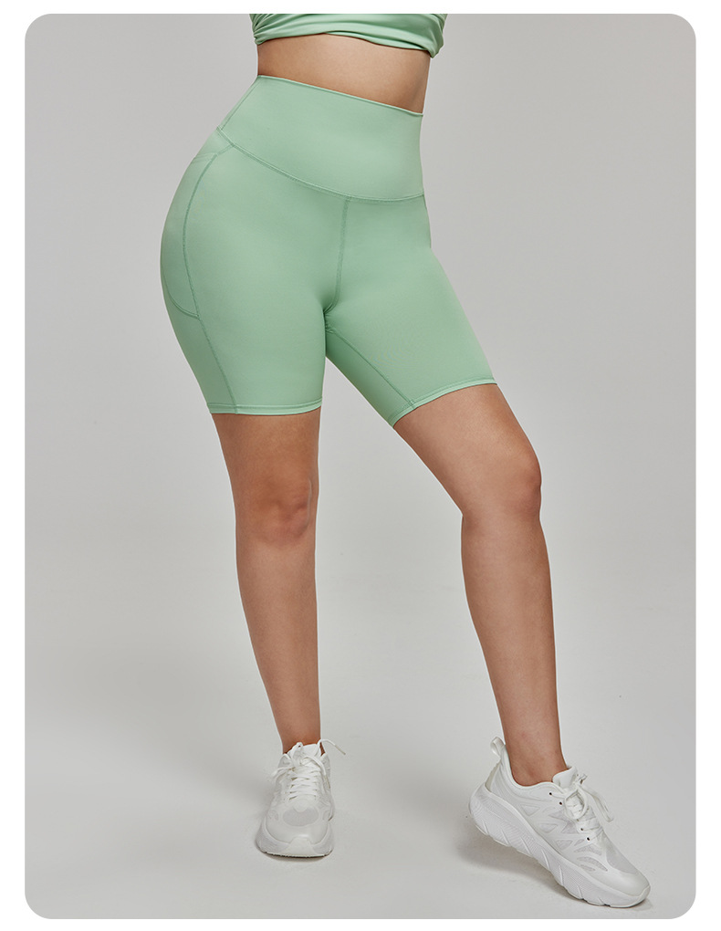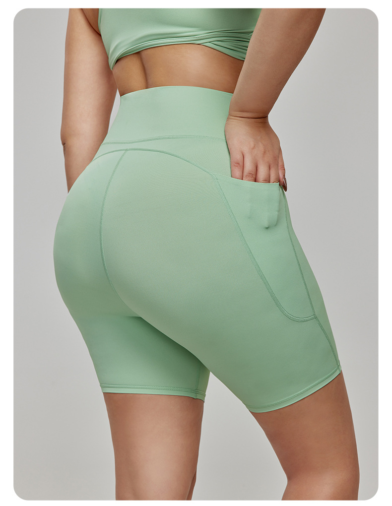 Antibacterial Side Pocket Sports Shorts plus Size Plump Girls Three Points Fitness Pants Yoga Shorts Women High Waist Hip Lift