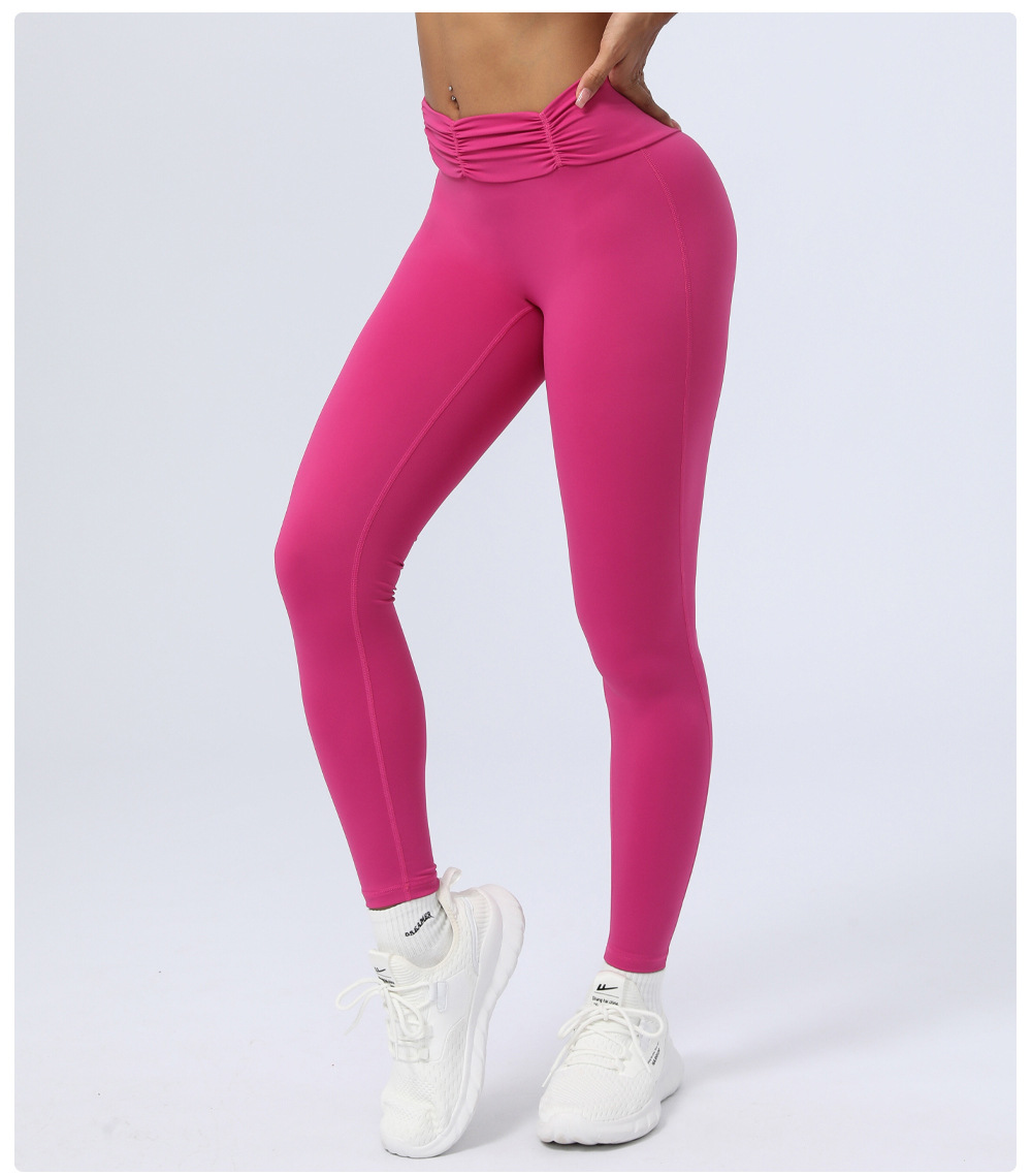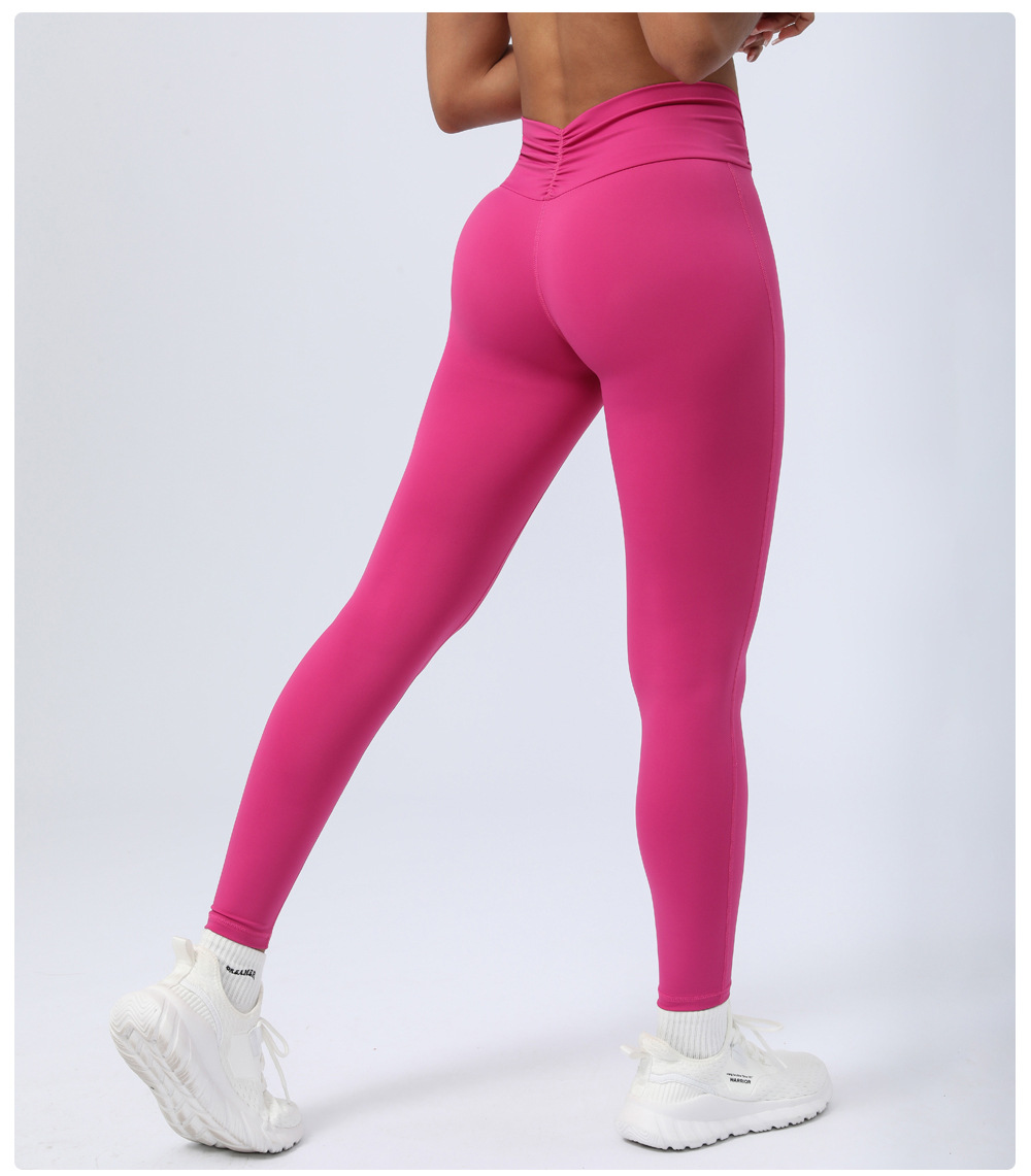 Arrival Nude Feel Pleated Yoga Ninth Pants Women No T Line Peach Hip Raise Fitness Pants Sports Hip Shaping Trousers