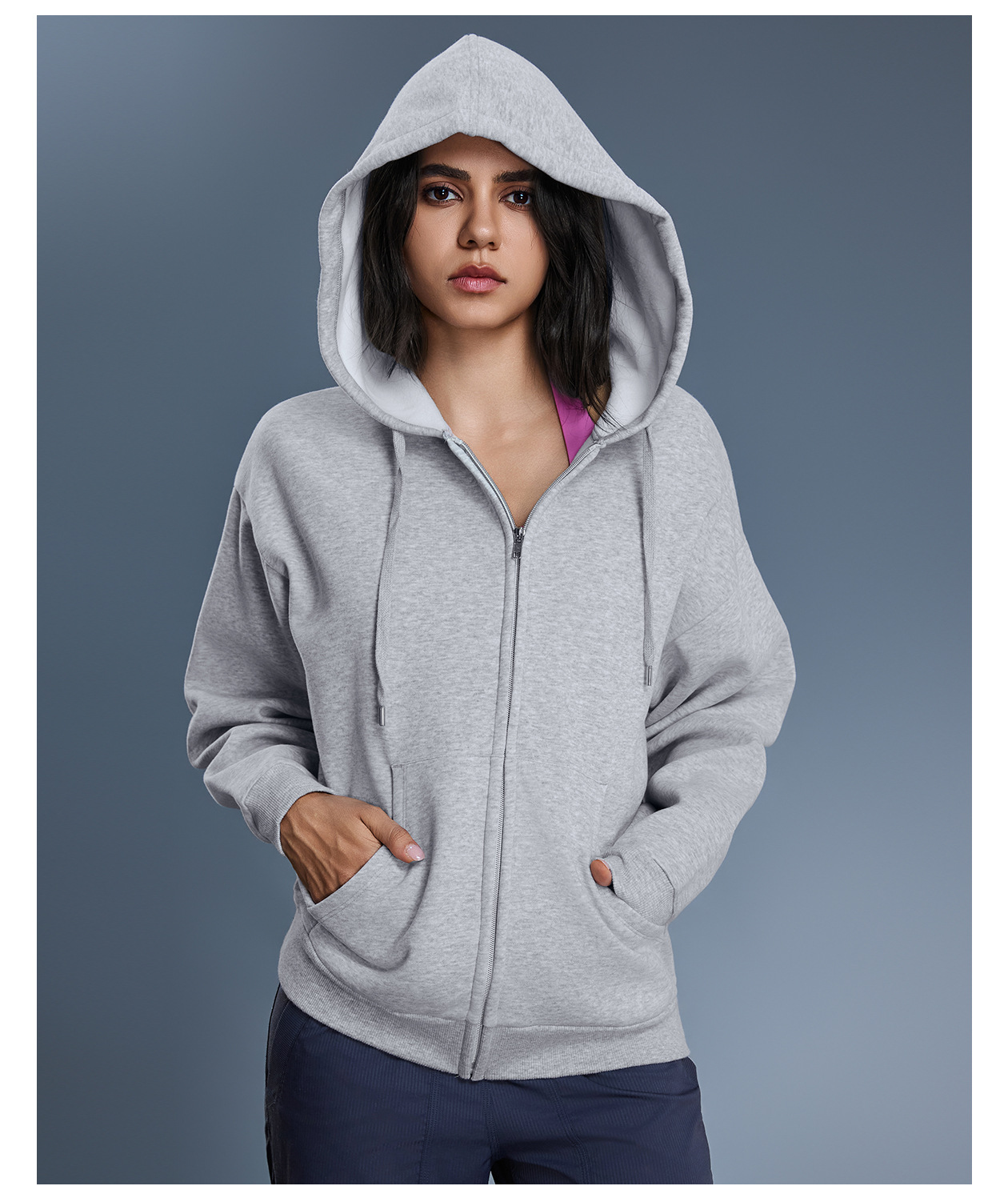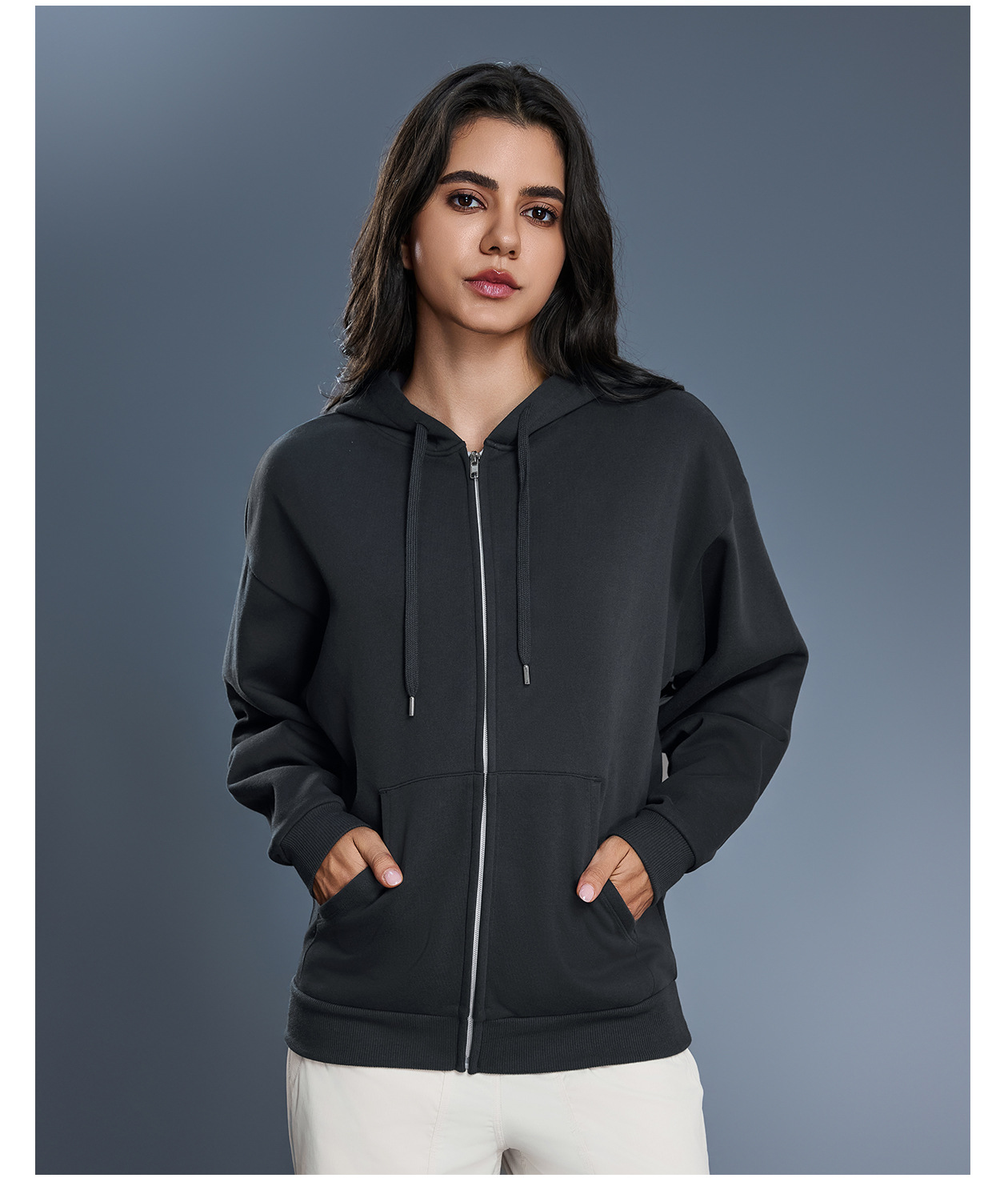 Autumn Winter Hooded Sweatshirt Women Windproof Warm Loose Slimming Casual Zipper Cardigan Outerwear