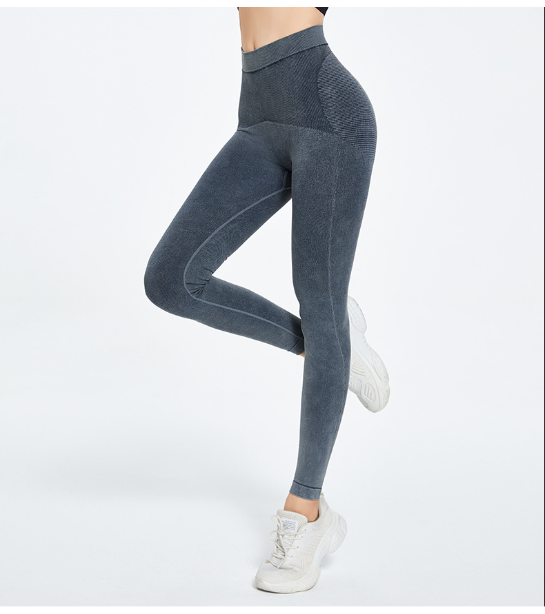 Dirty Wash Peach Hip Seamless Denim Sports Pants Slim Fit High Waist Hip Lift Outer Wear Yoga Pants Women