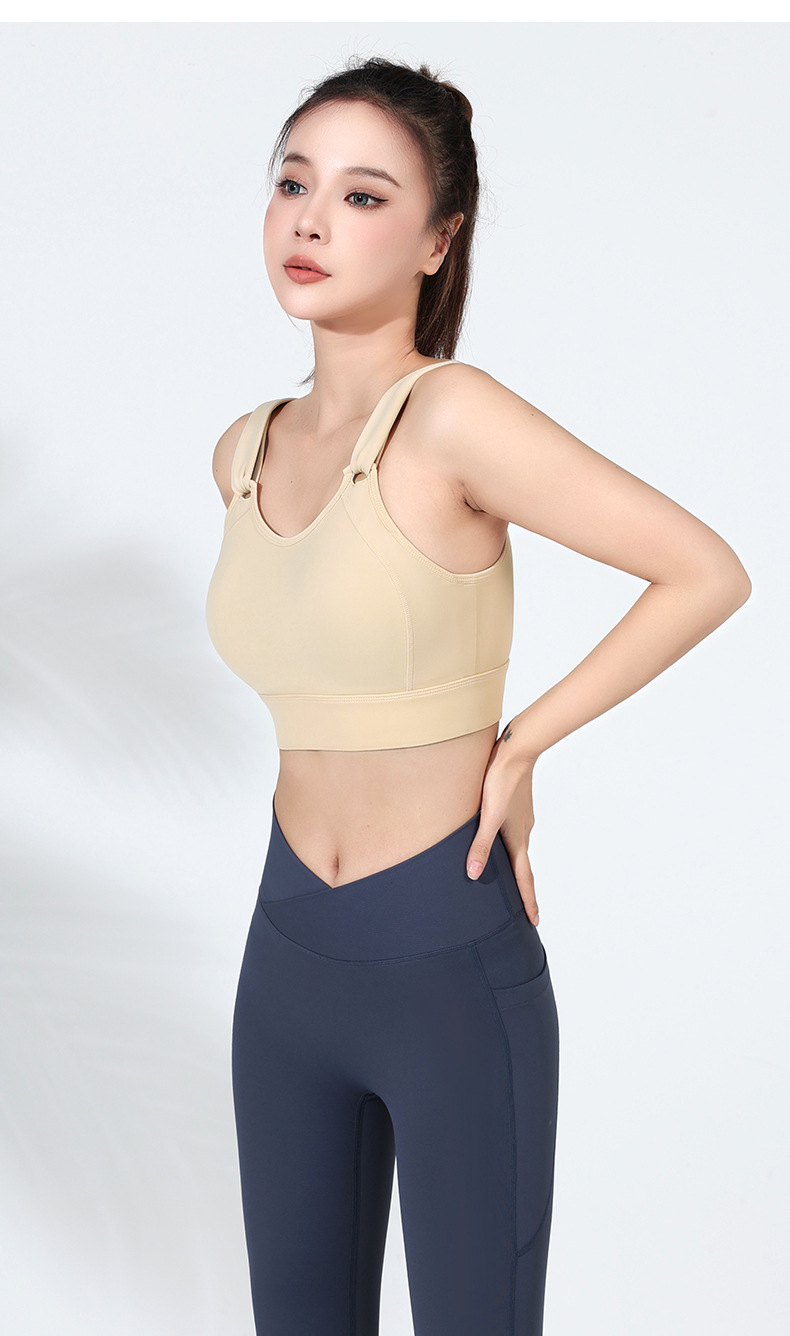 Fixed One Piece Cup Sports Bra Women High Shockproof Adjustable Velcro Strap Bra