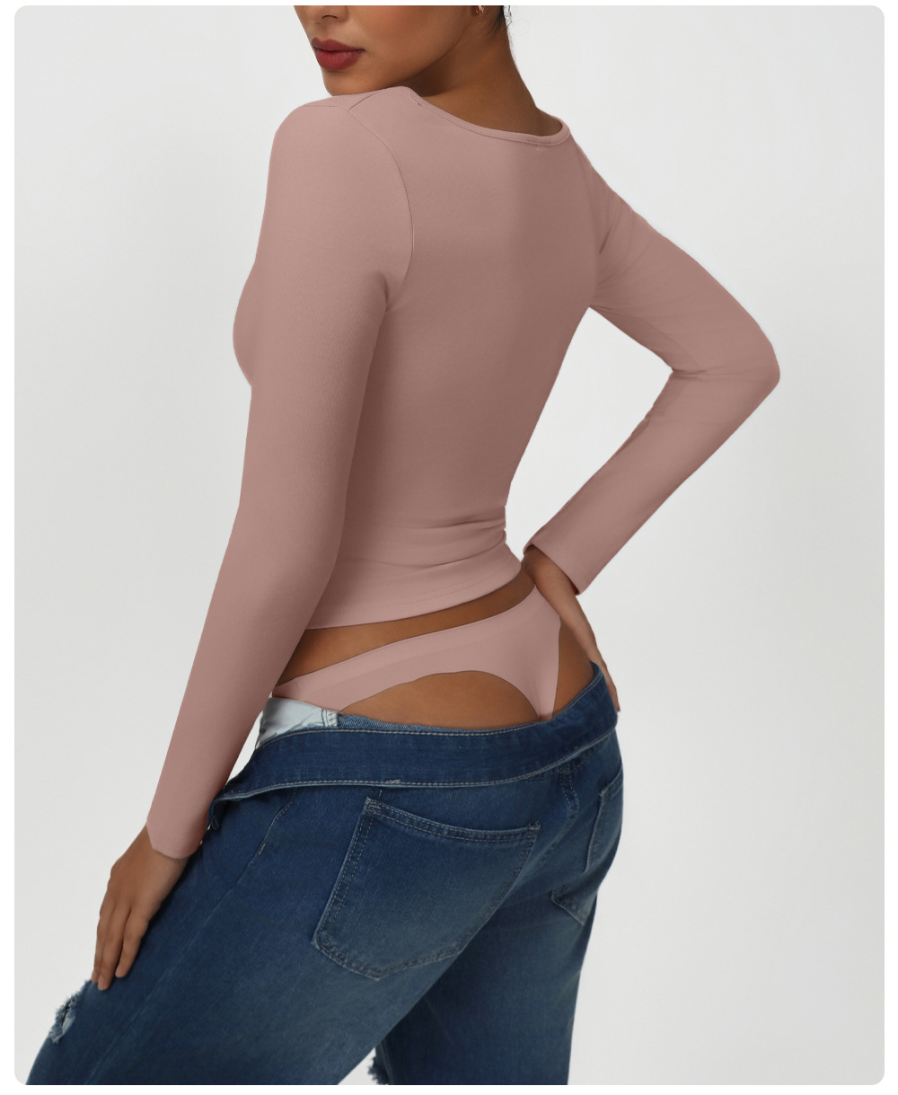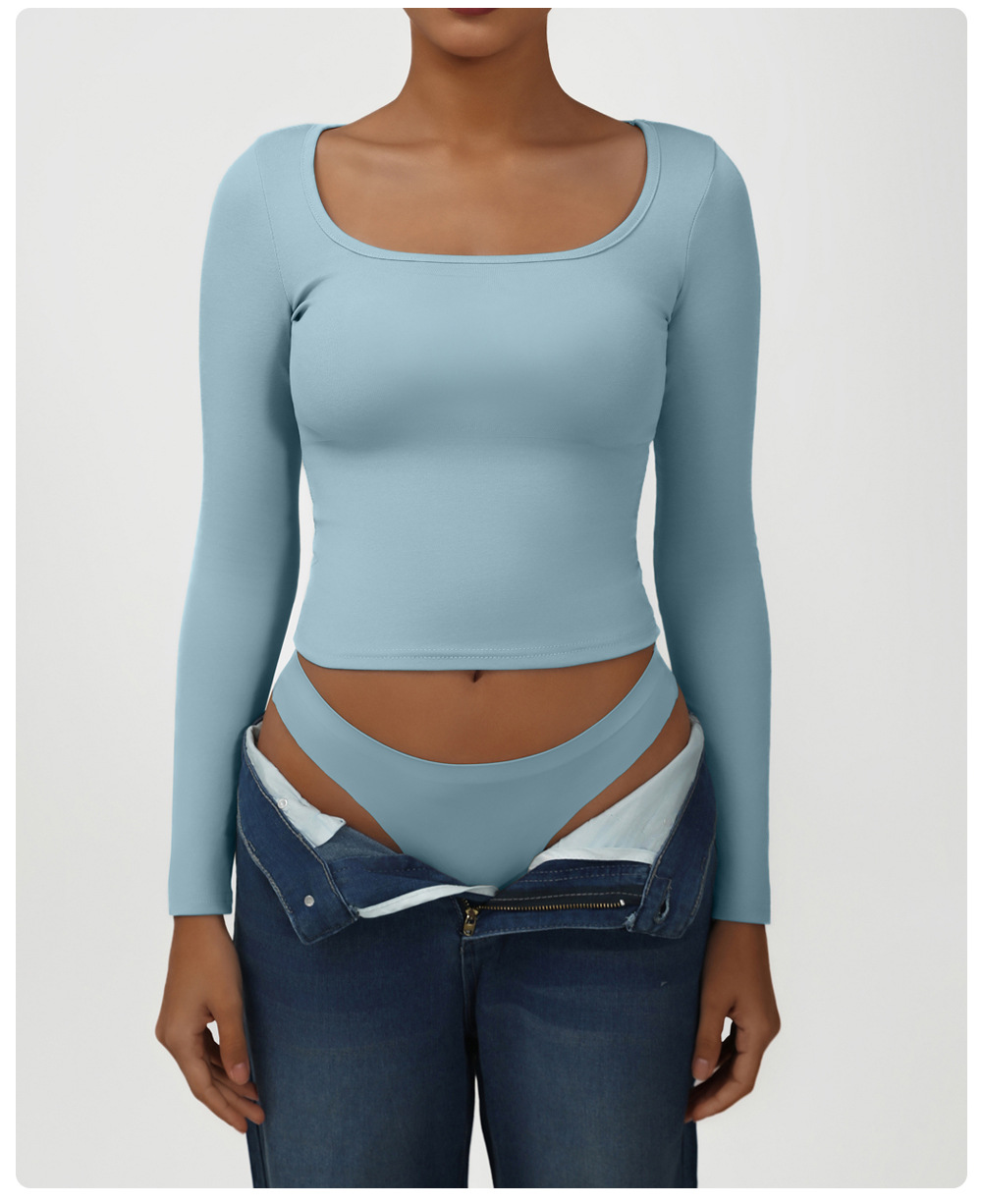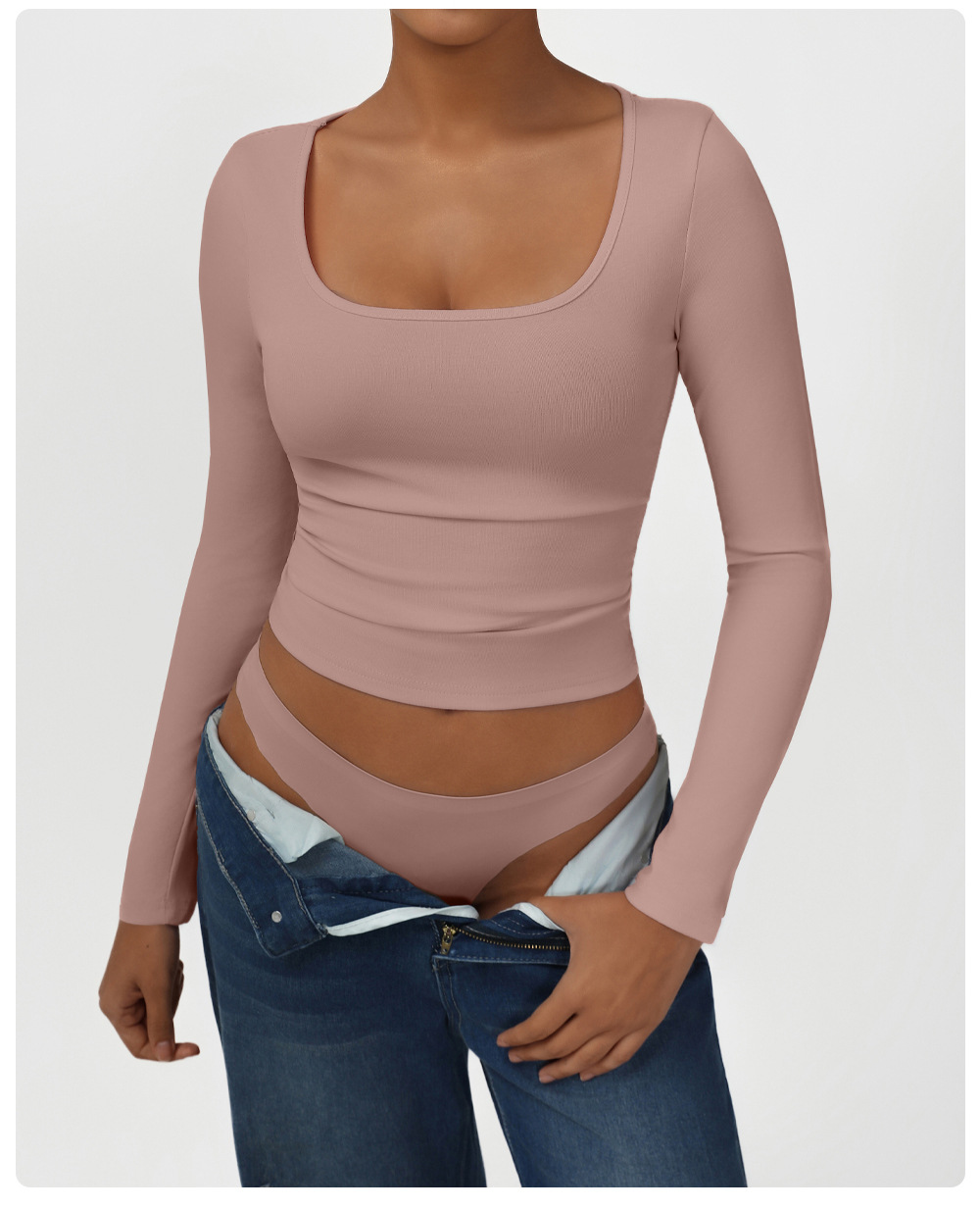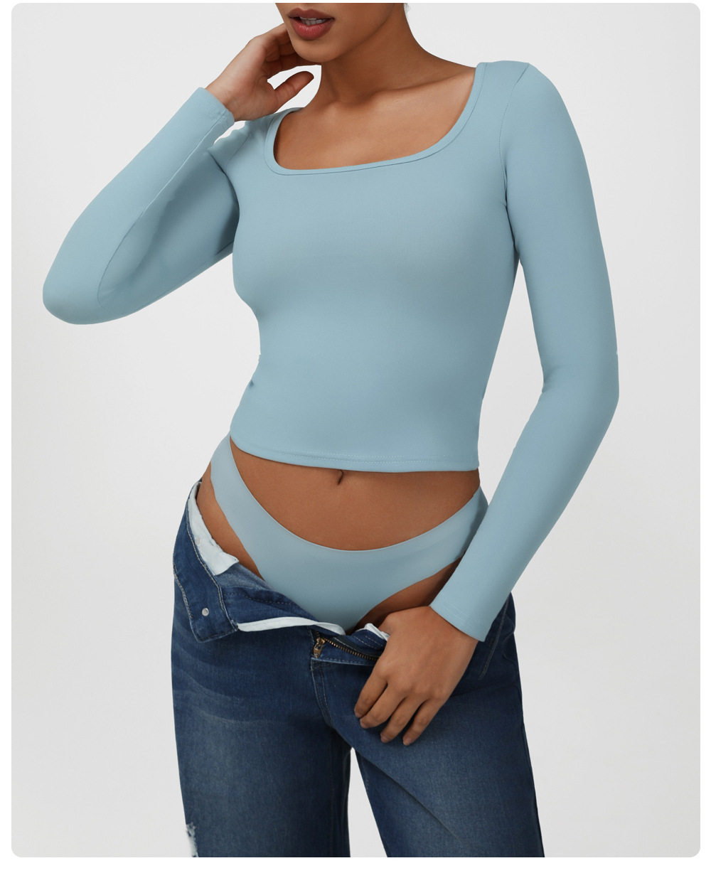High Elastic Tight T shirt Casual Sports Top Square Collar Sexy Solid Color Long Sleeve Yoga Jacket