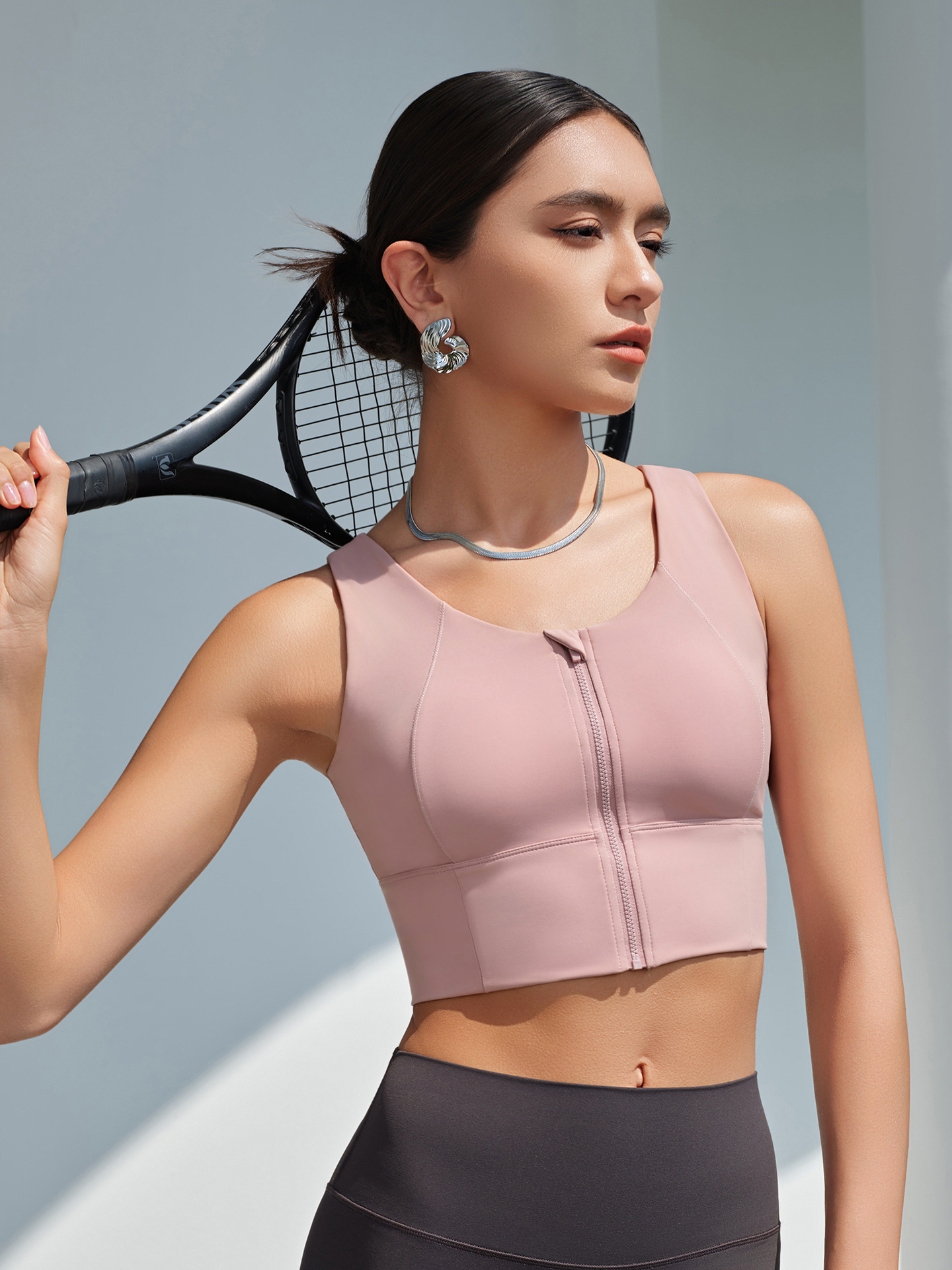 High Strength Sports Underwear Women Shockproof Front Zipper Anti Sagging Nude Feel Quick-Drying Yoga Clothes Vest with Chest Pad
