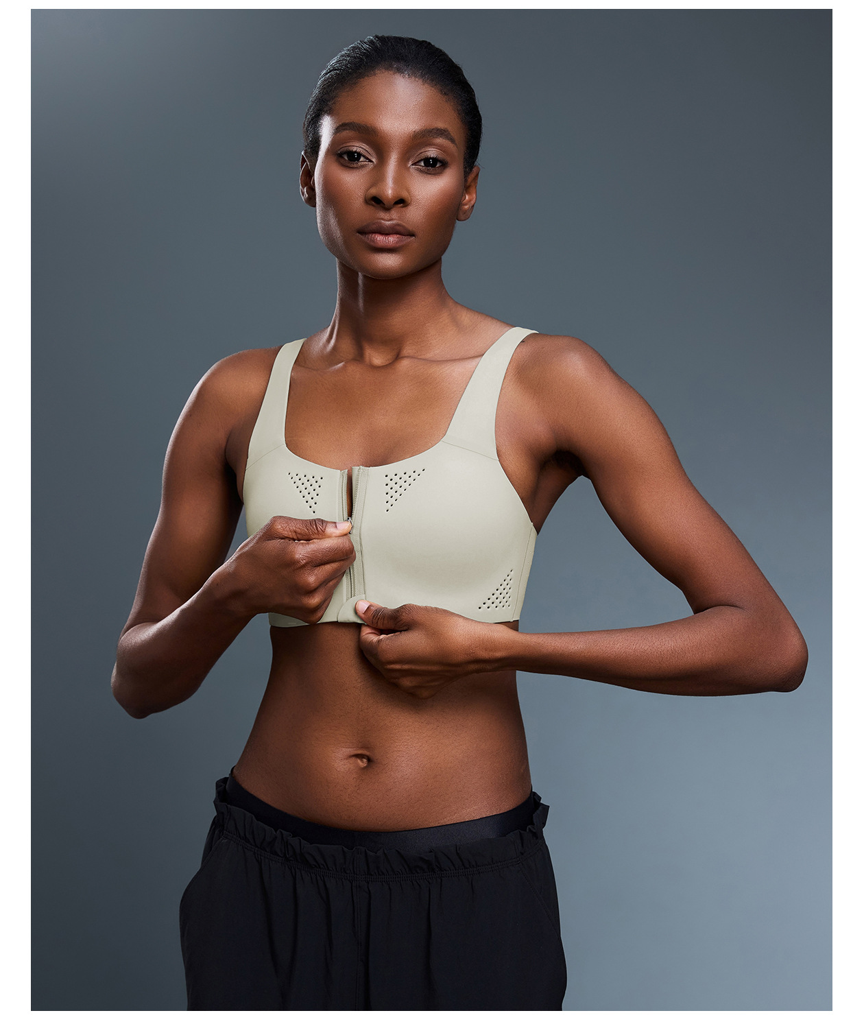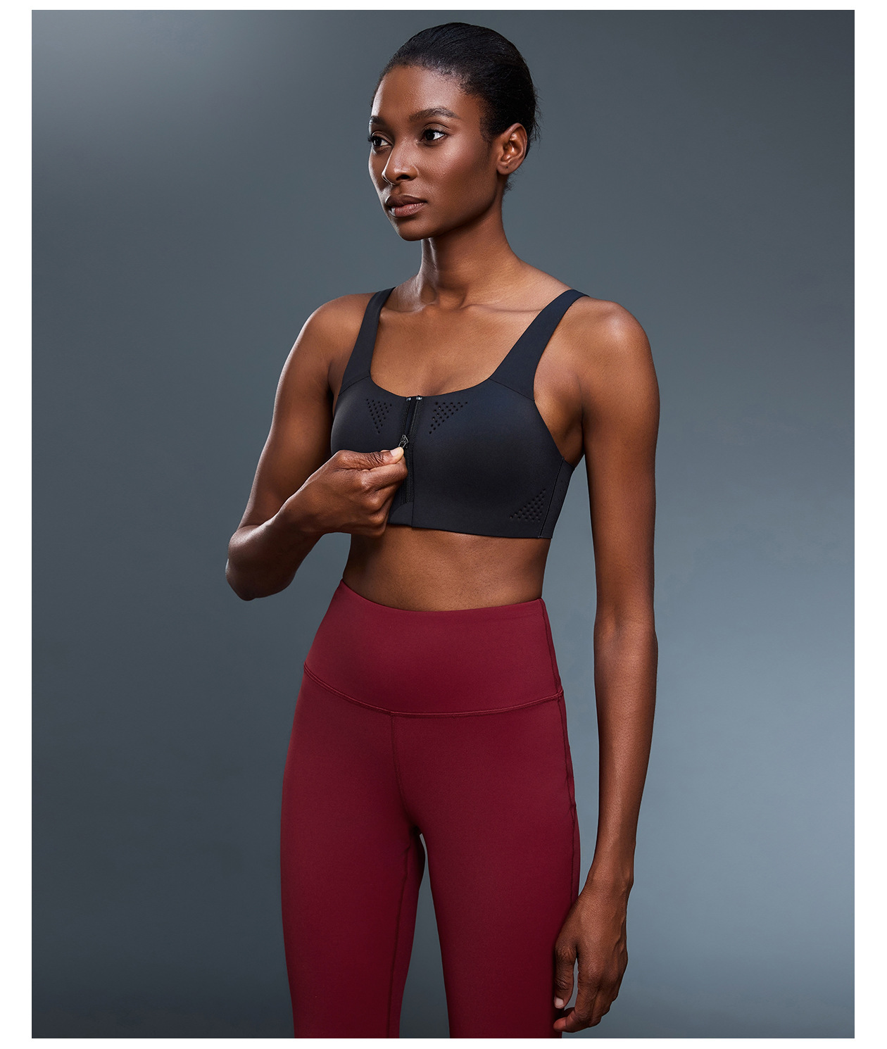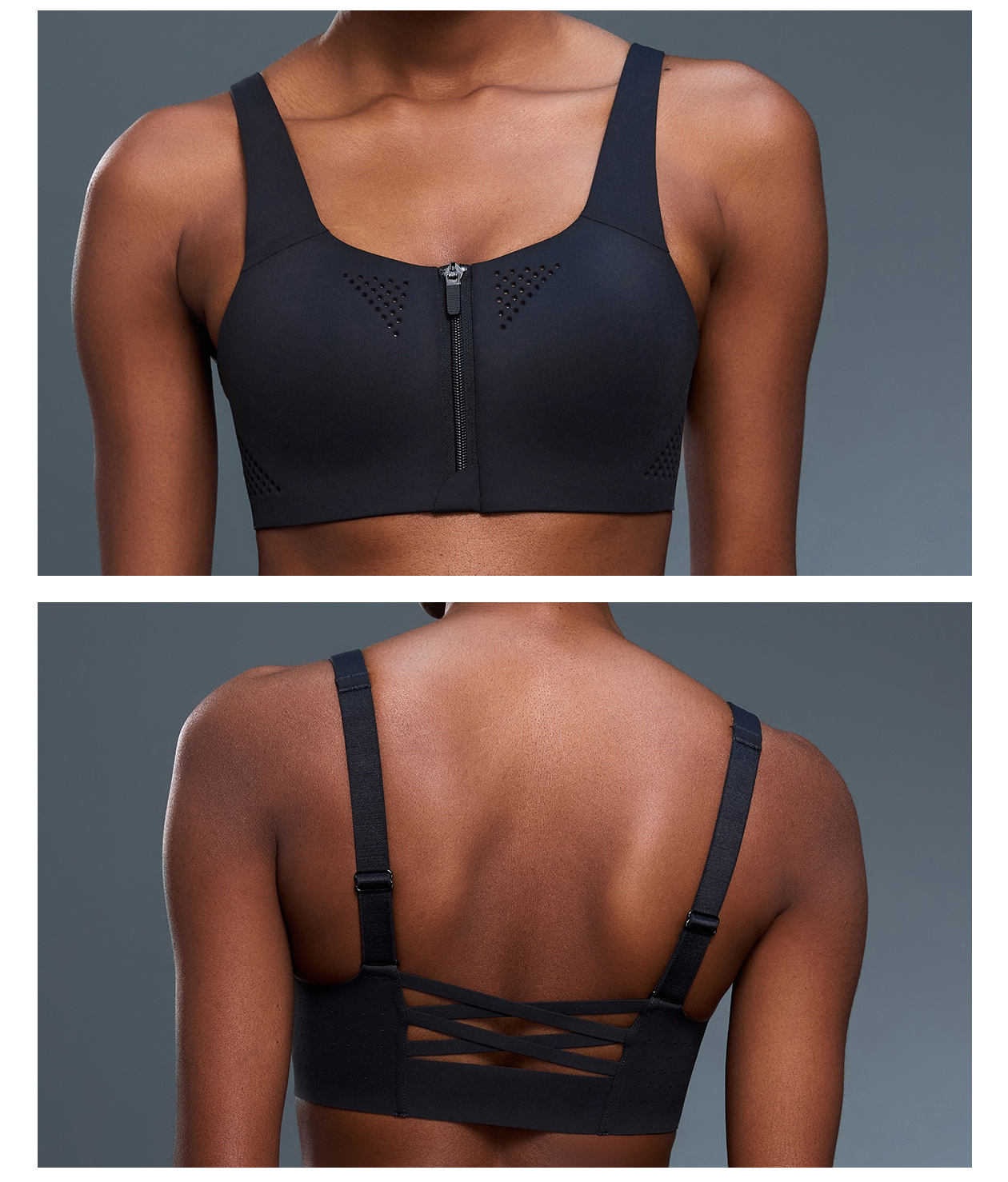 High Strength Support Sports Underwear Front Zipper Yoga One Piece Cup Shockproof Running Training Backless Bra