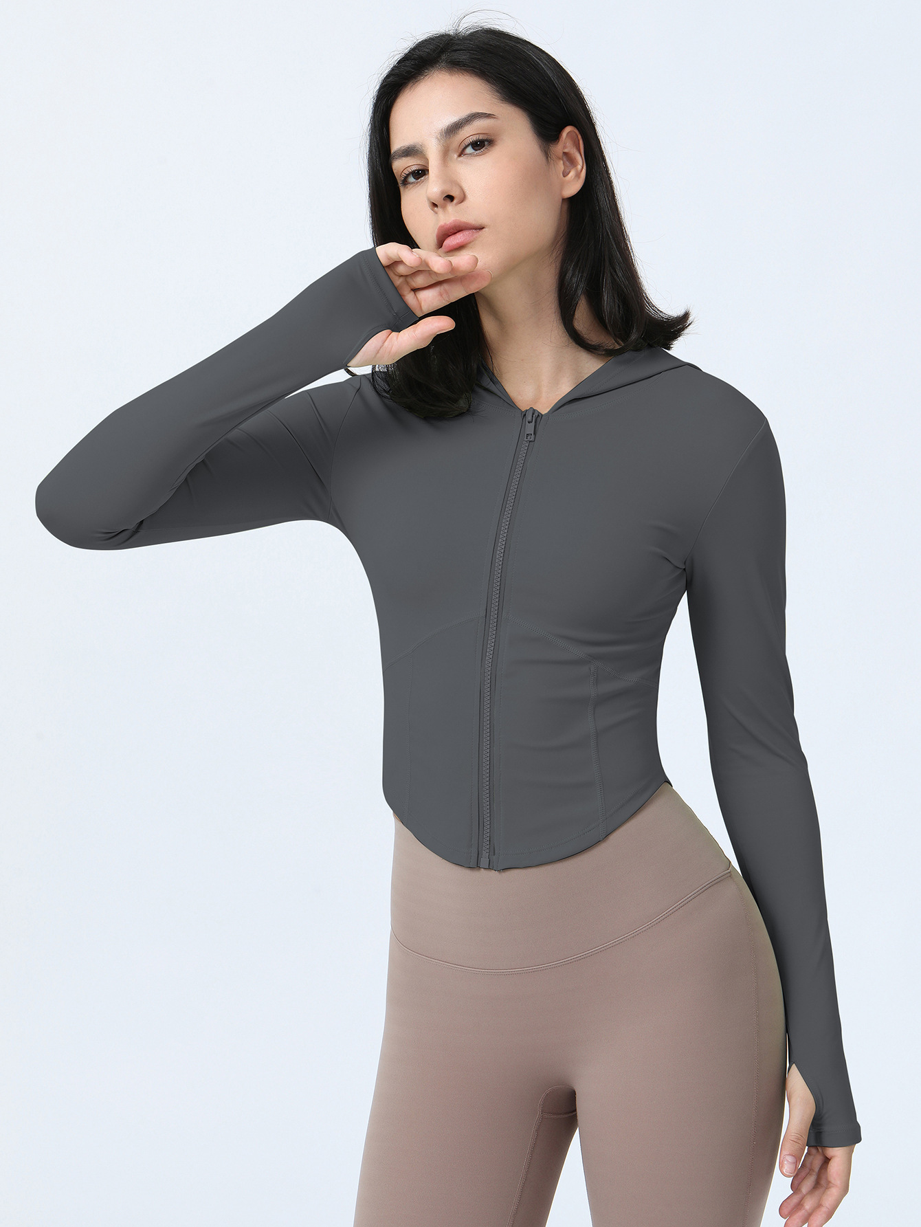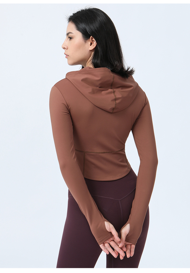 Internet Celebrity Nude Feel Yoga Clothes Coat Autumn Winter Long Sleeved Women Zipper Hooded Running Sports Workout Clothes Top