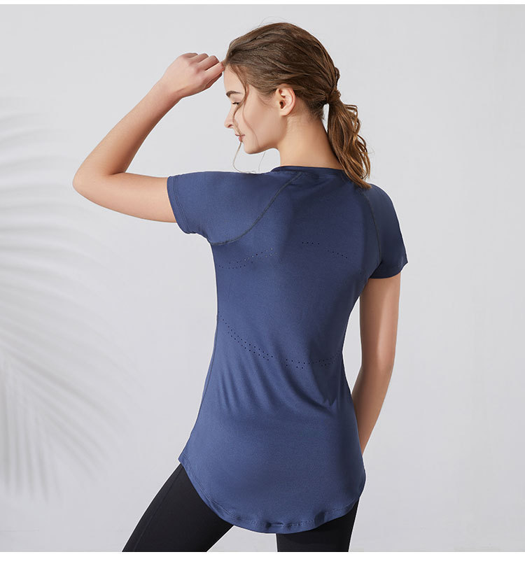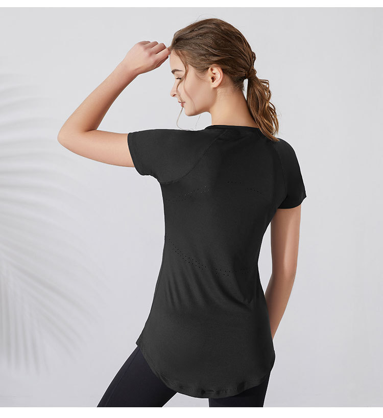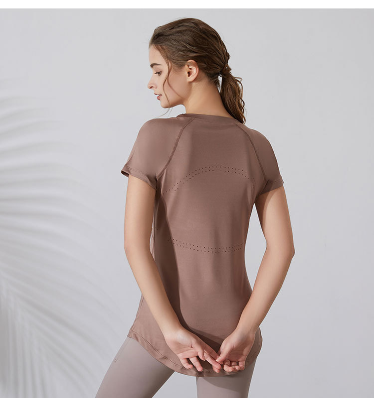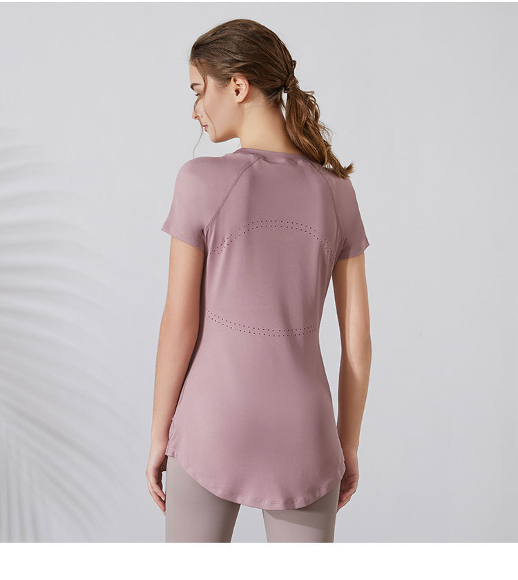 Long Thigh Length Thin Yoga Wear Mesh Beauty Back Breathable Short Sleeve Running Fitness Top Sportswear Women