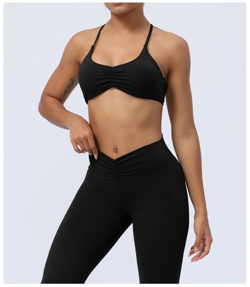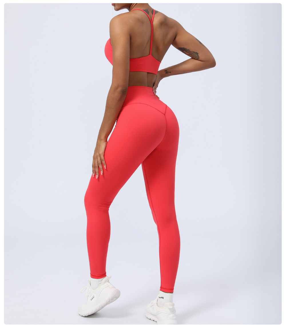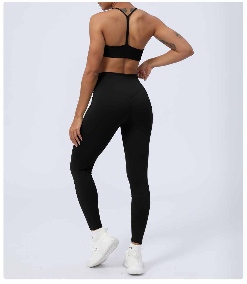 Nude Feel Fitness Clothes Suit Y Shaped Beauty Back Yoga Clothes With Chest Pad Hip Lifting Cropped Pants Sports Two Piece Suit Women