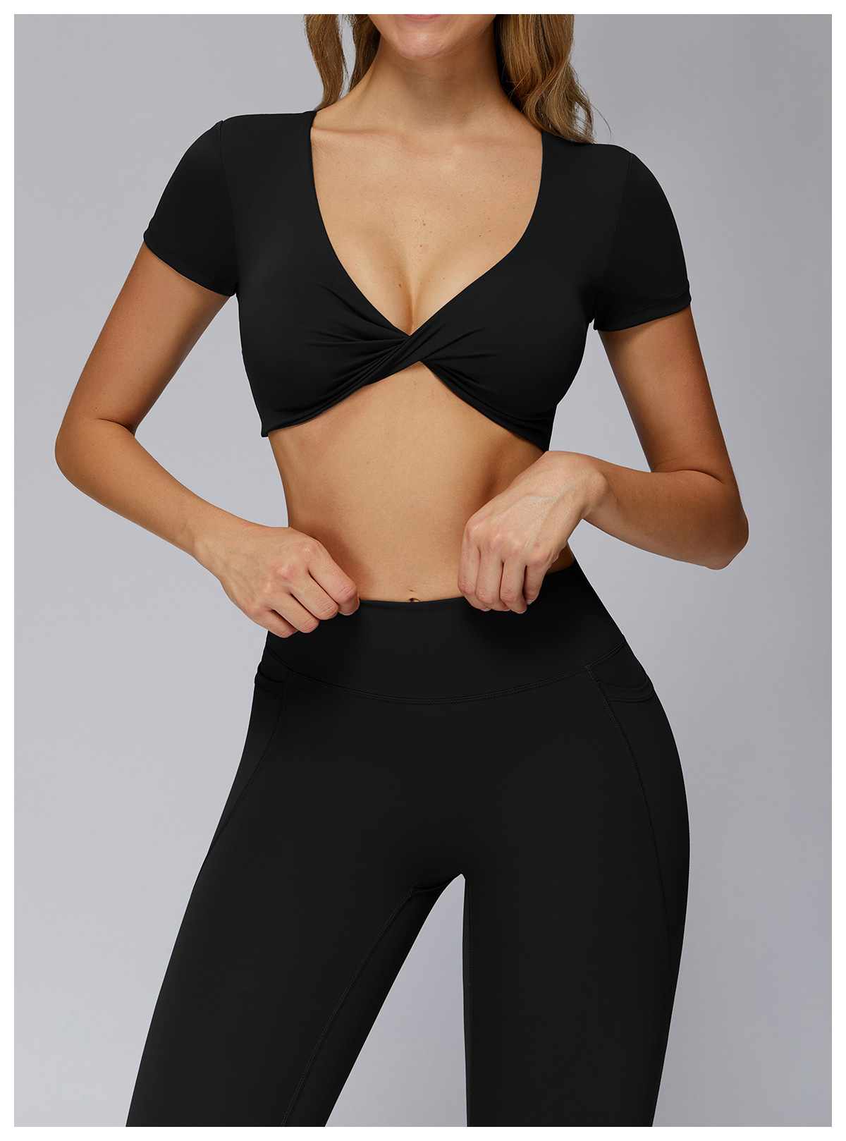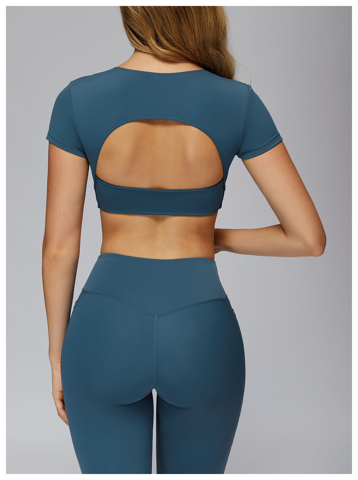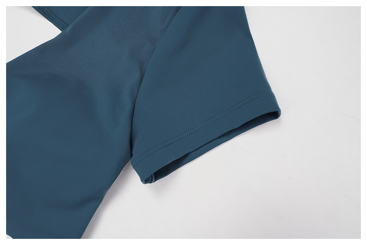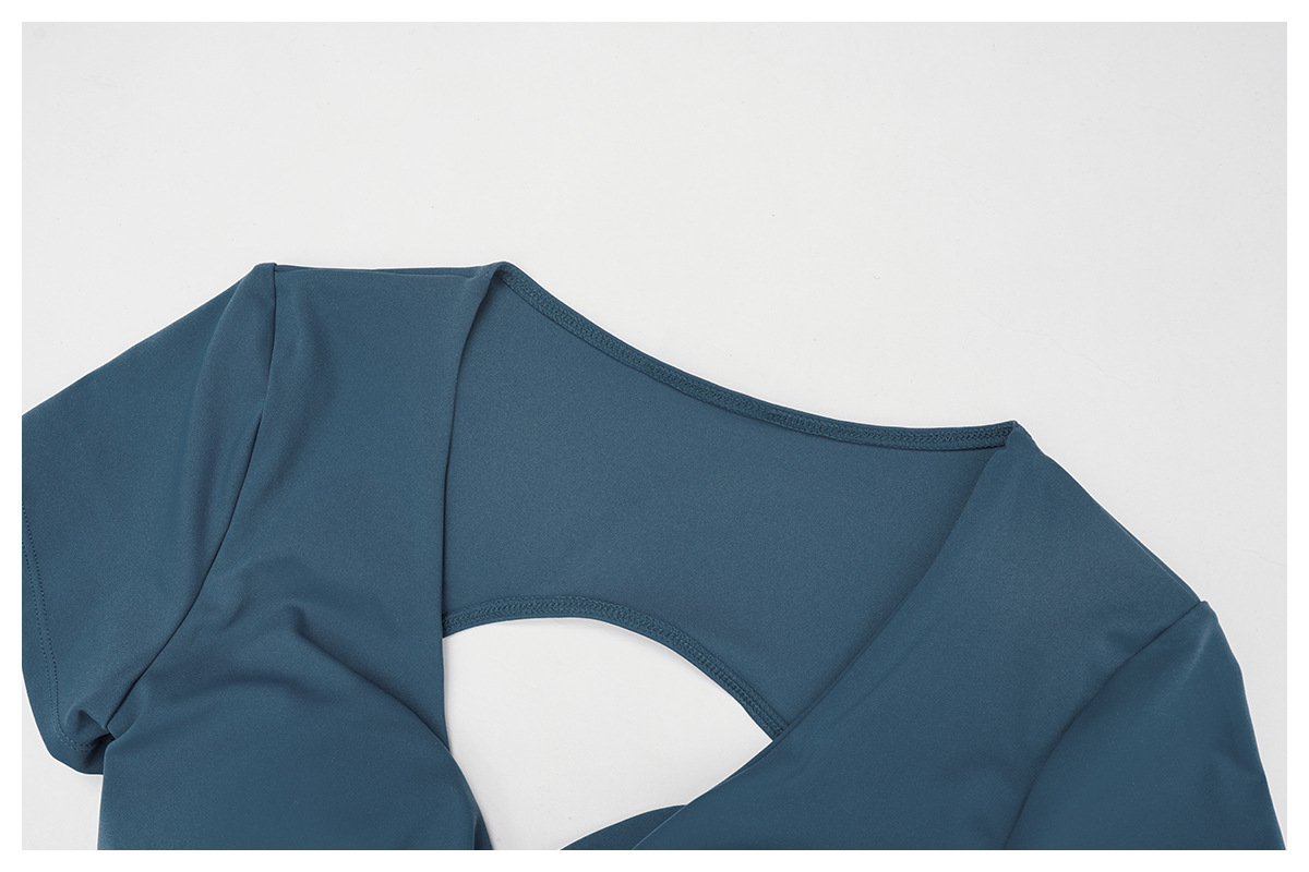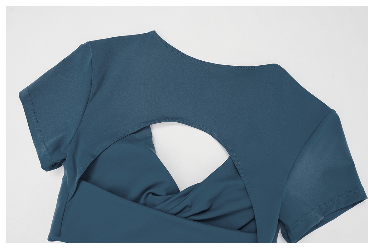 Nude Feel Pleated Yoga Short Sleeve V neck Hollow Out Cutout Beauty Back Tight Top Running Sports Fitness T shirt Women