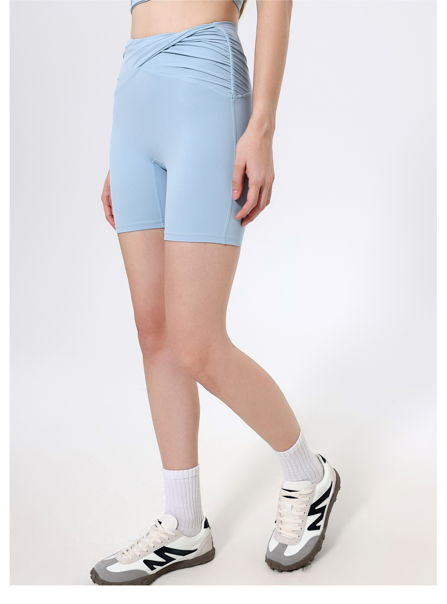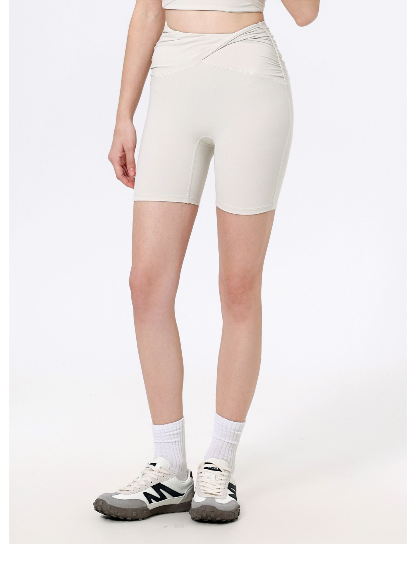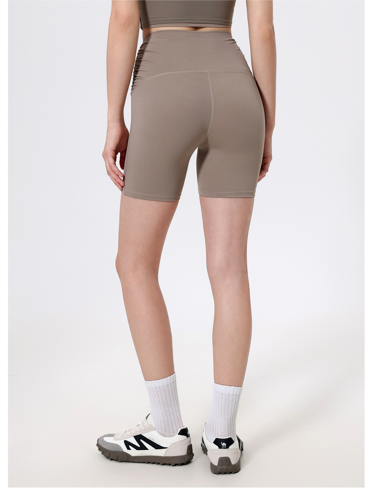 Nude Feel Pleated Yoga Tight Shorts Women Summer High Elastic Hip Lifting Four Points Cycling Pants Sports Fitness Shorts