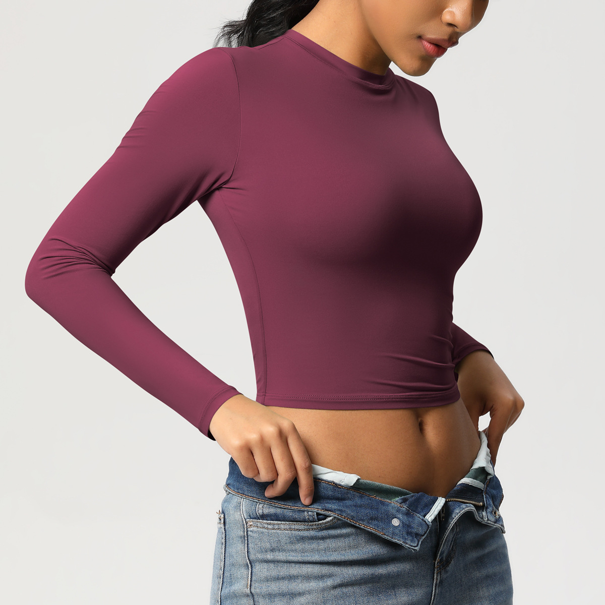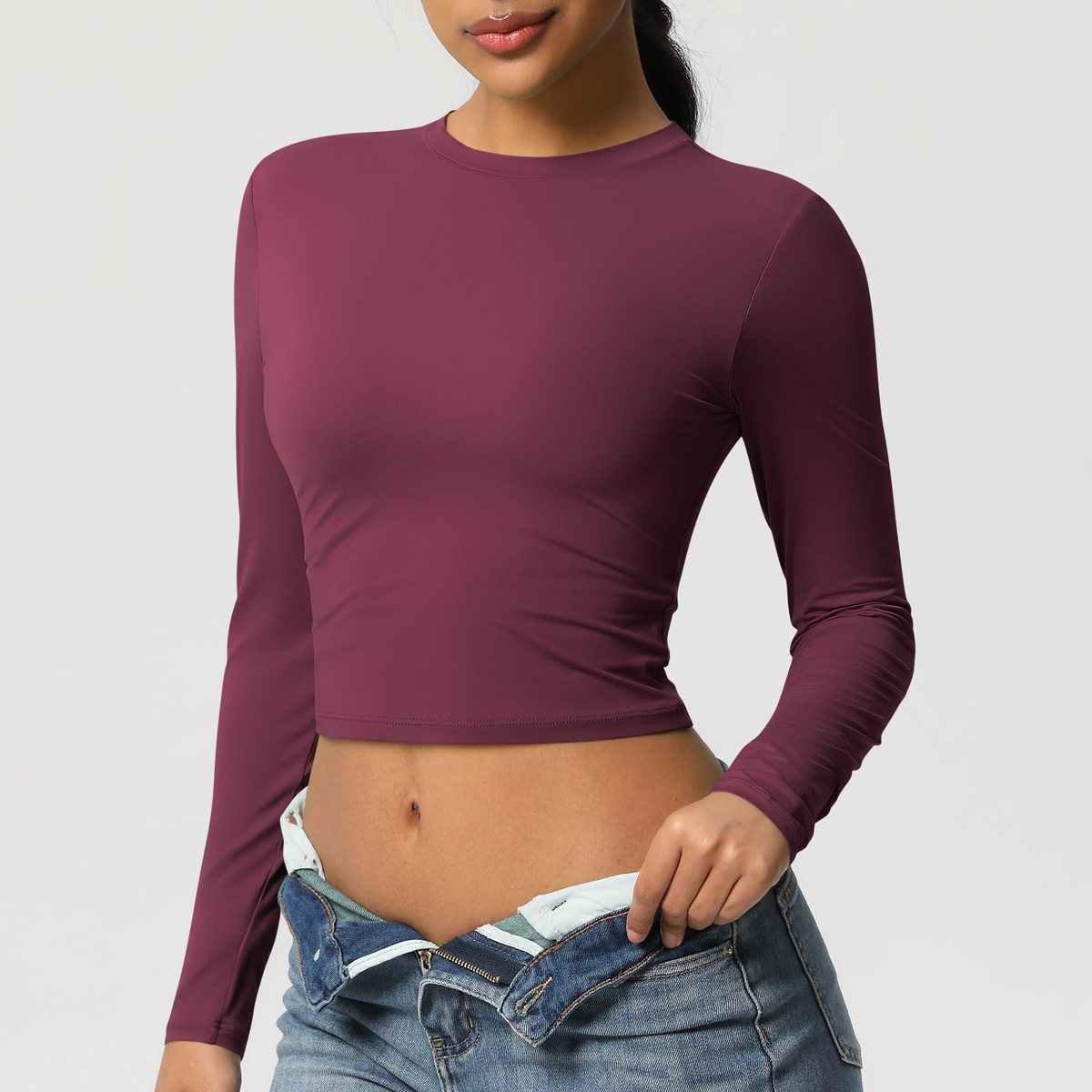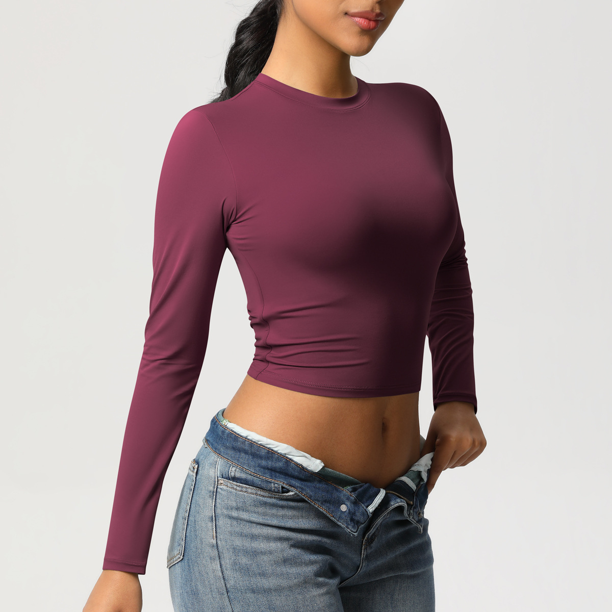 Nude Feel Tight Sports T shirt Quick Drying Breathable Long Sleeves Yoga Clothes Pilates Running Sports Fitness Long Sleeved Upper Garment