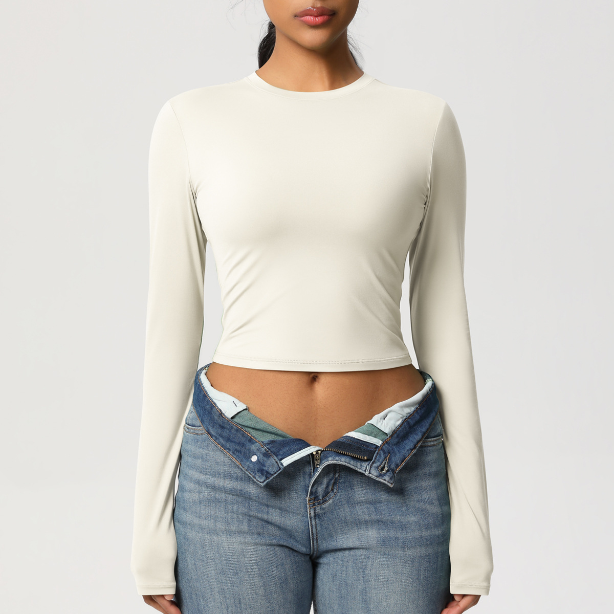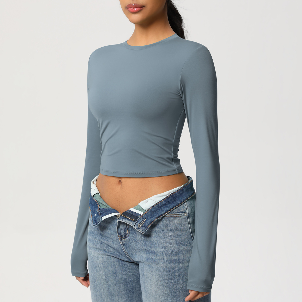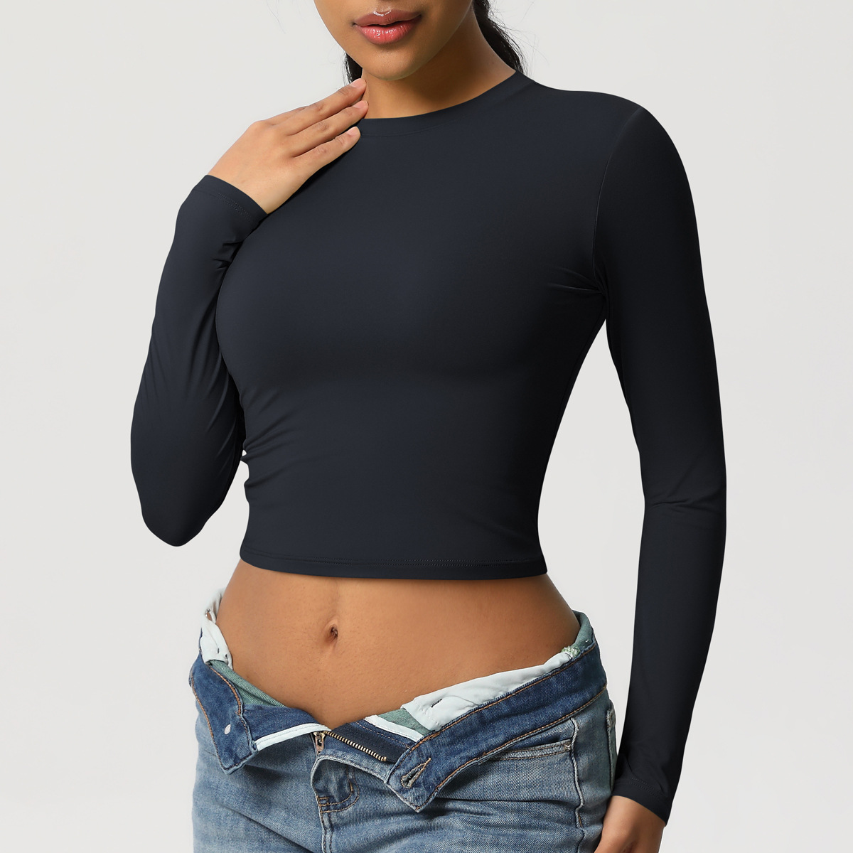 Nude Feel Tight Sports T shirt Quick Drying Breathable Long Sleeves Yoga Clothes Pilates Running Sports Fitness Long Sleeved Upper Garment