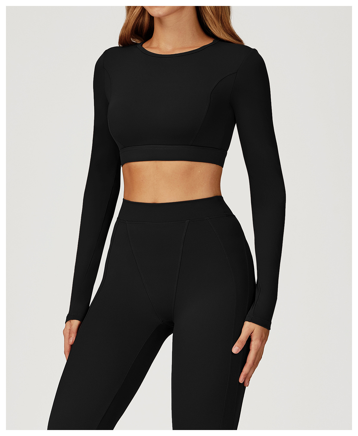 Nude Feel Tight Yoga Long Sleeve Shockproof Sports round Neck Long Sleeve Running Workout Yoga Top