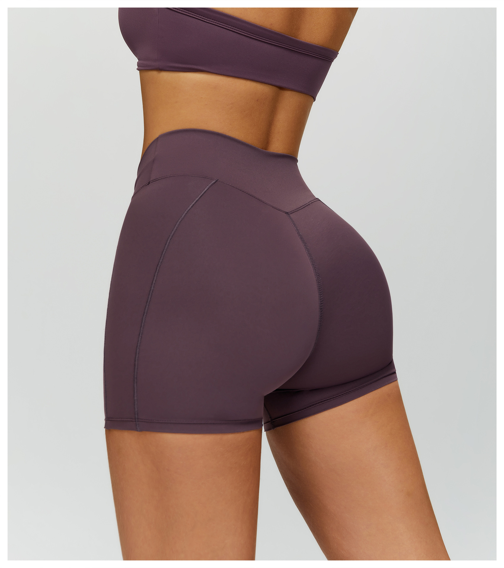 Nude Feel Yoga Shorts Cross Pleated High Waist Shorts Outdoor Sports Running Workout Shorts