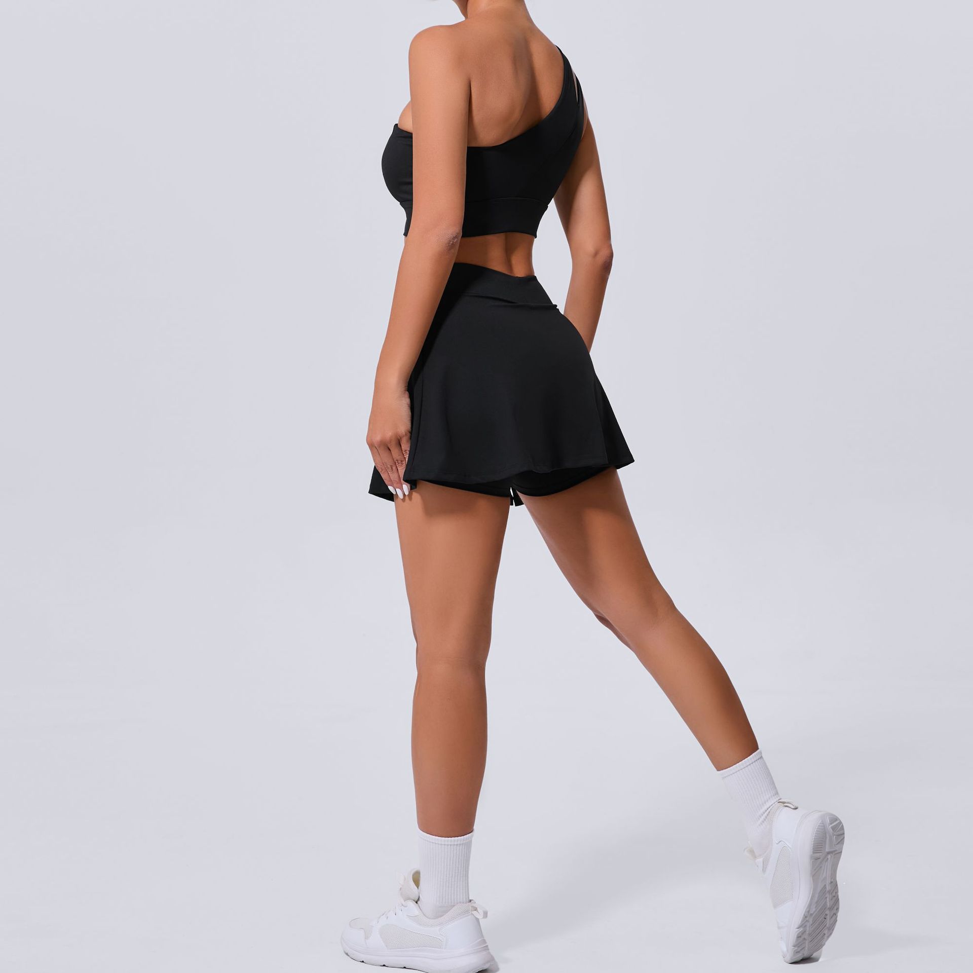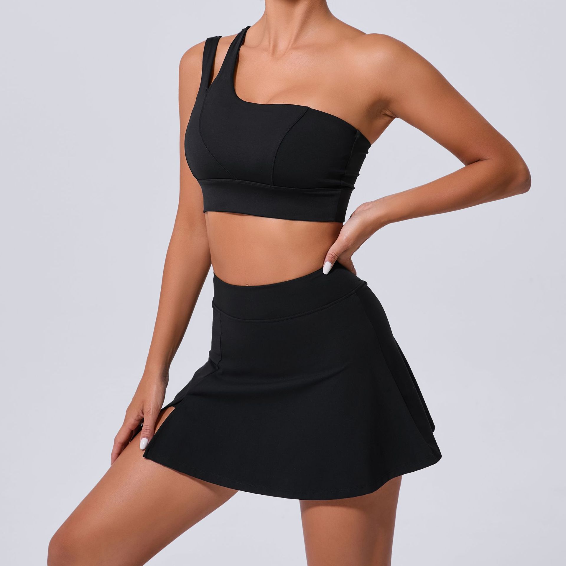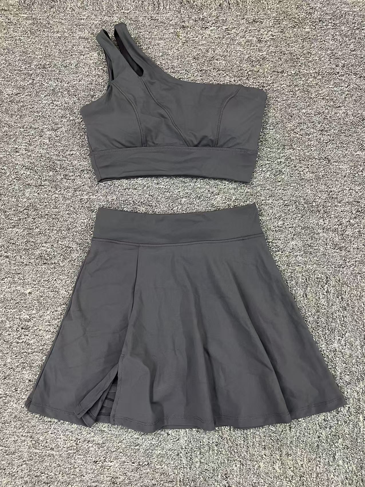 Oblique Shoulder Bra Pocket Skirt Yoga Quick Drying Beauty Back Fitness Running Tennis Sports Set for Women