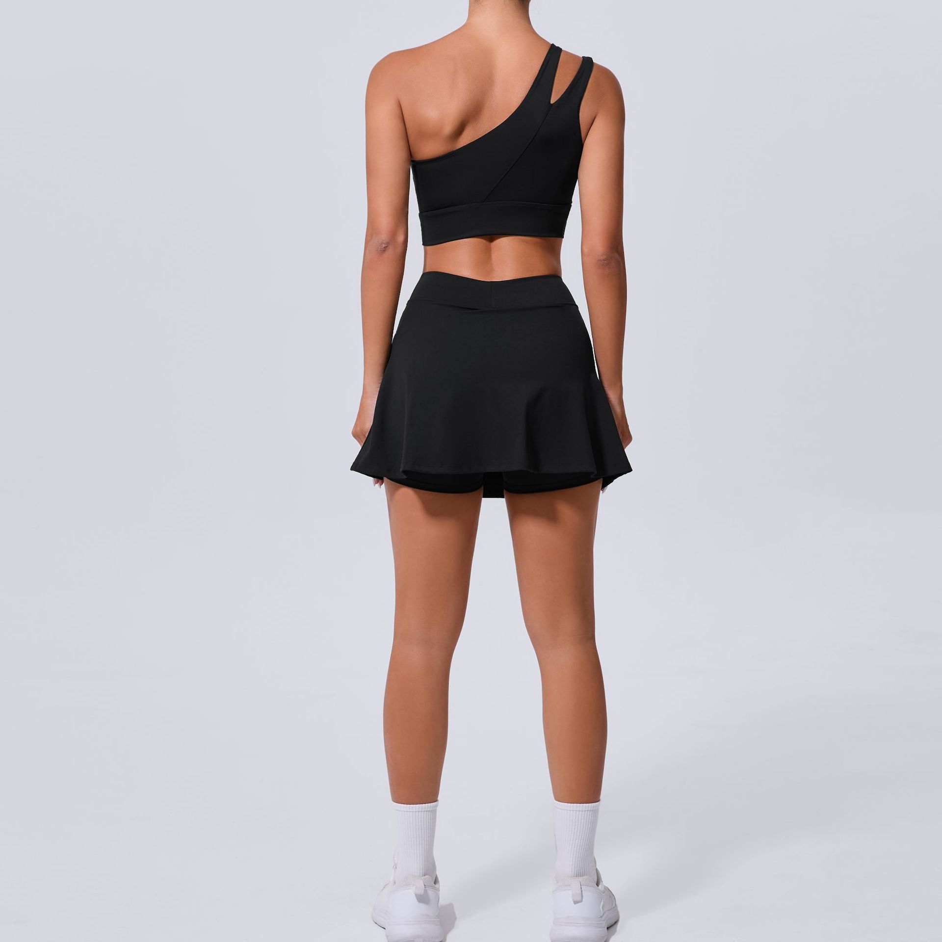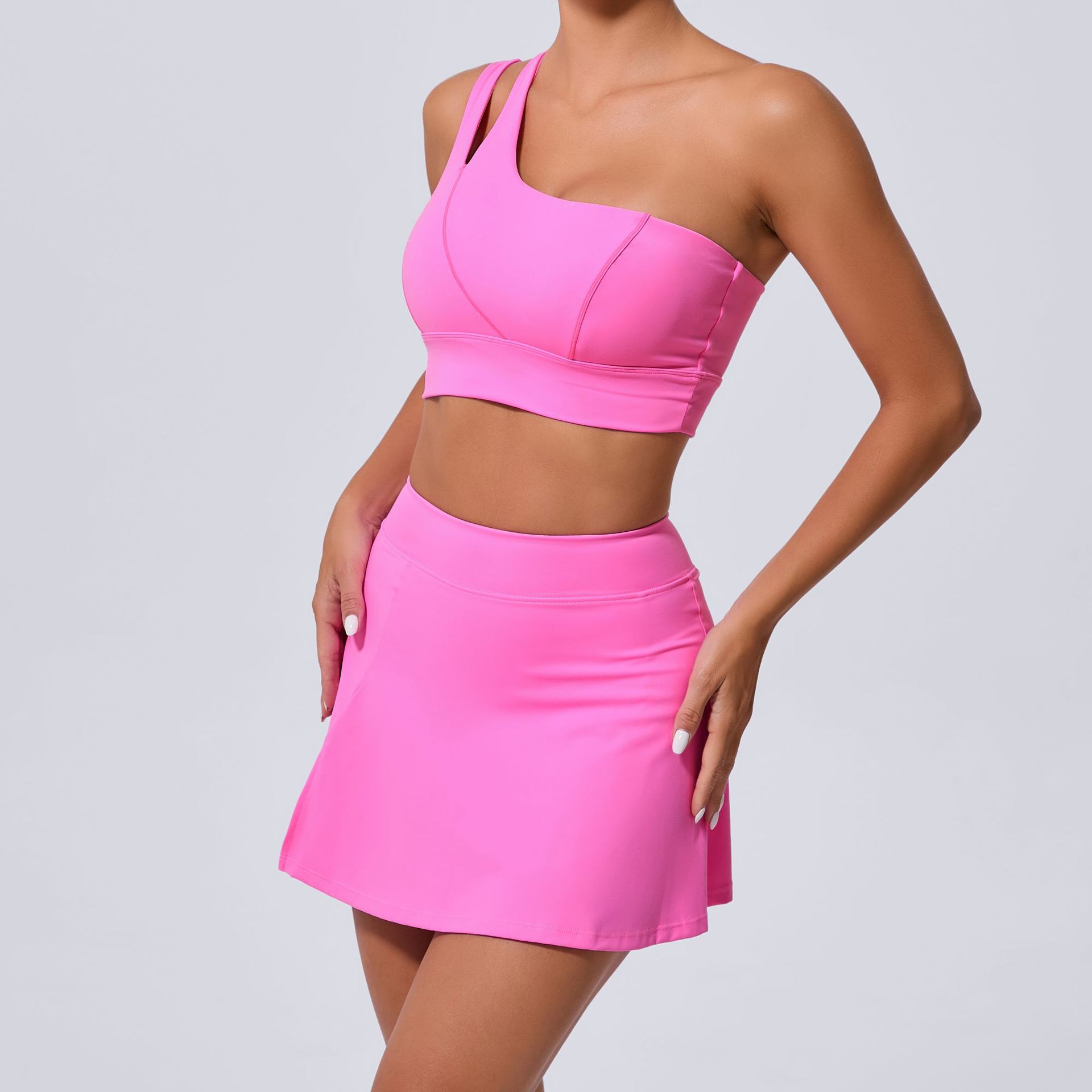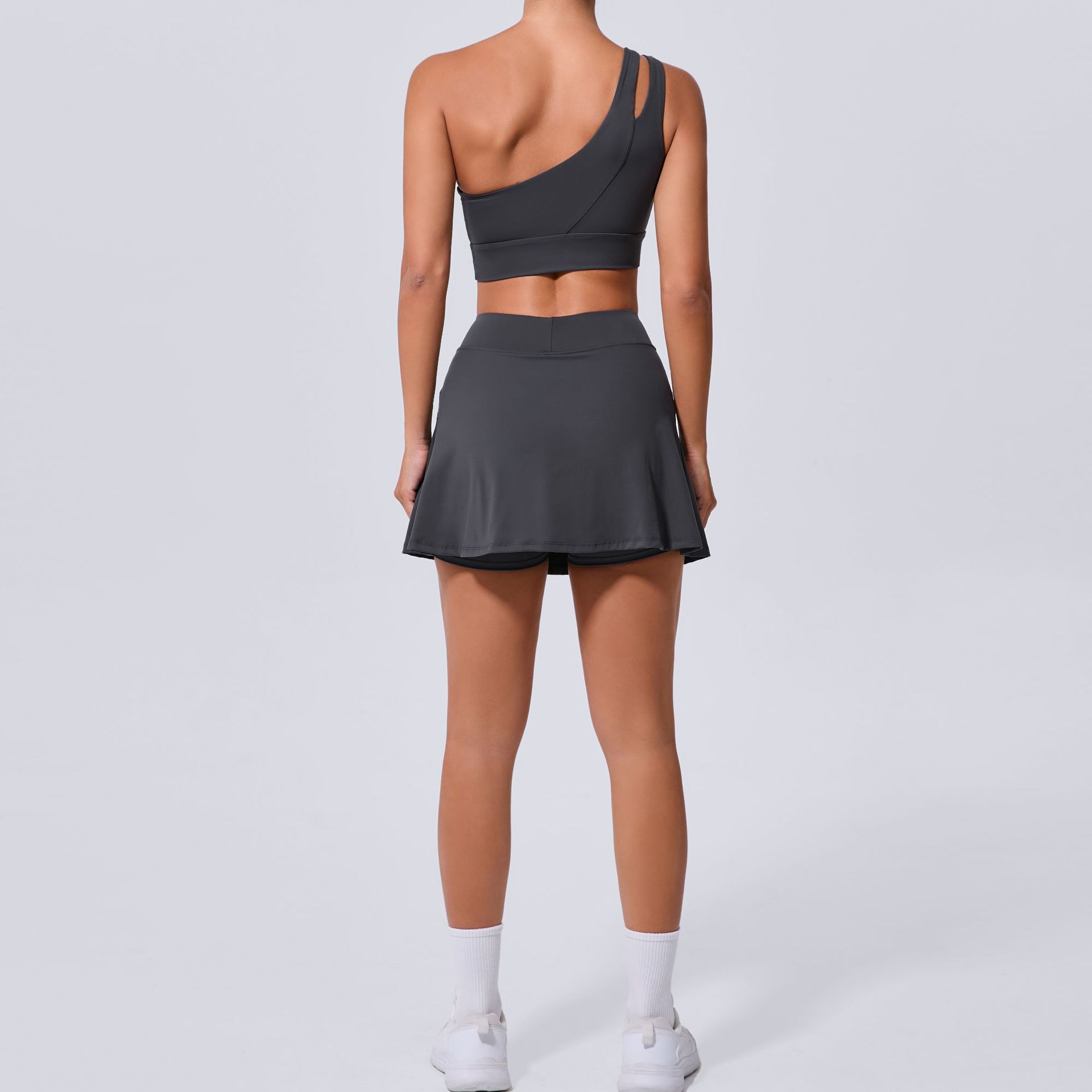 Oblique Shoulder Bra Pocket Skirt Yoga Quick Drying Beauty Back Fitness Running Tennis Sports Set for Women