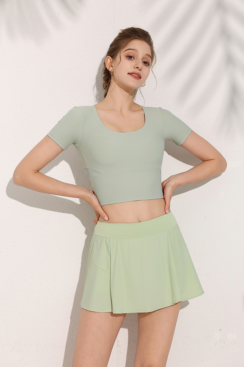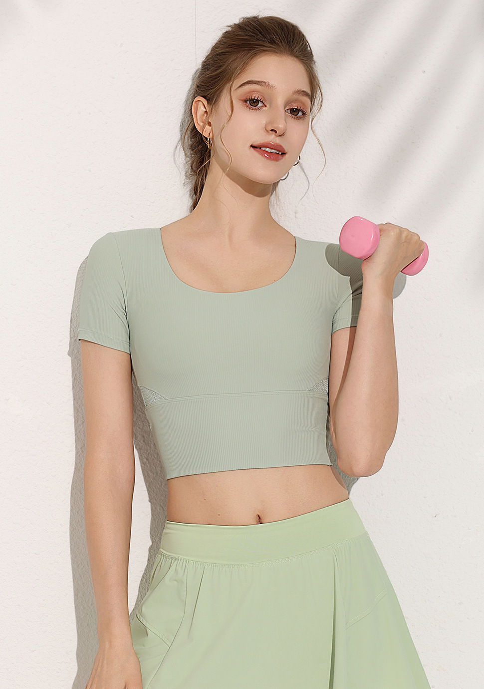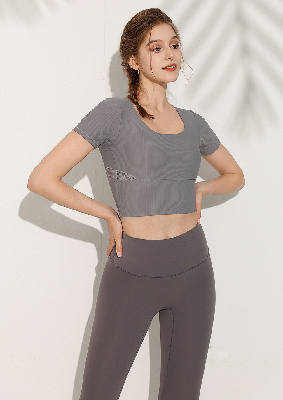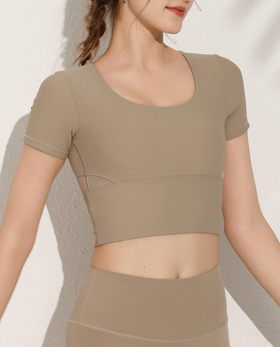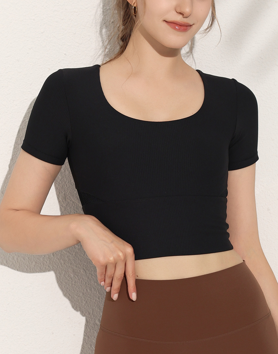 One Piece Yoga Clothes with Chest Pad Women Beauty Back Stitching Short Sleeved Sports T Shirt Short Workout Top Slimming