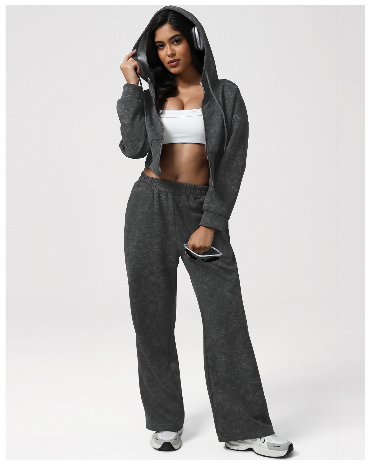 Outdoor Running Casual Wide Leg Pants Loose High Waist Print Straight-Leg Pants Sports Training Trousers Women