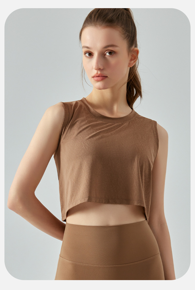 Outdoor Sports Vest Women Short Jacquard Yoga Jacket Loose Sleeveless Breathable Outdoor Running T-shirt Workout Clothes