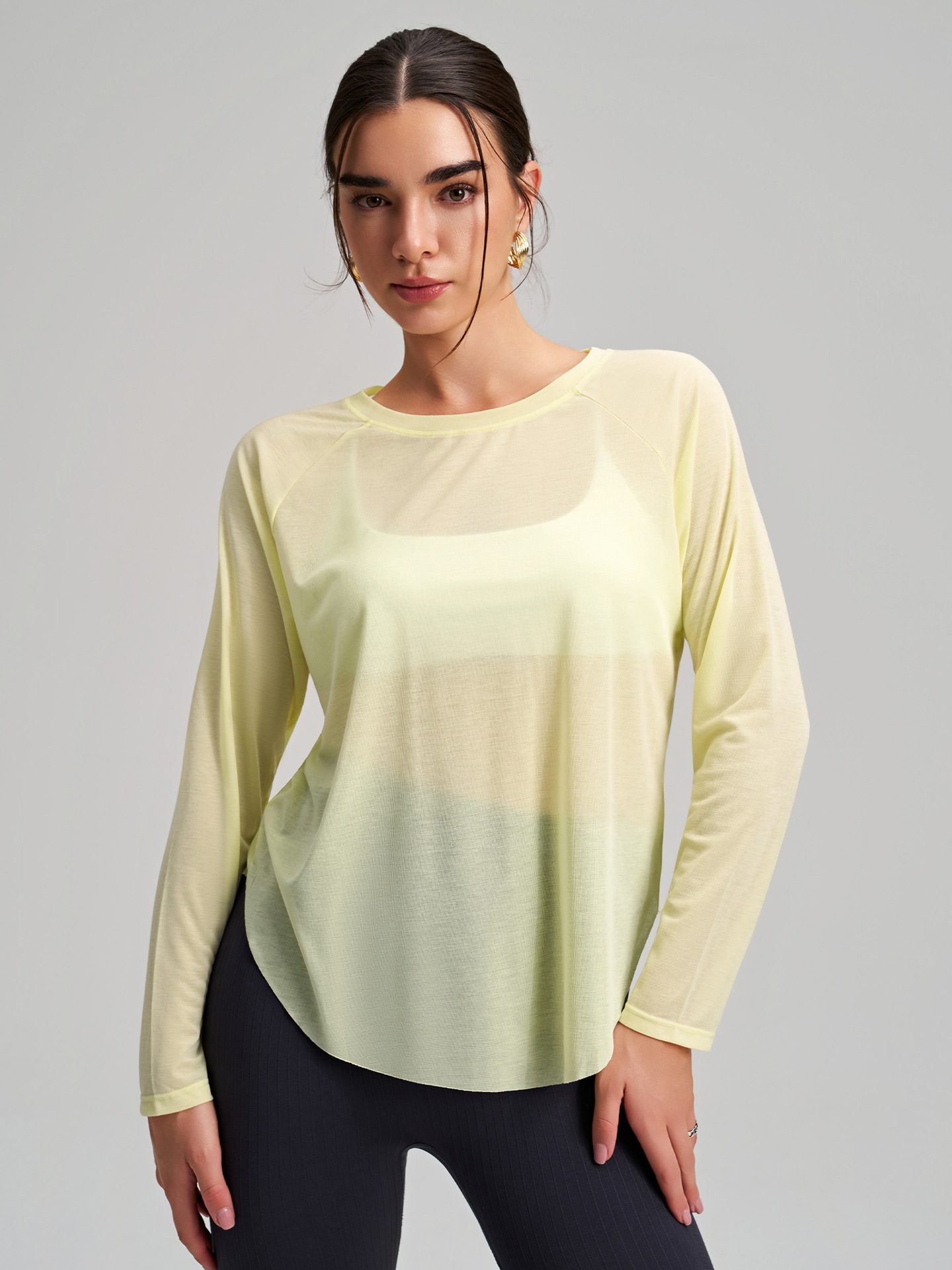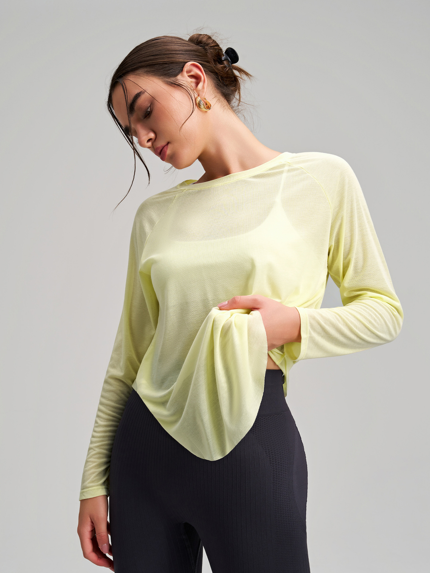 Outerwear Bunchy Yarn Yoga Blouse Women Long Sleeve round Neck Sports Top Loose Slimming Fitness Casual Quick Drying Blouse