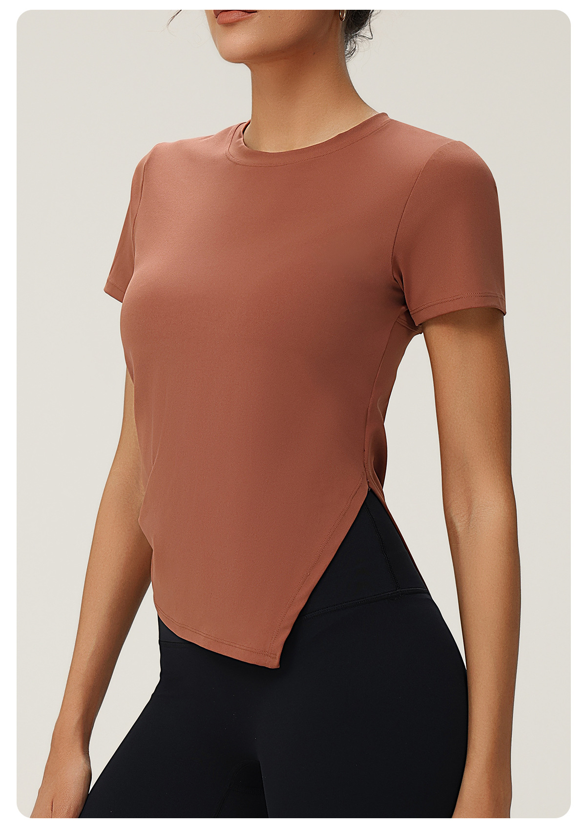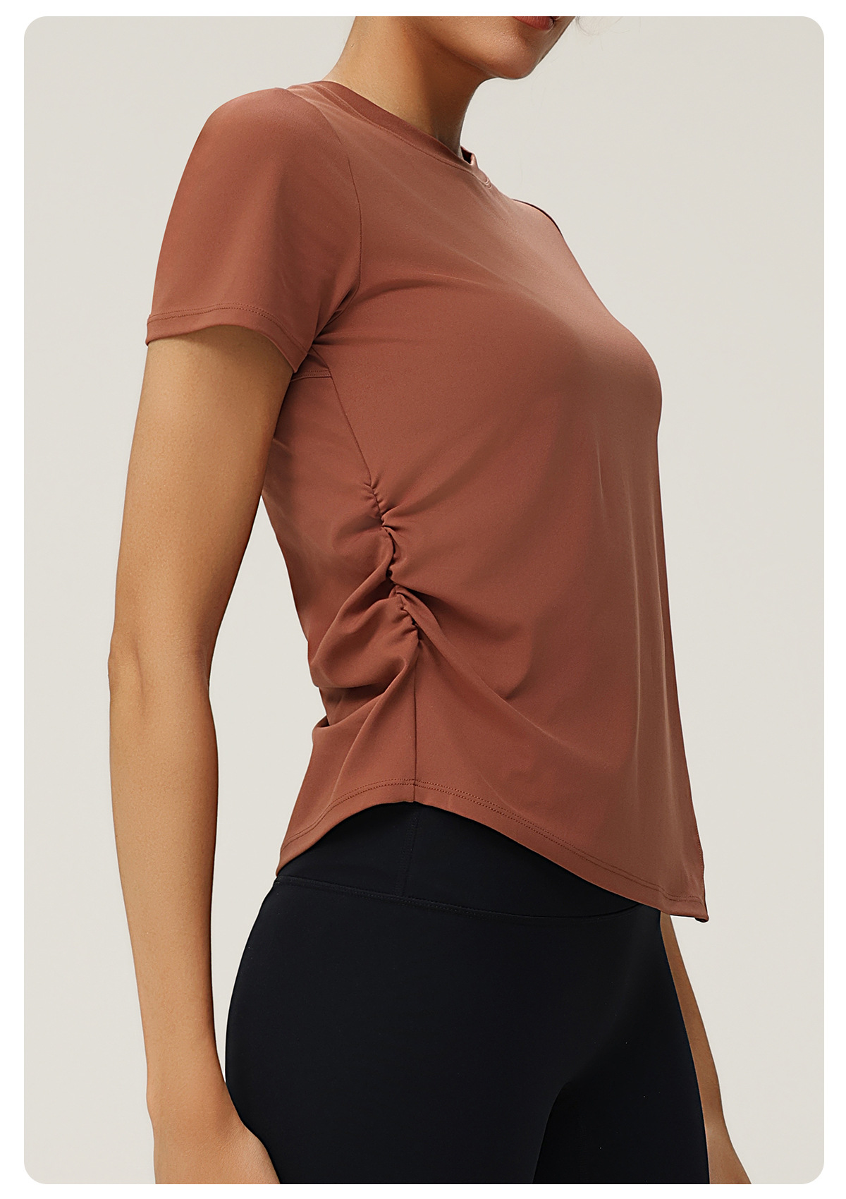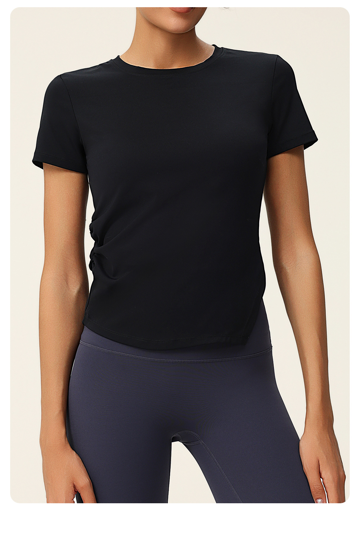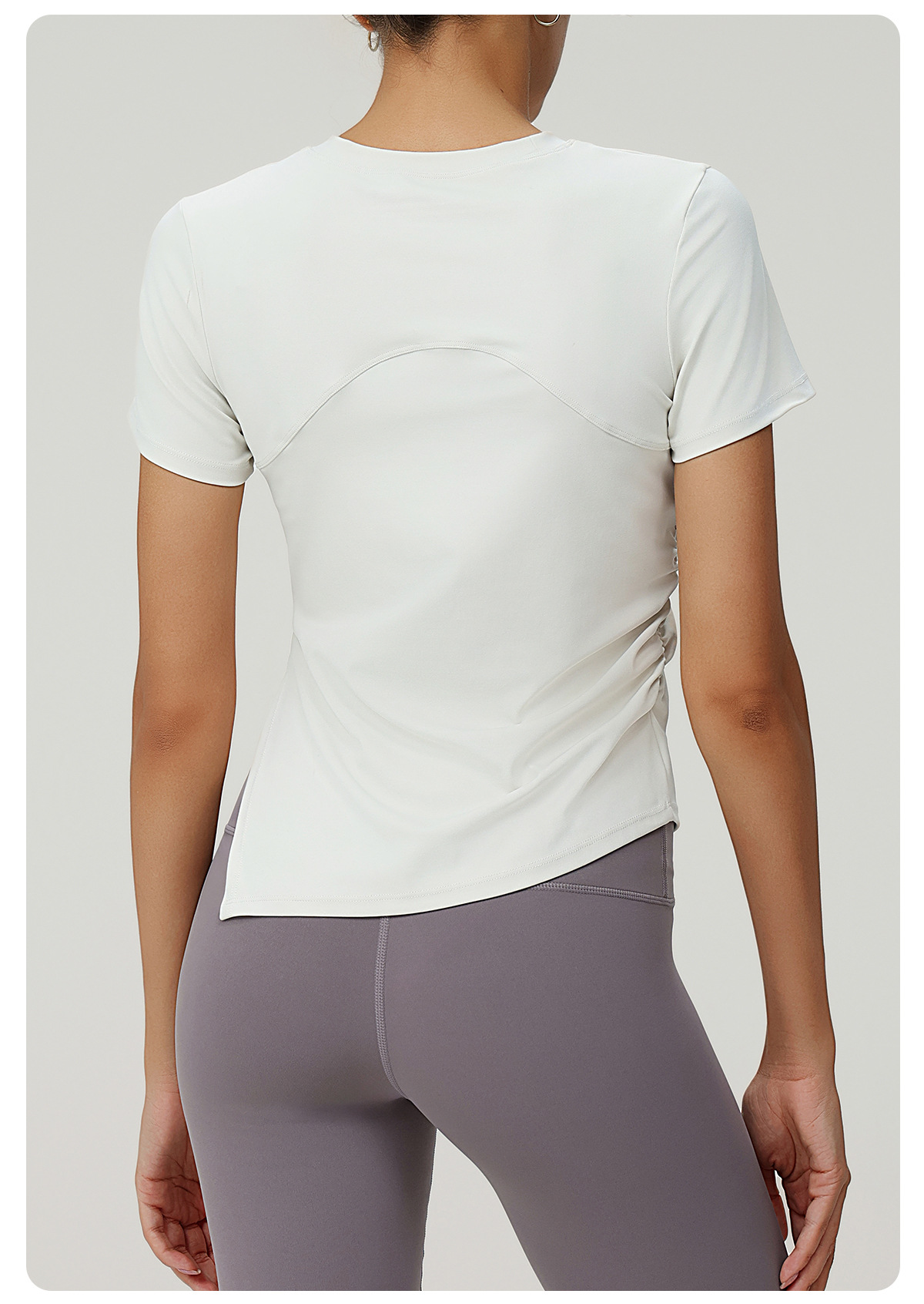 Pleated Slim Fit Slim Fit Irregular Asymmetric Slit Yoga Clothes Short Sleeve round Neck Running Fitness Exercise Yoga T shirt