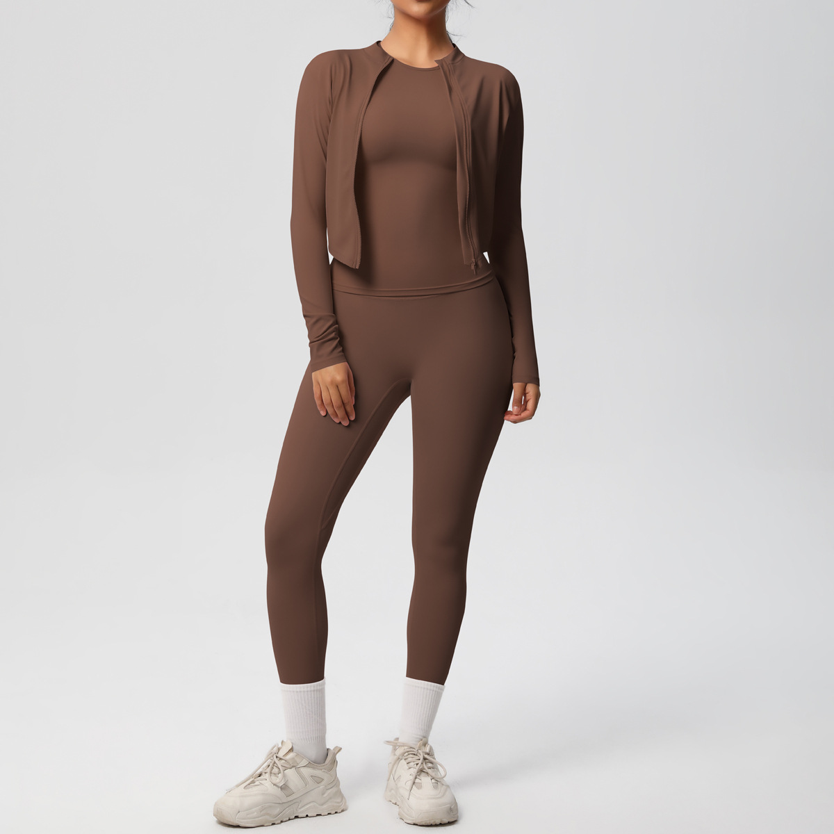 Quick Drying Skin Friendly Slim Fit Long Sleeve Yoga Outdoor Running Thin Fitness Pants Sports Jacket Three Piece Set