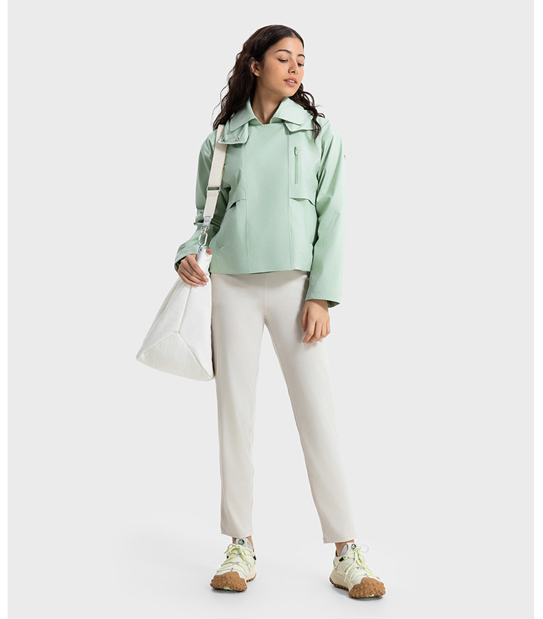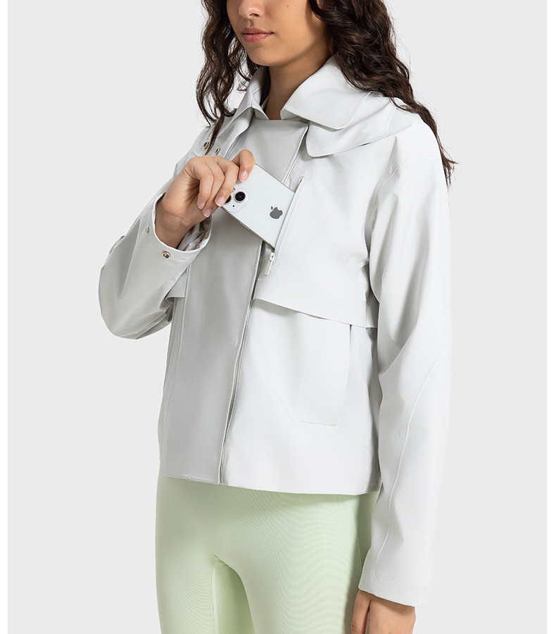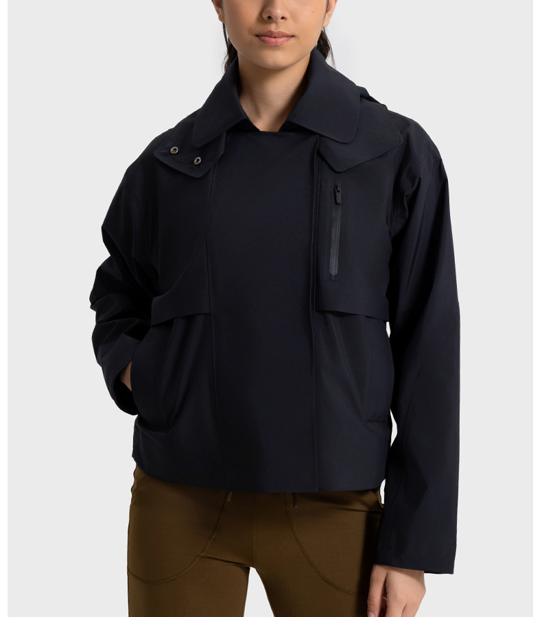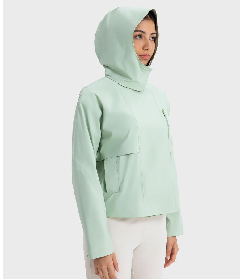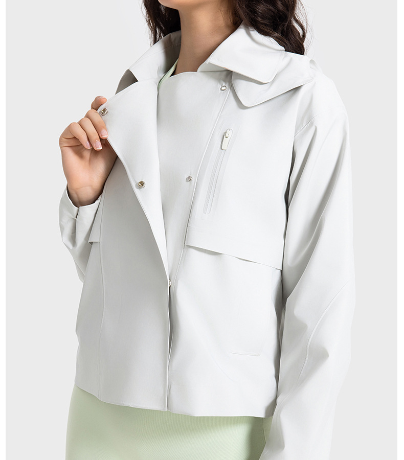 Removable Hooded Short Windbreaker Women Windproof Waterproof Moisture Permeable Zipper Sports Jacket