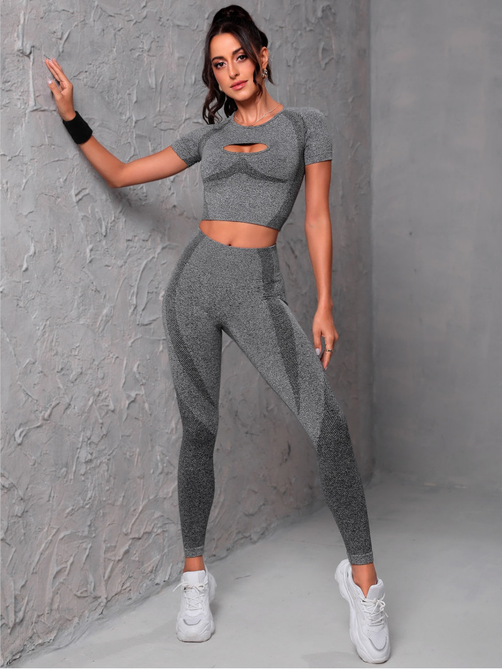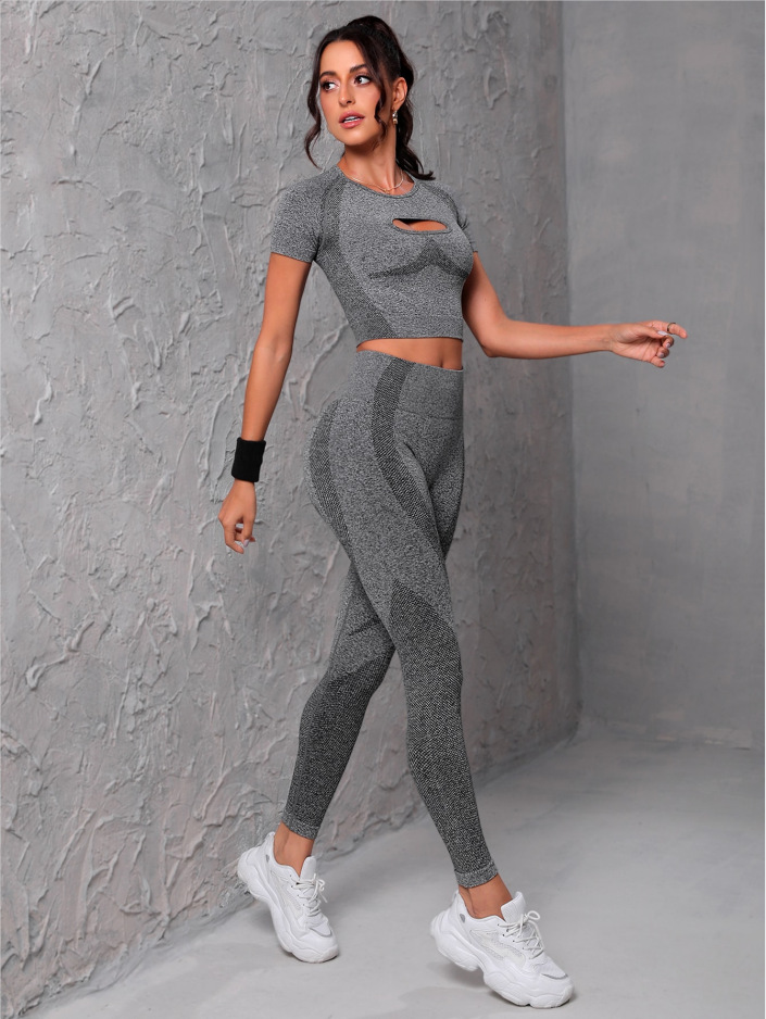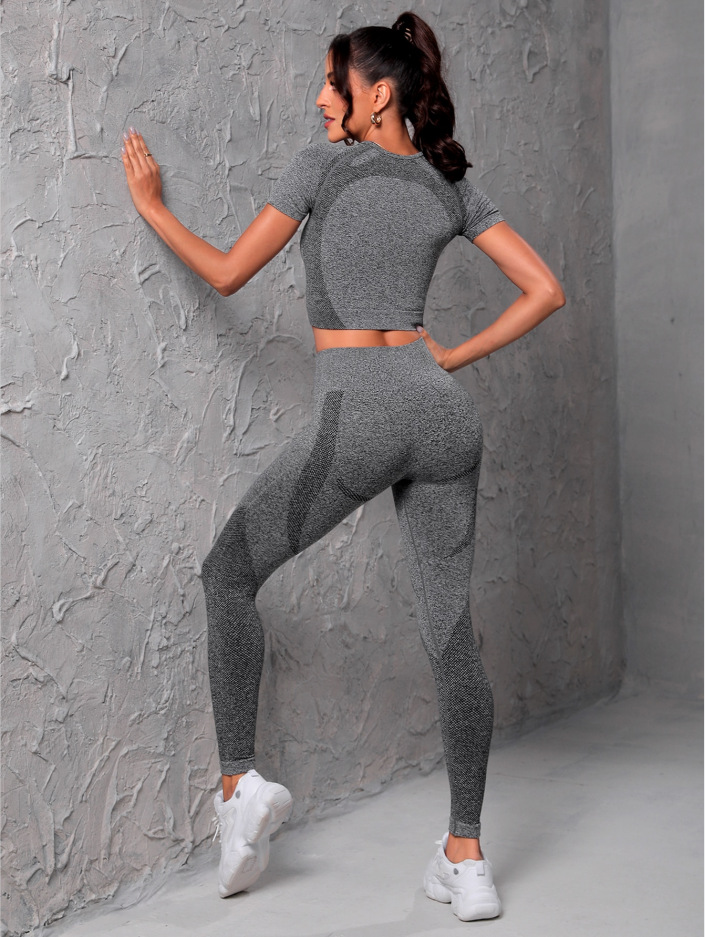 Seamless Knitted Sports Yoga Suit Moisture Wicking Quick Drying Breathable Slim Fit Fitness Yoga Clothes