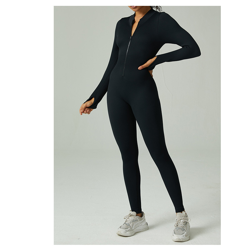 Seamless Thread Yoga Jumpsuit Sports Workout Long Sleeve Trousers Zipper One Piece Tights for Women
