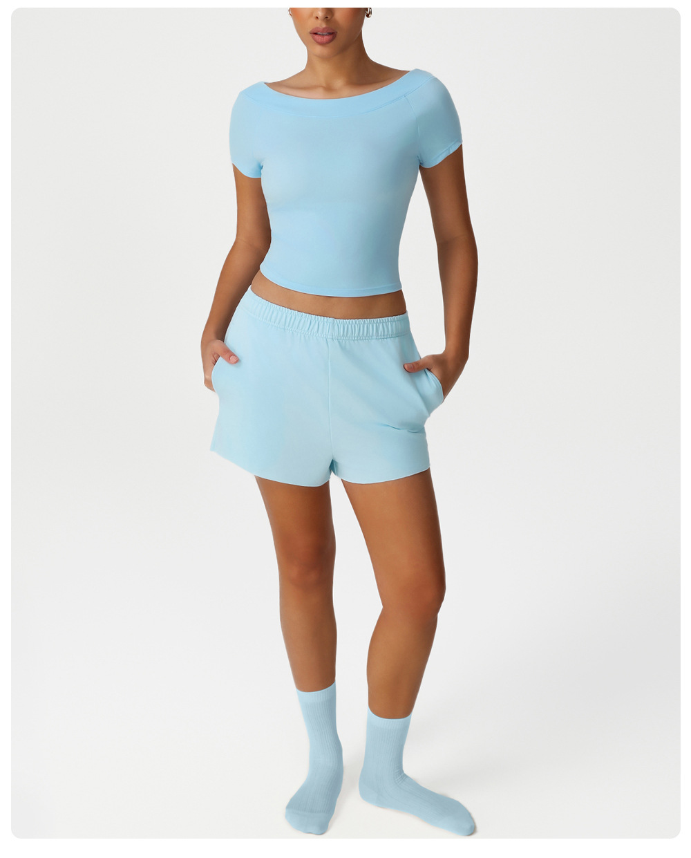 Sexy Slim Fit Shaping Sports Top Skims Short Sleeve T shirt Casual Yoga Clothes High Elastic Top