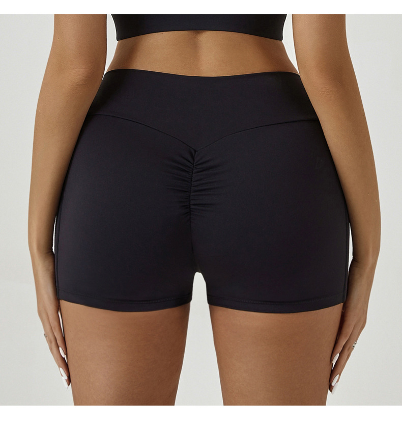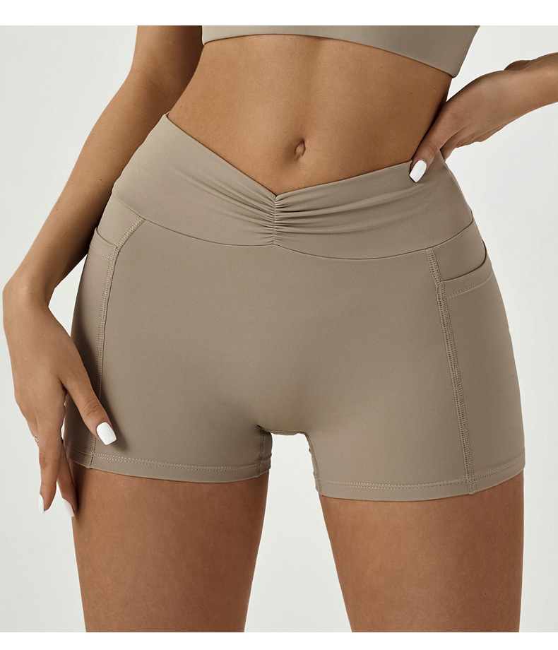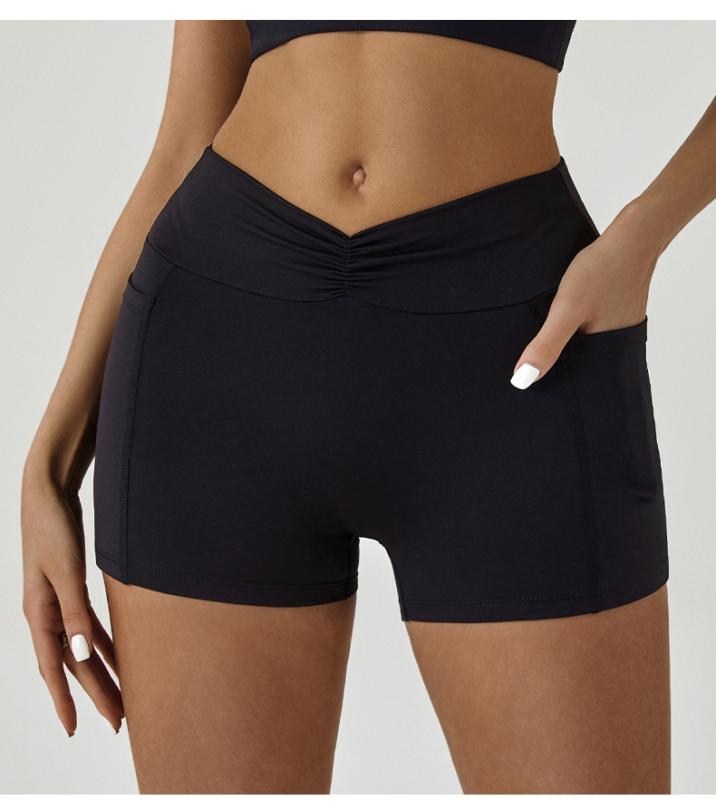 Skinny Hip Raise Yoga Pants Front Waist Pleated Pocket High Waist Workout Shorts Outer Wear Running Shorts